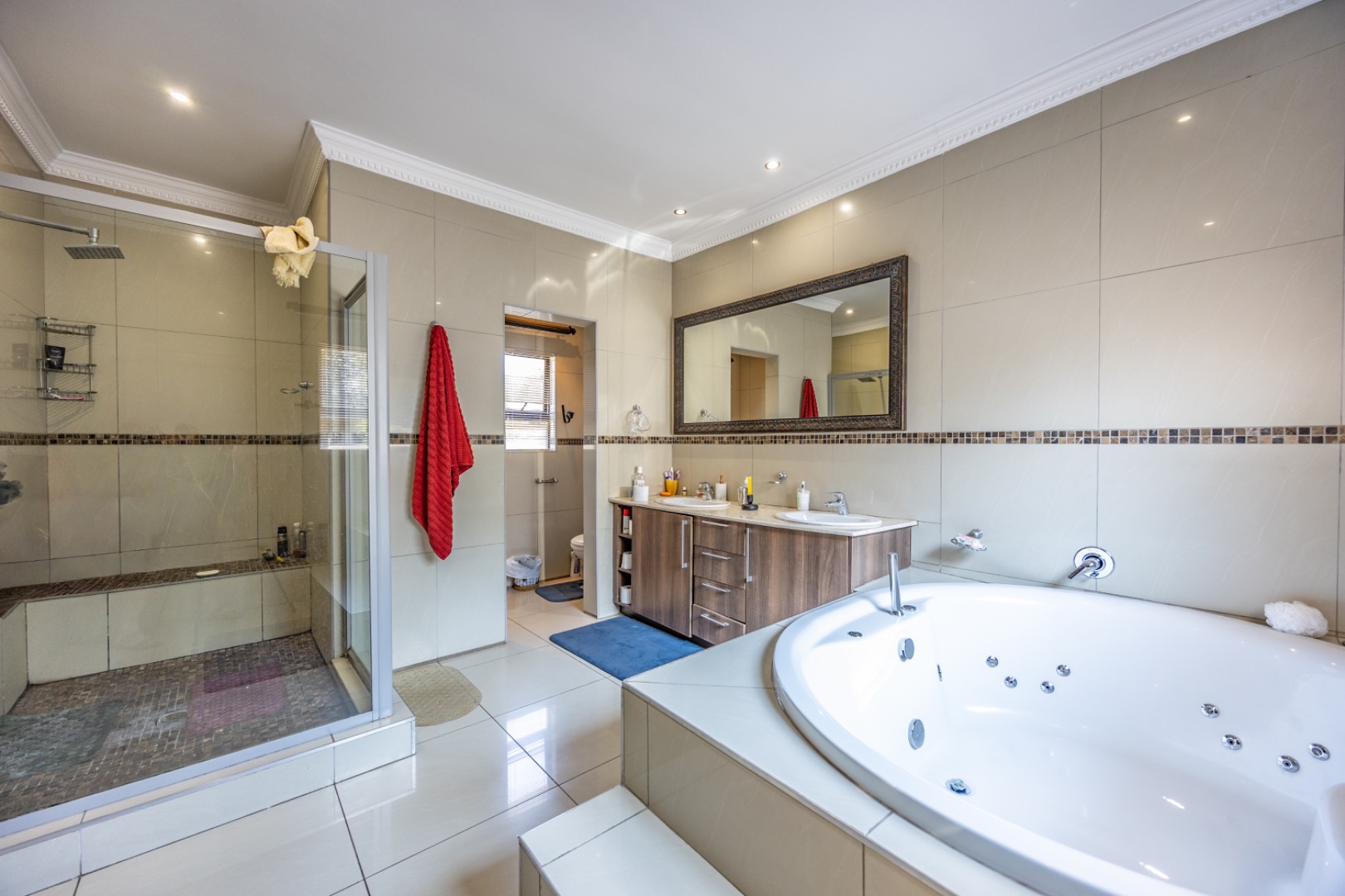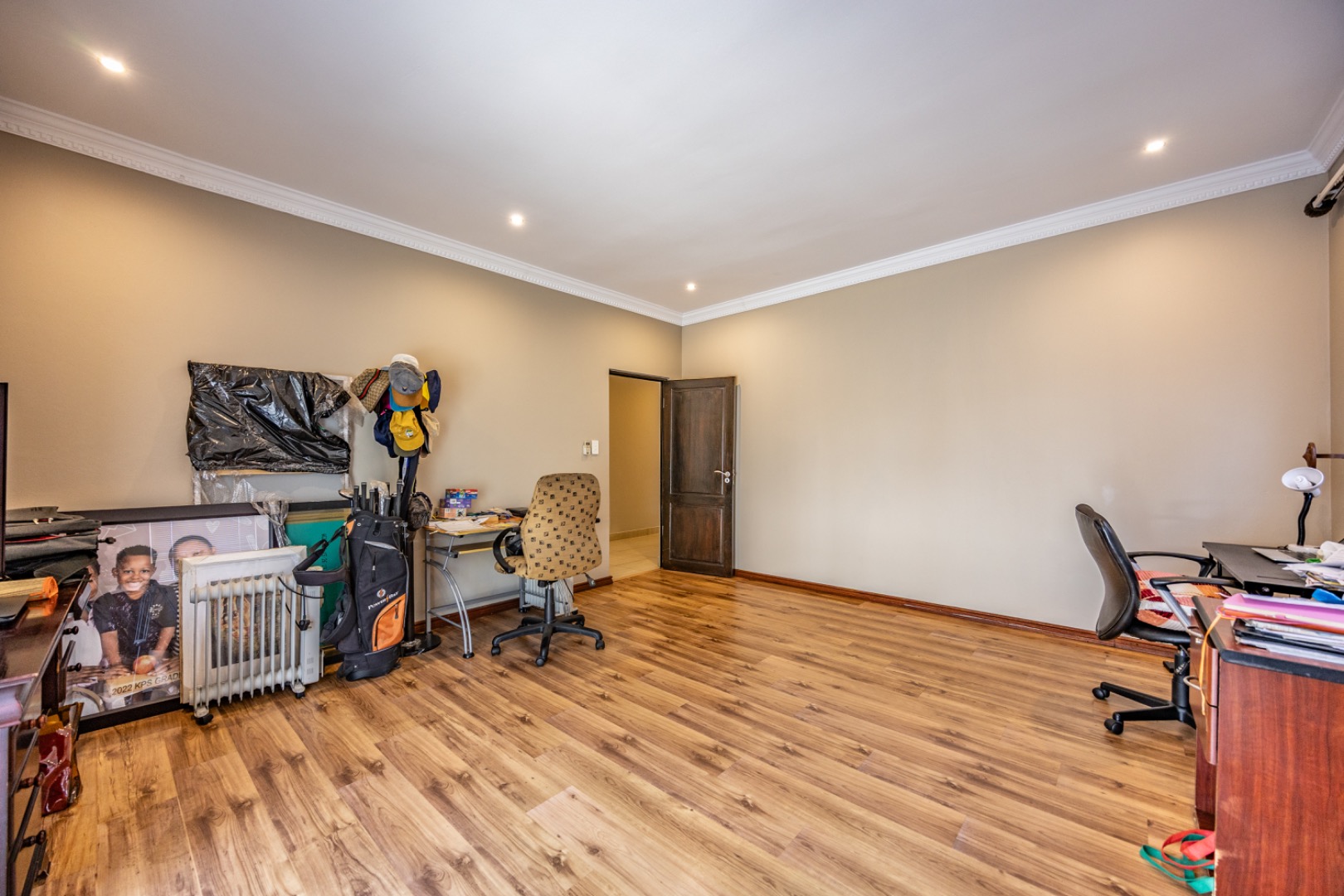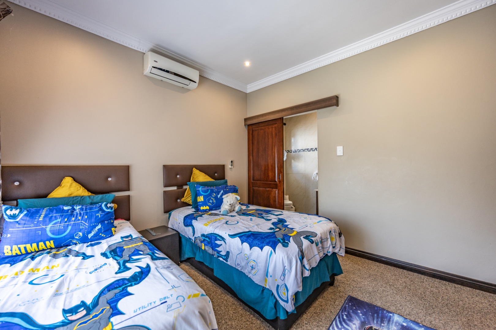 Accommodation comprises five generously sized bedrooms, ensuring personal space for every family member. Four of these bedrooms benefit from private en-suite bathrooms, complemented by an additional half bathroom, bringing the total to 4.5 bathrooms and enhancing convenience and privacy throughout the home.