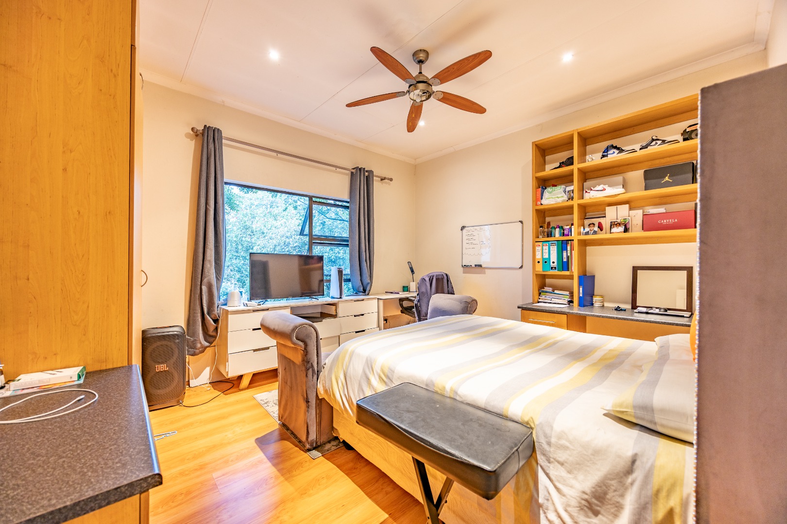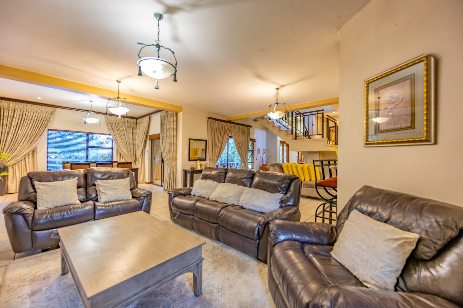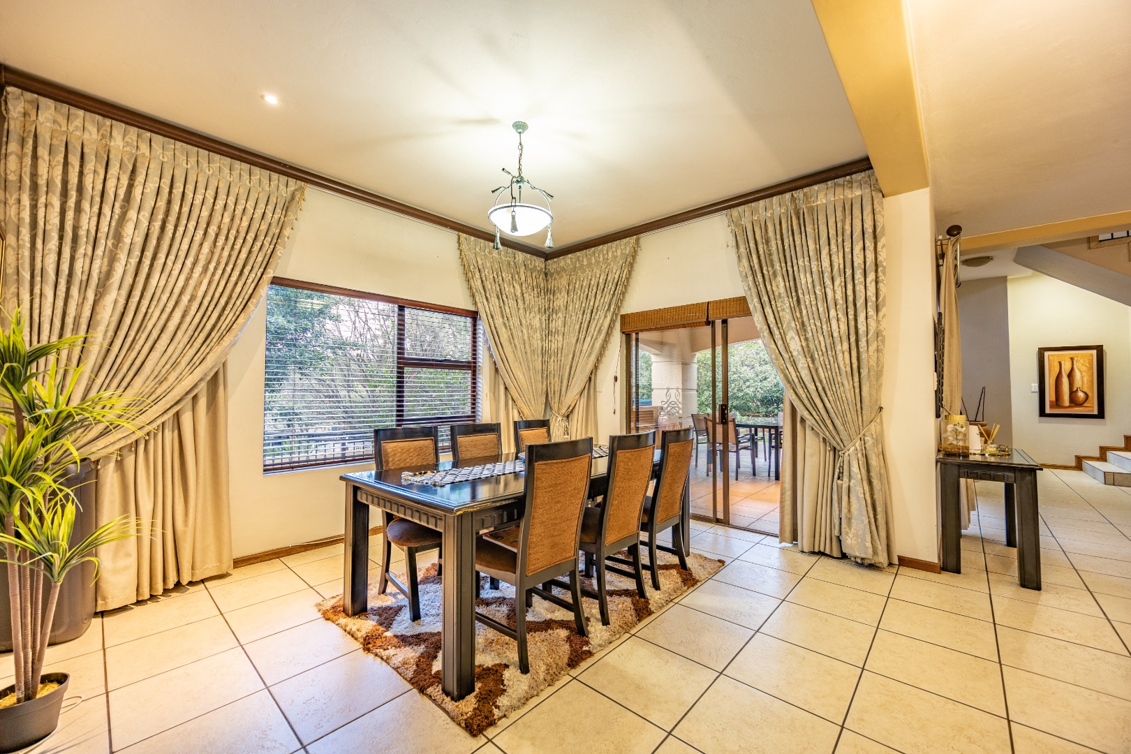 Outdoor living is equally impressive, with a covered patio and built-in braai overlooking the sparkling pool, perfect for entertaining. The beautifully landscaped garden includes a boma fire pit, ideal for enjoying evenings under the stars. Staff quarters ensure added convenience, making this home a perfect combination of style and functionality in one of Pretoria’s most sought-after estates.