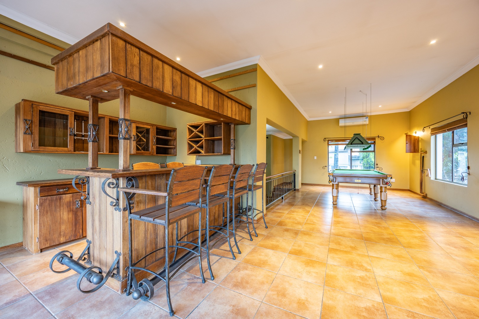 Upstairs, a pajama lounge and study area offer additional relaxation and workspace, leading to the main bedroom retreat with a walk-in closet and full Ensuite bathroom. A true highlight of this home is the versatile entertainment lounge above the five garages, featuring a built-in bar, air conditioning, and a cozy fireplace, making it the ultimate space for hosting or unwinding.