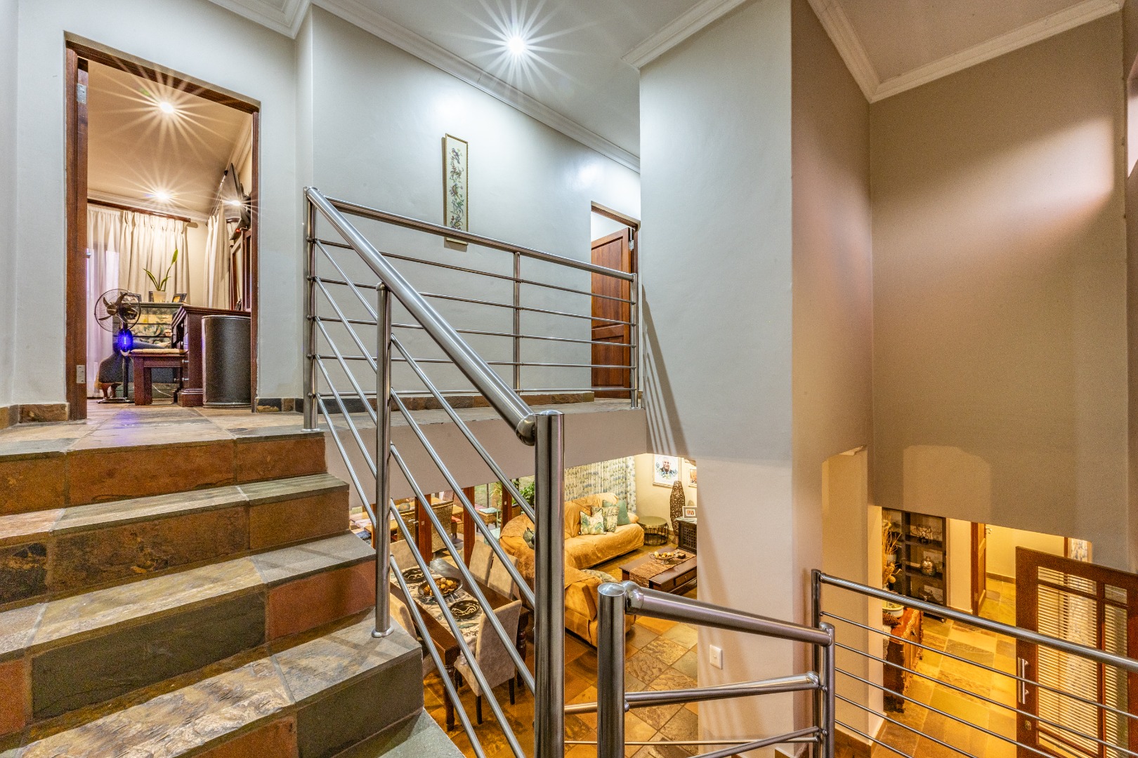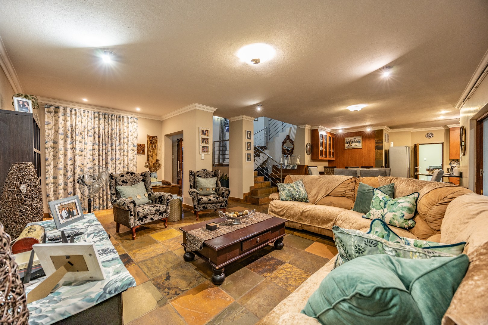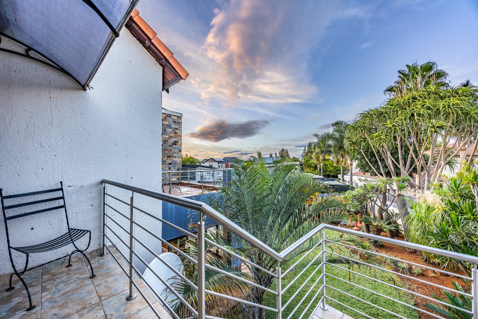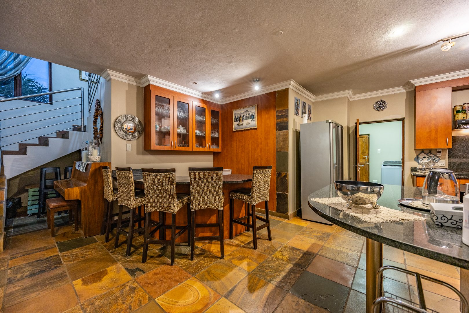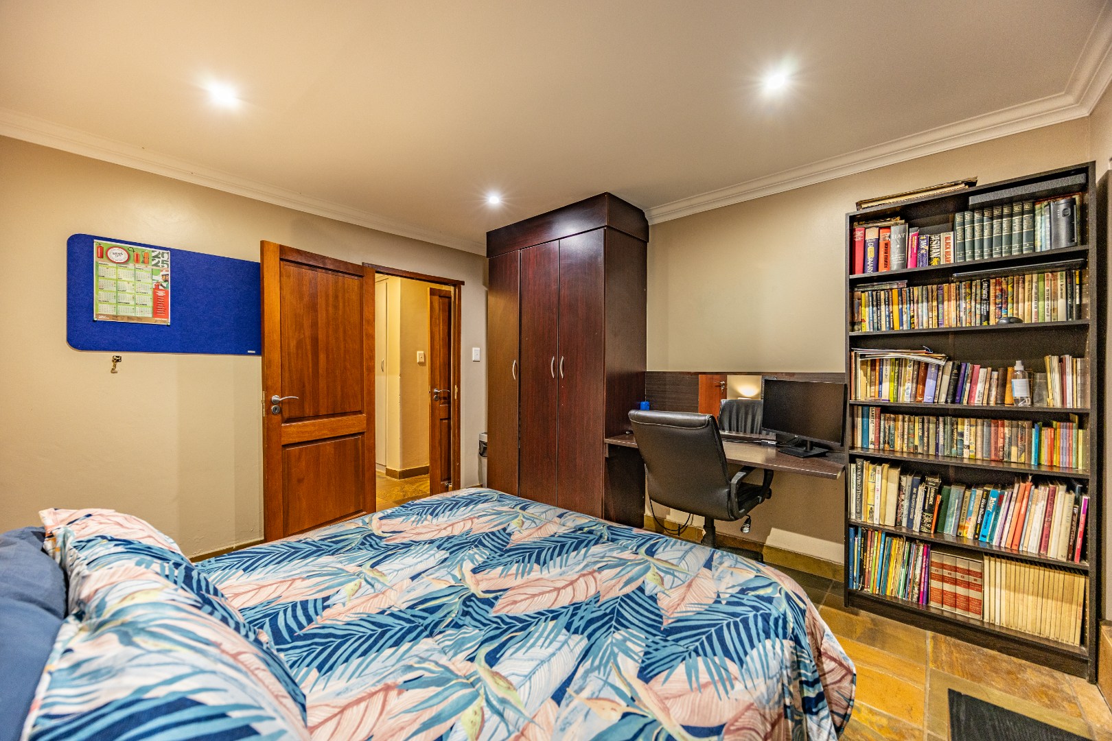 Situated in the heart of Zambezi Country Estate, this beautifully maintained five-bedroom, three-bathroom home offers the kind of space that actually works for a real family. Every bedroom is fitted with built-in cupboards, while the main suite takes it up a level with a walk-in cupboard and a stylish en-suite bathroom. The main bedroom and two of the upstairs bedrooms open onto a balcony overlooking the pool and garden, creating a calm retreat from the day. The fifth bedroom, with its own private entrance, offers excellent potential for a flatlet, guest suite or work-from-home setup.