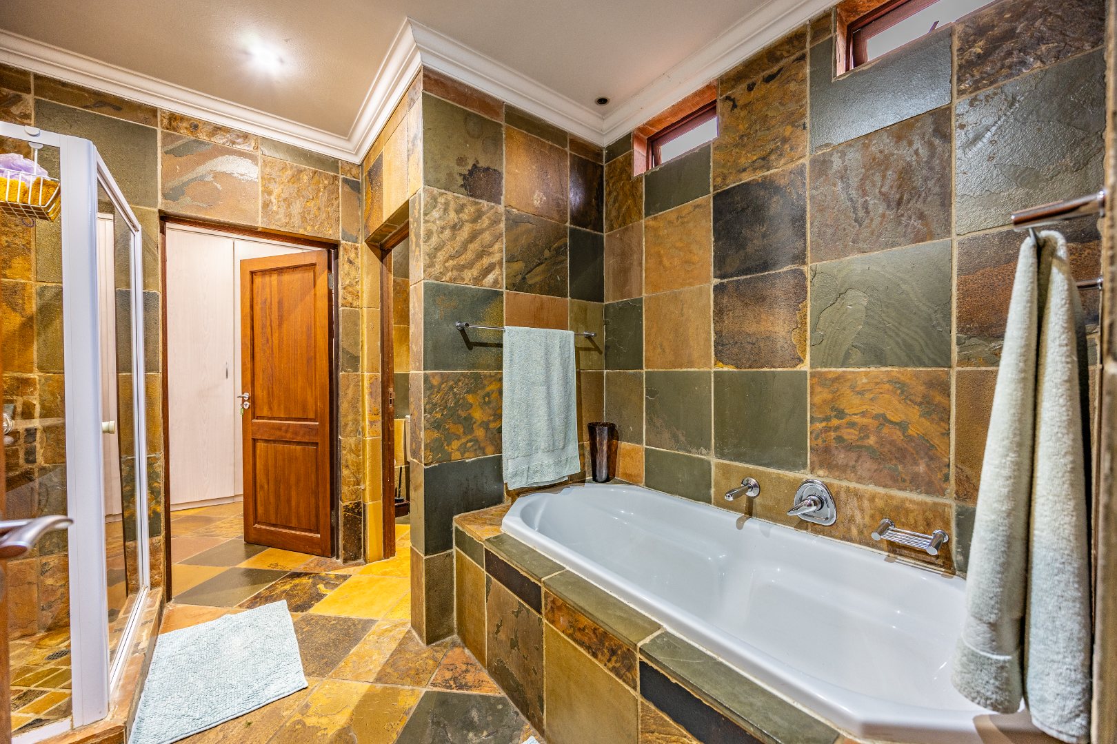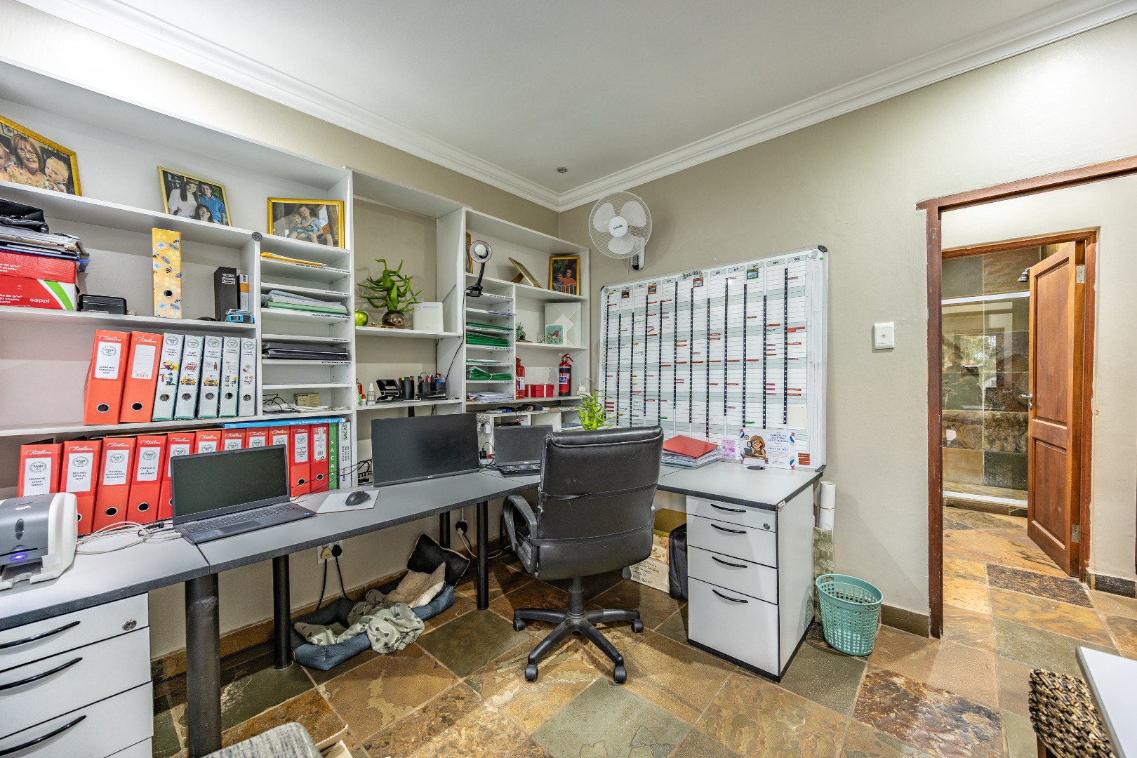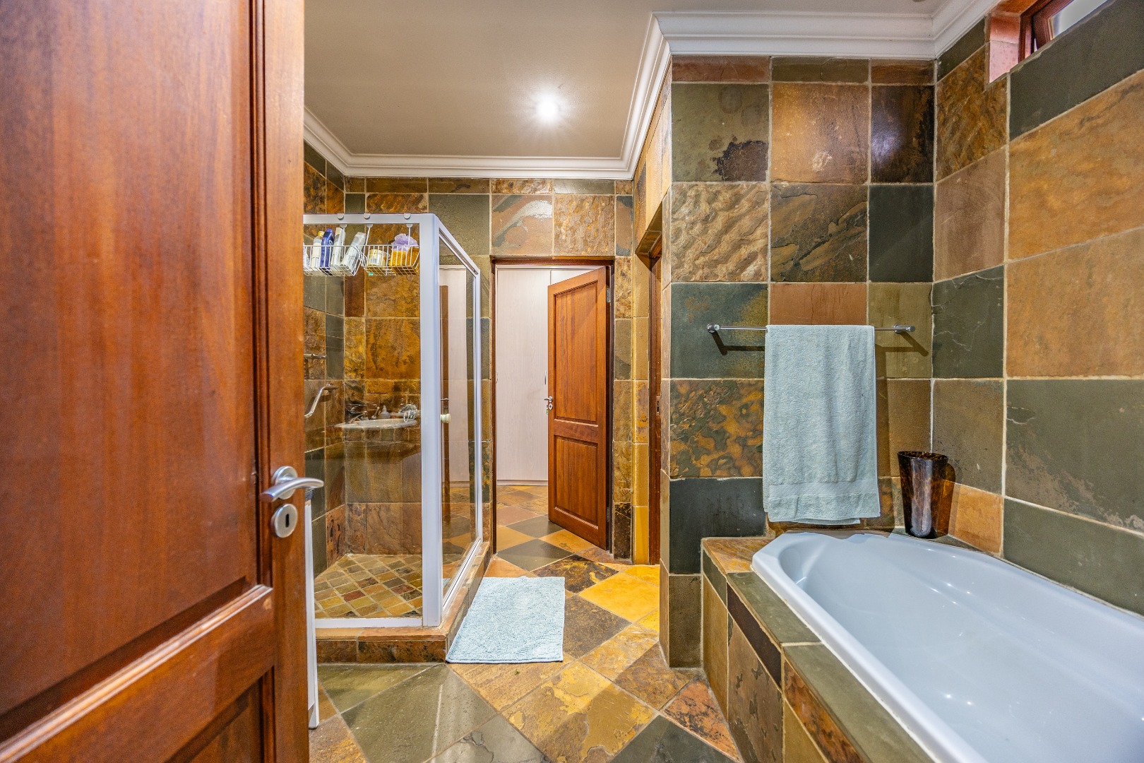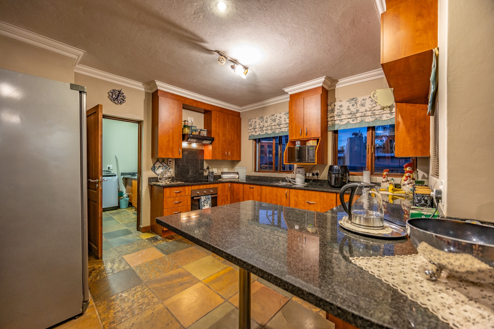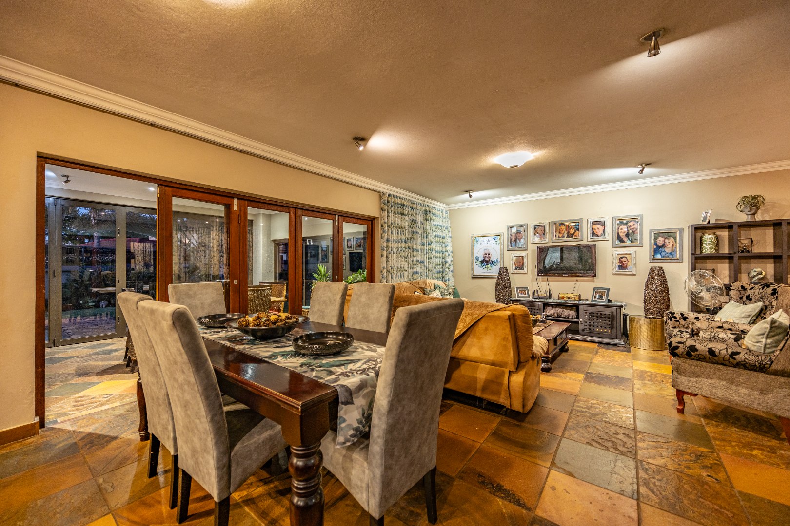 Situated in the heart of Zambezi Country Estate, this beautifully maintained five-bedroom, three-bathroom home offers the kind of space that actually works for a real family. Every bedroom is fitted with built-in cupboards, while the main suite takes it up a level with a walk-in cupboard and a stylish en-suite bathroom. The main bedroom and two of the upstairs bedrooms open onto a balcony overlooking the pool and garden, creating a calm retreat from the day. The fifth bedroom, with its own private entrance, offers excellent potential for a flatlet, guest suite or work-from-home setup.