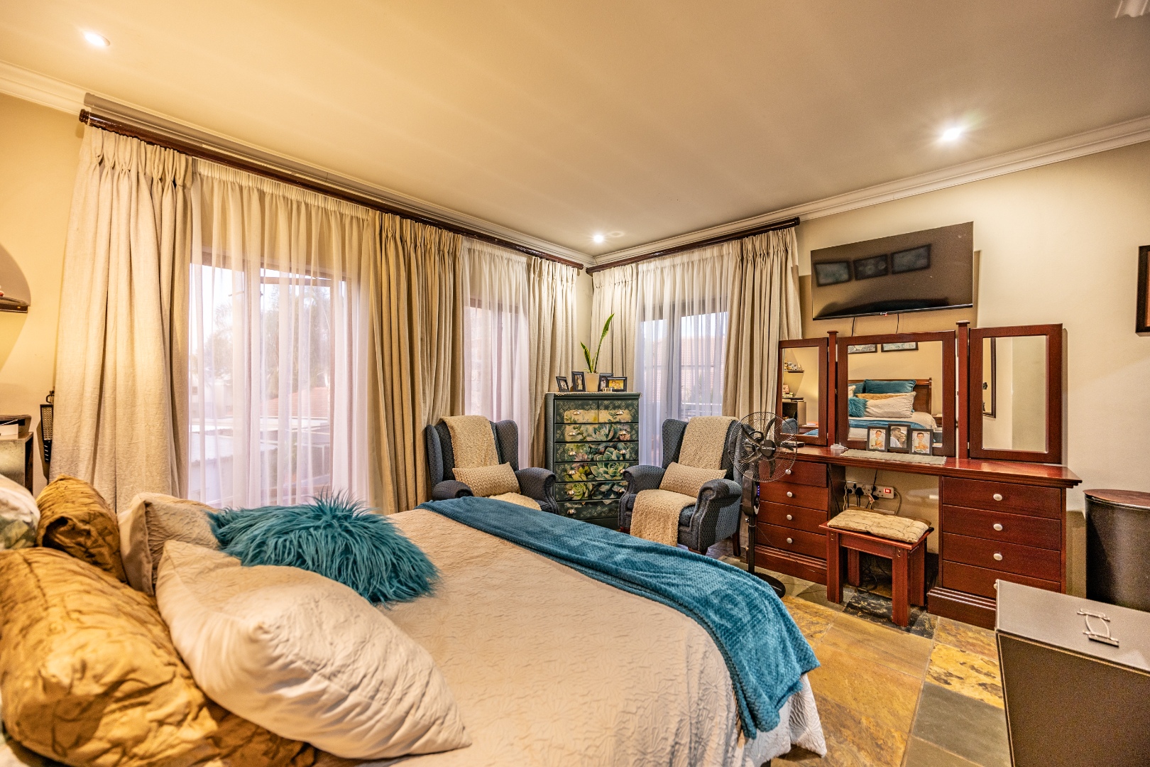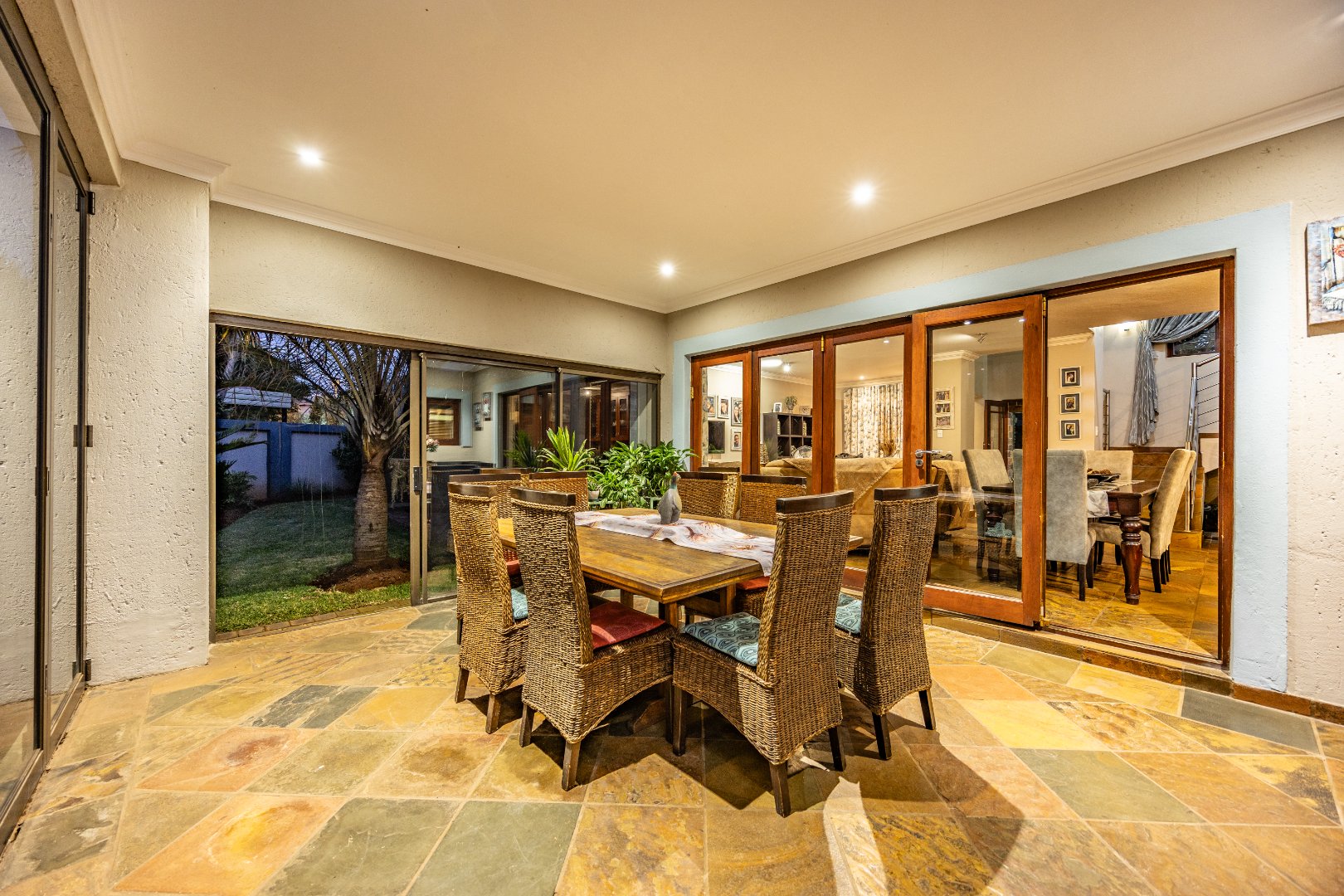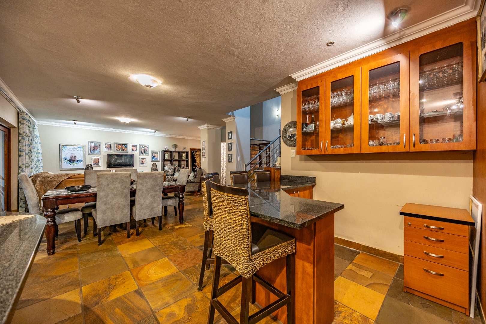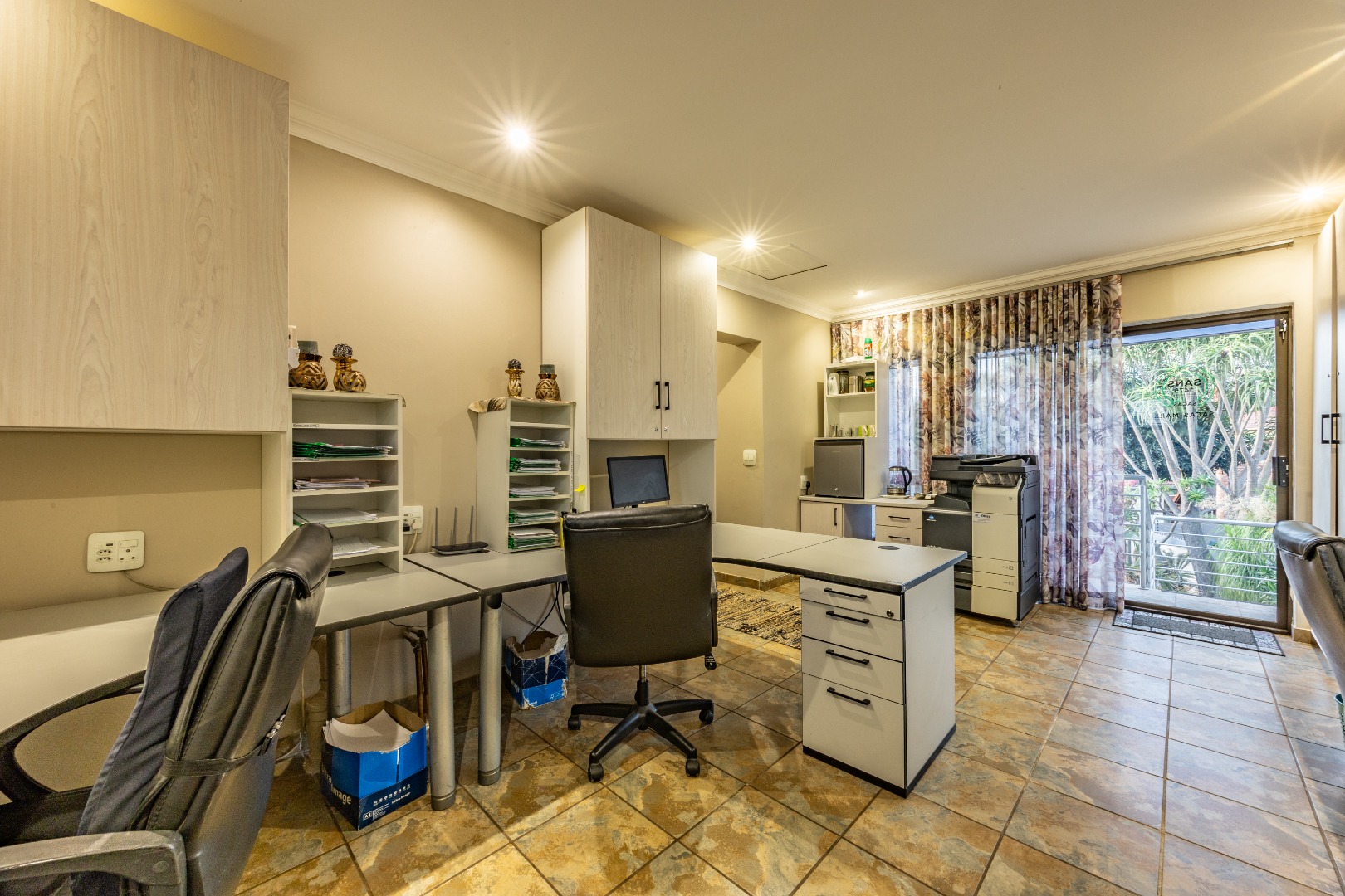 Practical features round off the home with a converted third garage now serving as a workspace with sliding doors, along with double automated garages, an outside shower and toilet, a 3kW backup inverter, prepaid electricity and fibre connectivity. All of this is set within a strictly access-controlled estate, offering the security and peace of mind that make Zambezi Country Estate one of Pretoria’s most desirable addresses.