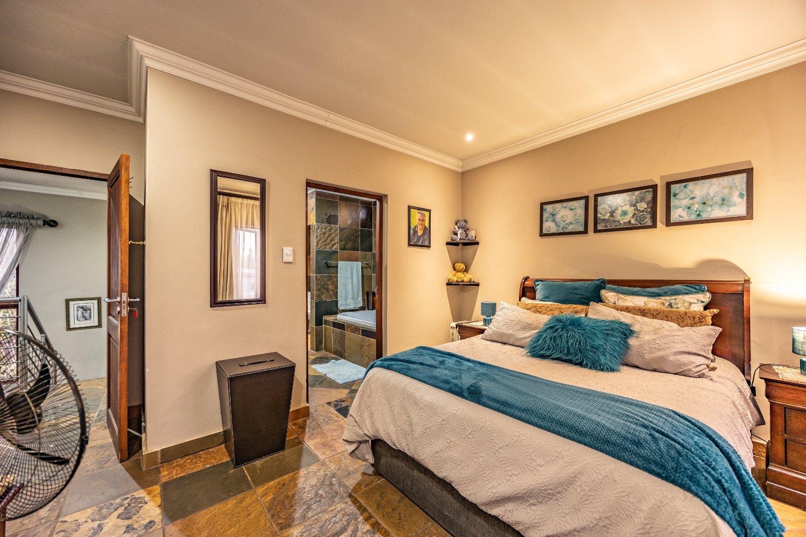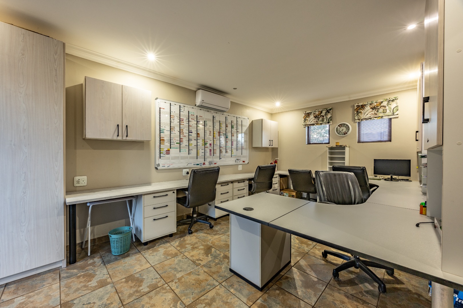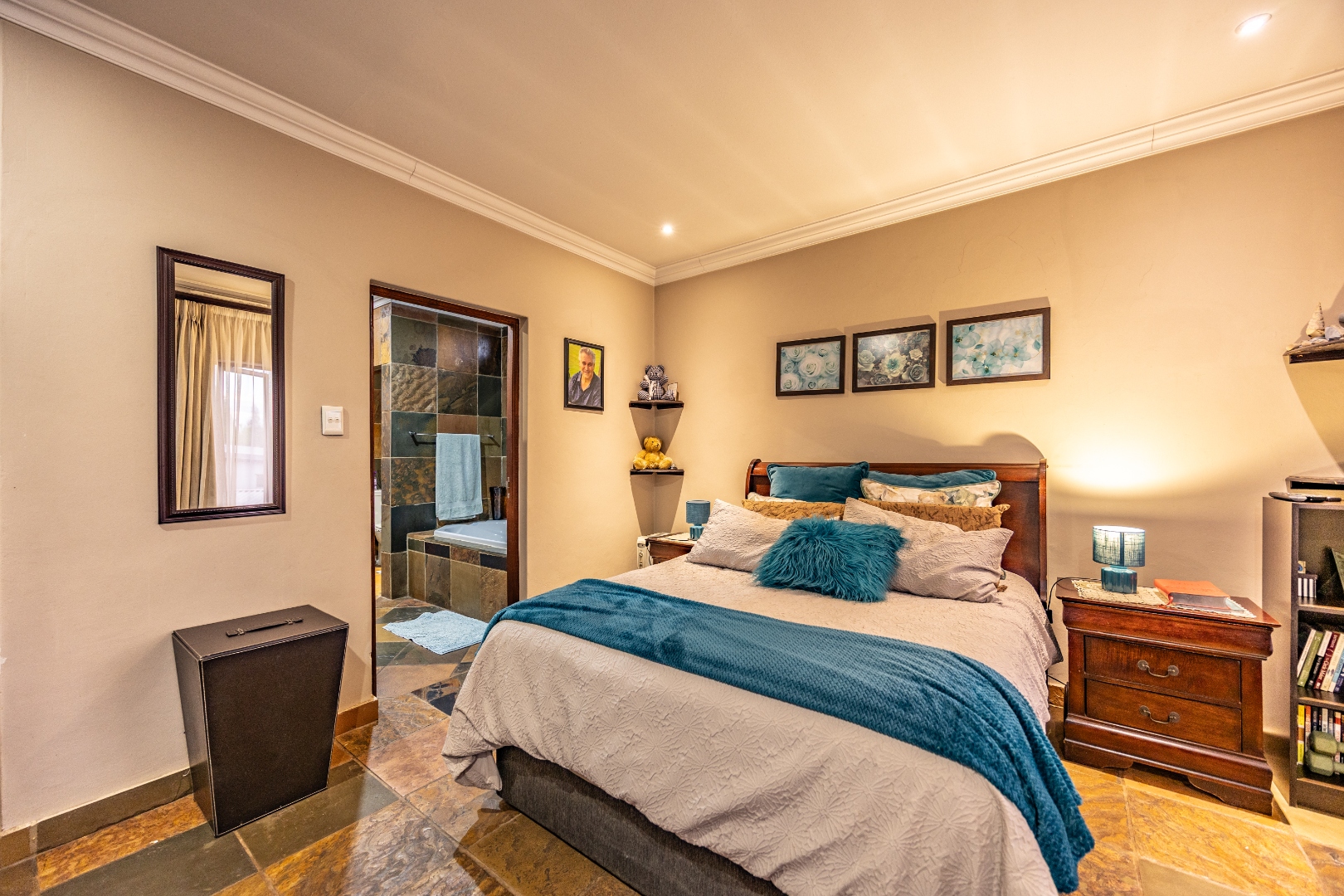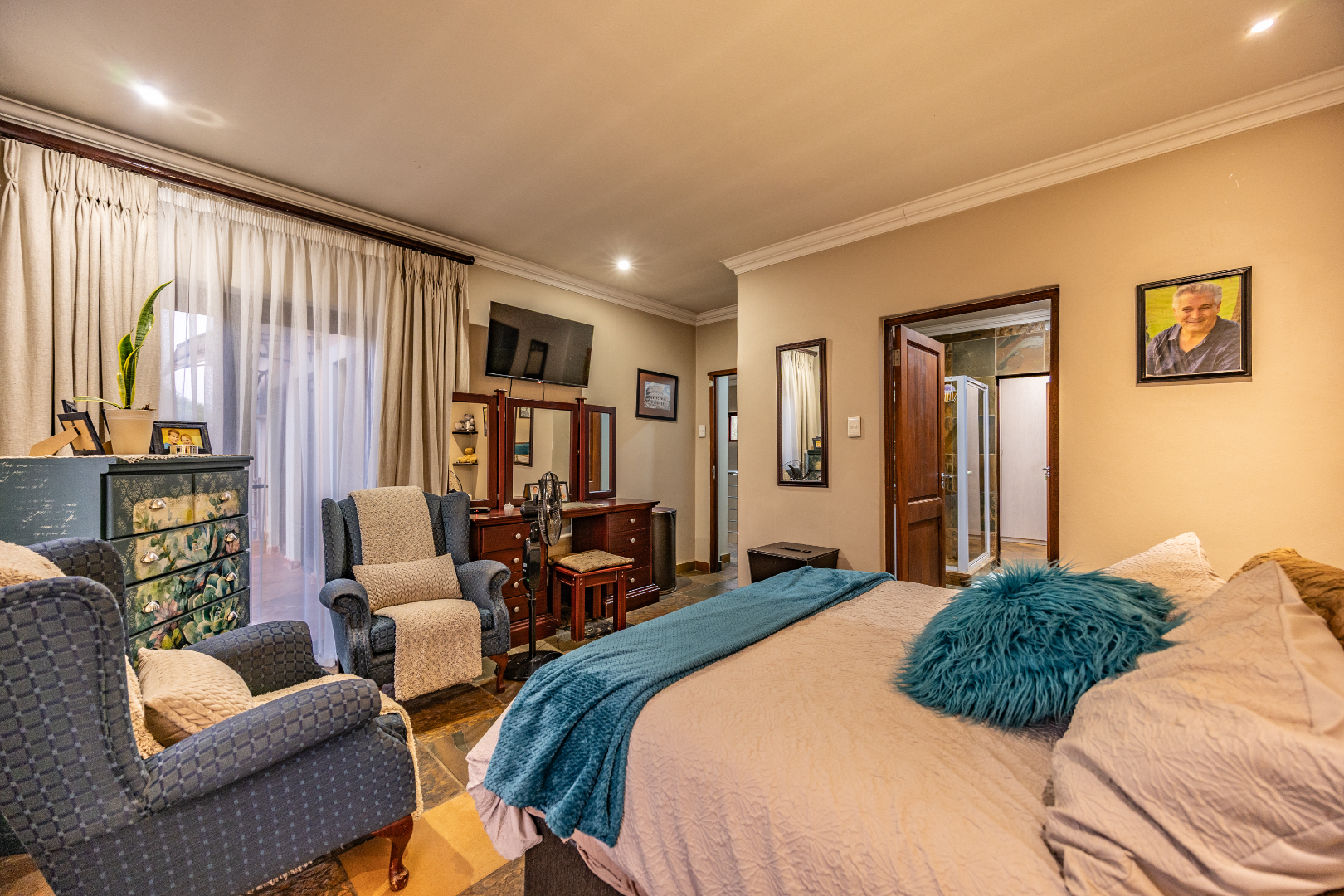 Practical features round off the home with a converted third garage now serving as a workspace with sliding doors, along with double automated garages, an outside shower and toilet, a 3kW backup inverter, prepaid electricity and fibre connectivity. All of this is set within a strictly access-controlled estate, offering the security and peace of mind that make Zambezi Country Estate one of Pretoria’s most desirable addresses.