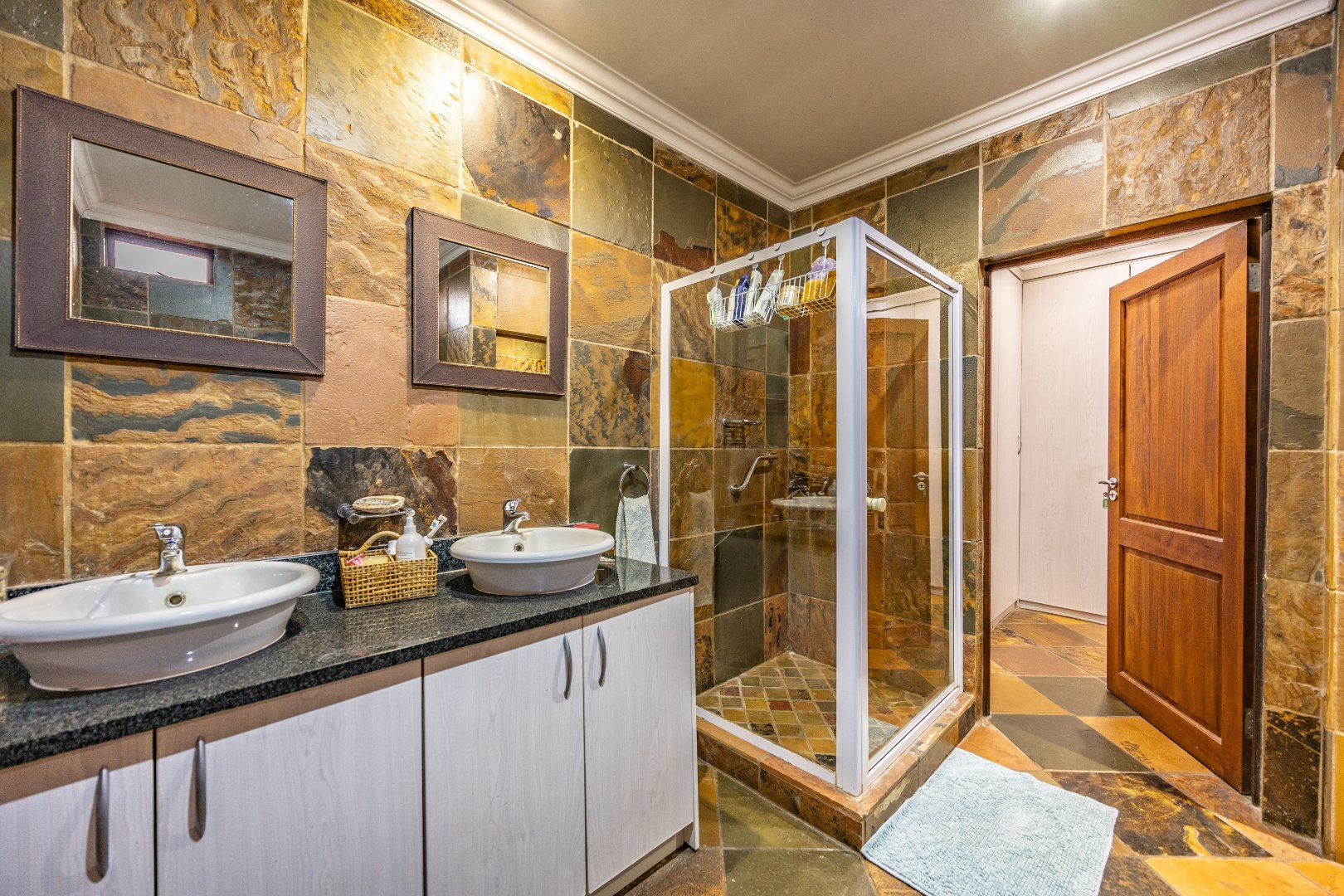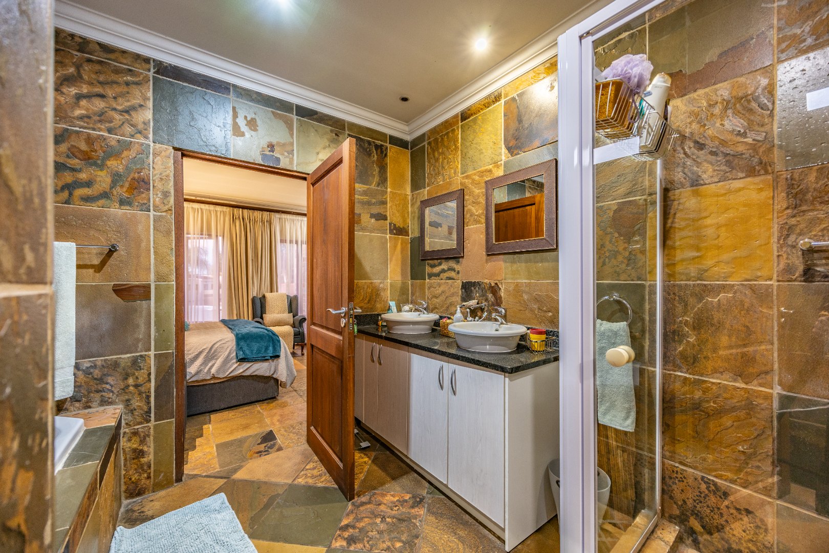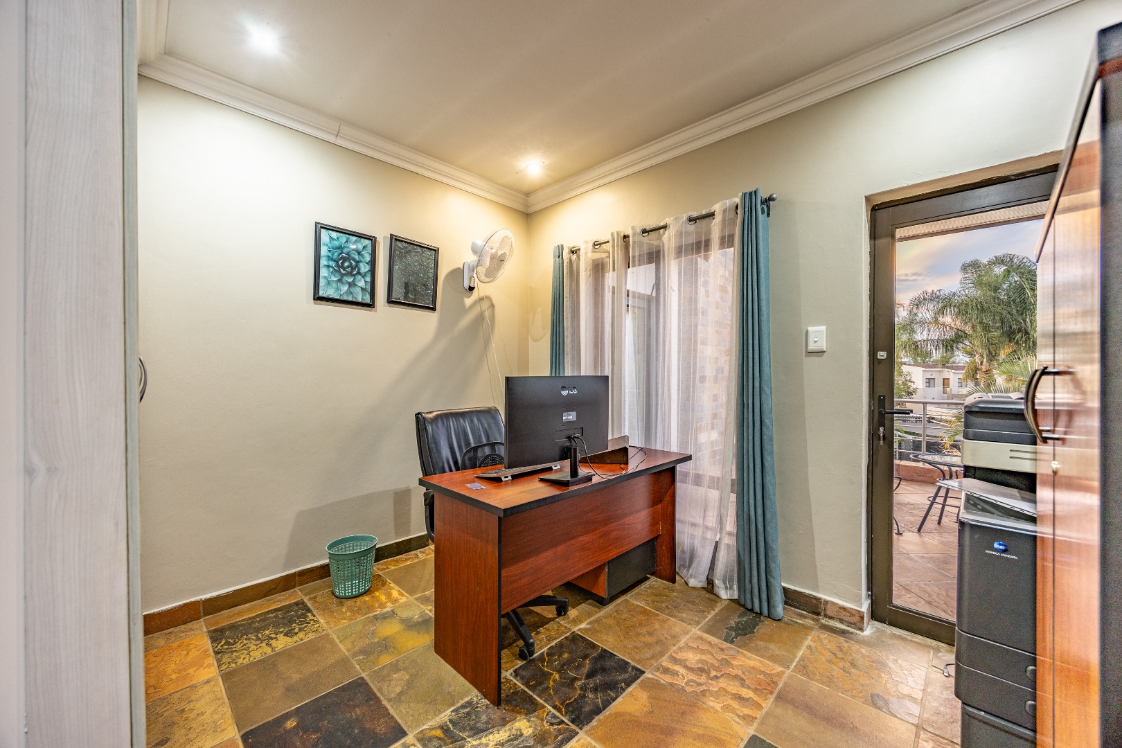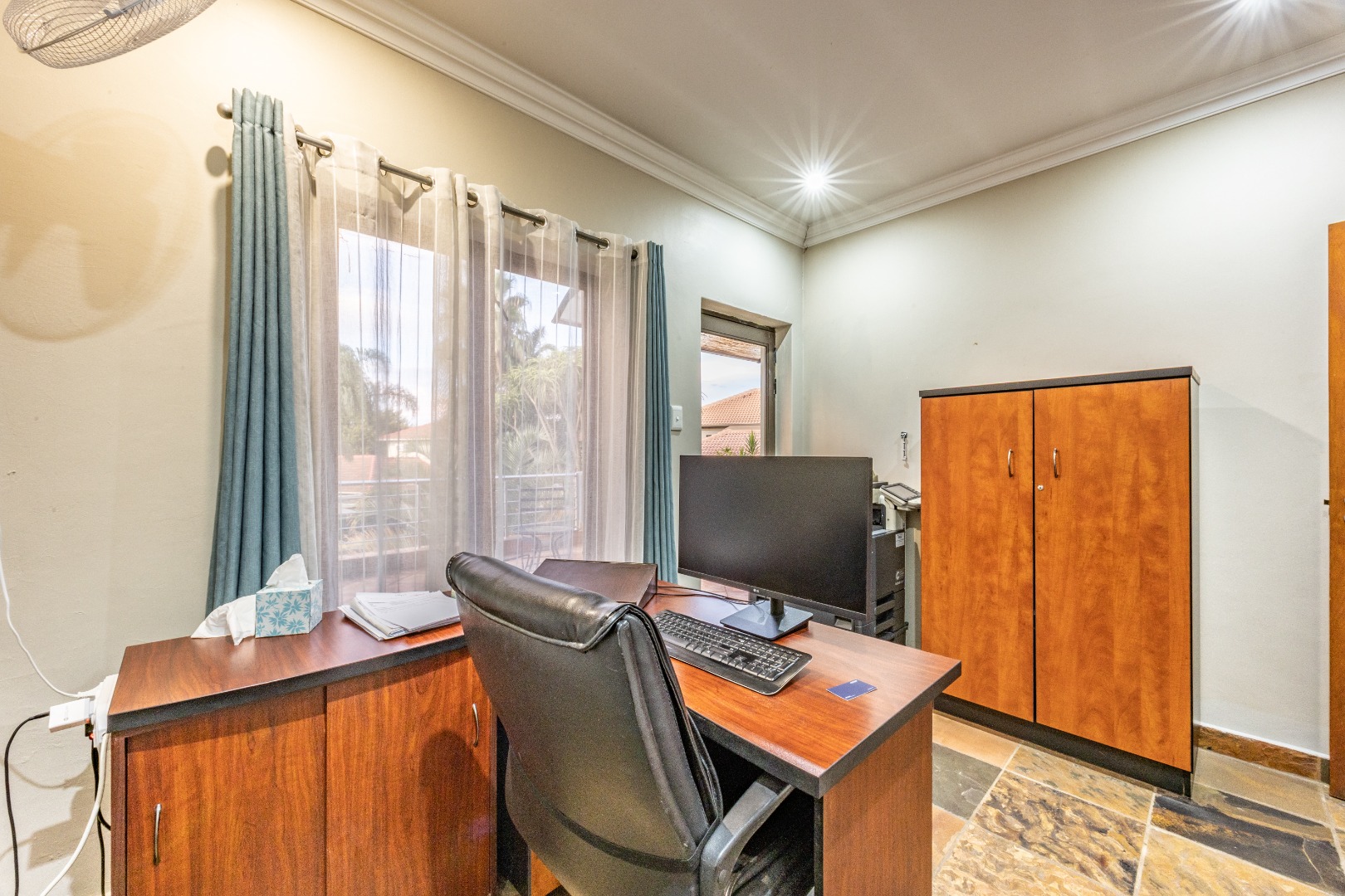 Practical features round off the home with a converted third garage now serving as a workspace with sliding doors, along with double automated garages, an outside shower and toilet, a 3kW backup inverter, prepaid electricity and fibre connectivity. All of this is set within a strictly access-controlled estate, offering the security and peace of mind that make Zambezi Country Estate one of Pretoria’s most desirable addresses.