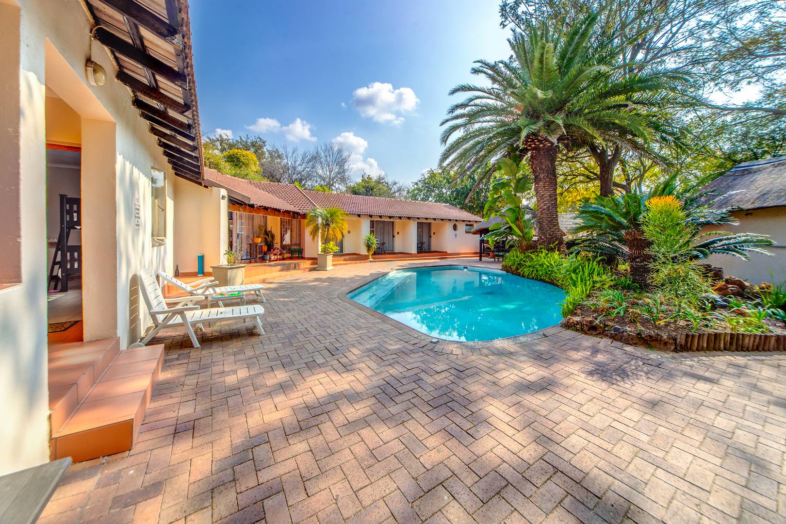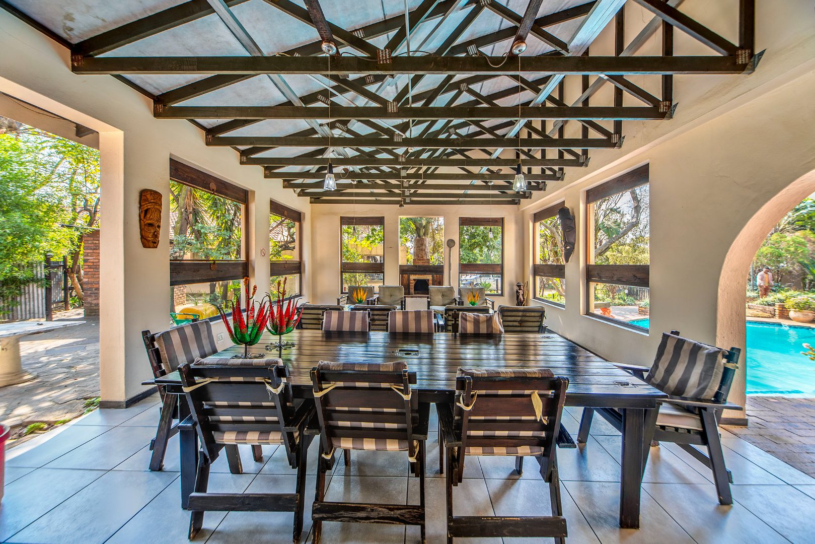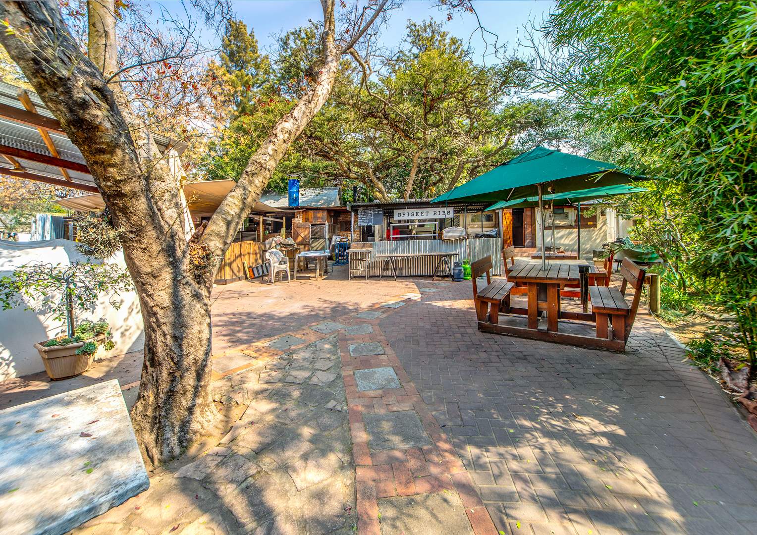 perfect for creating a relaxed, lifestyle-focused environment. The lush outdoor space with mature trees enhances the overall appeal and adds to the charm of the property.