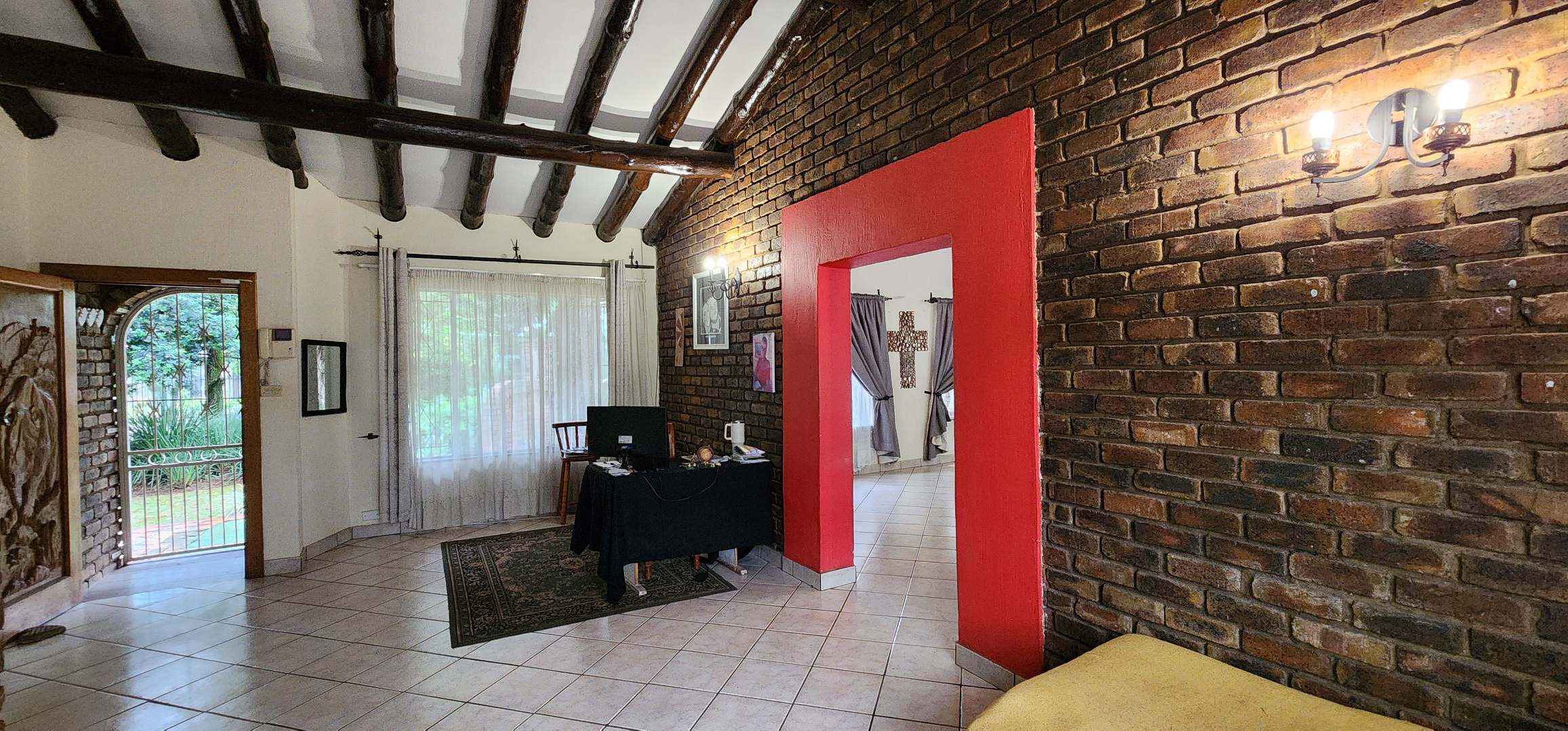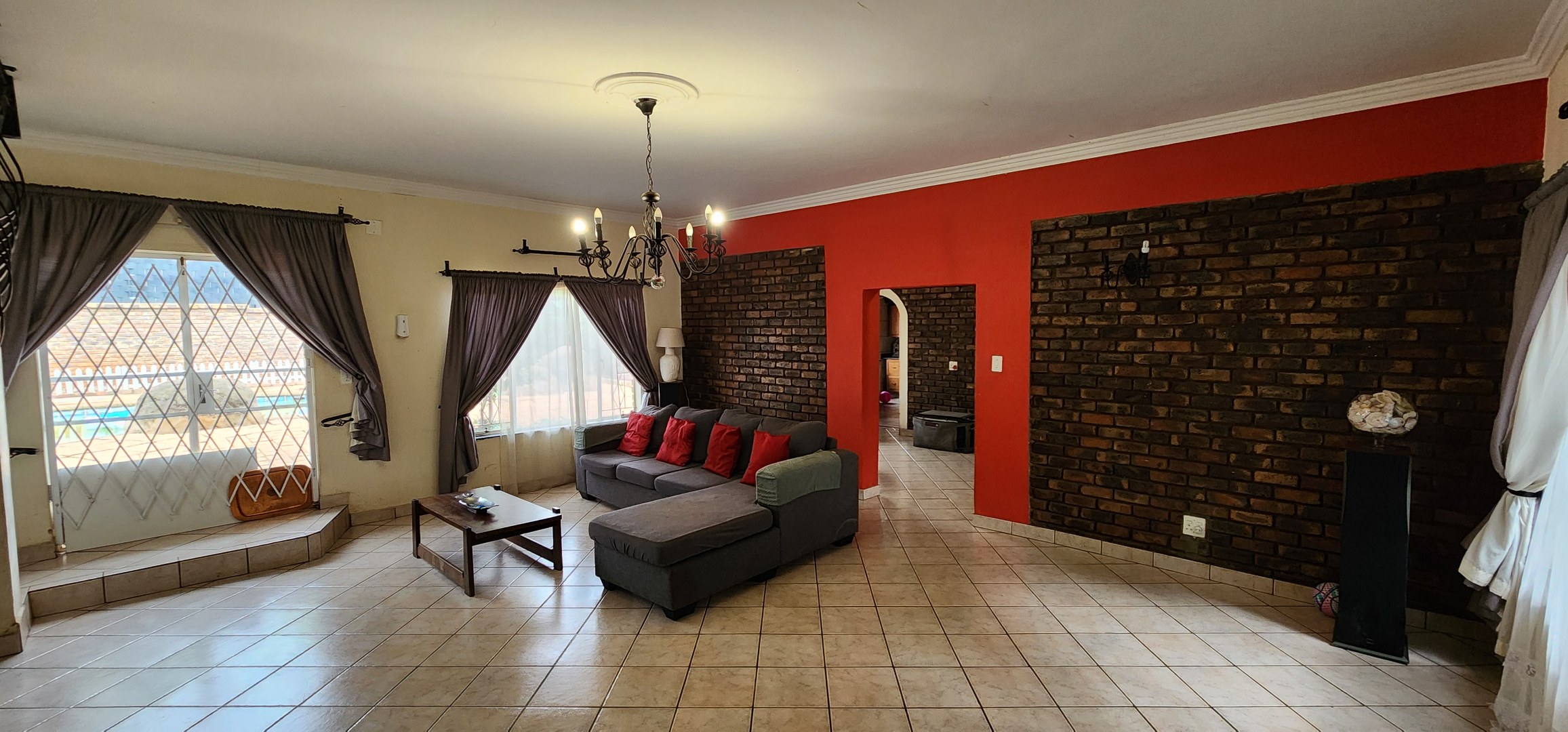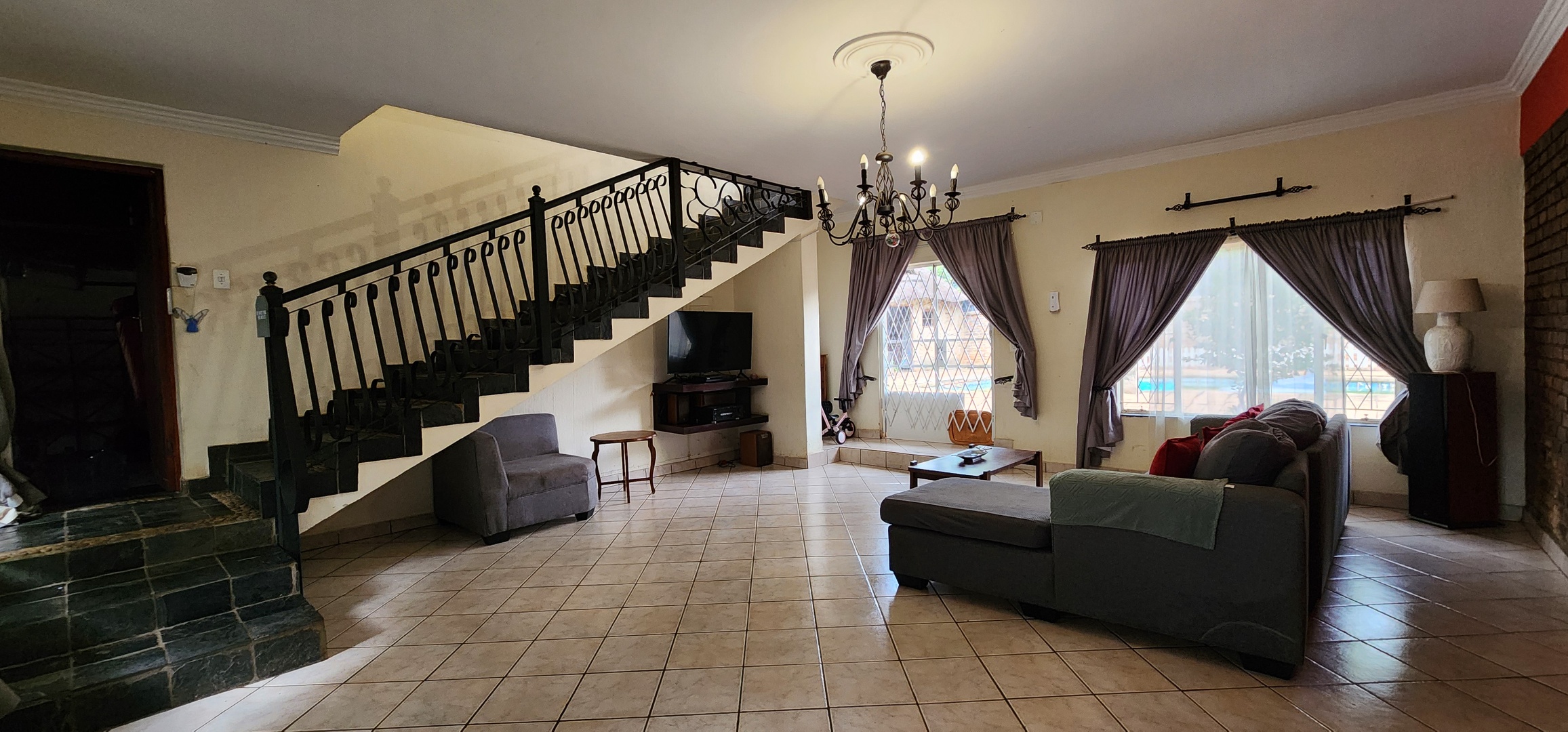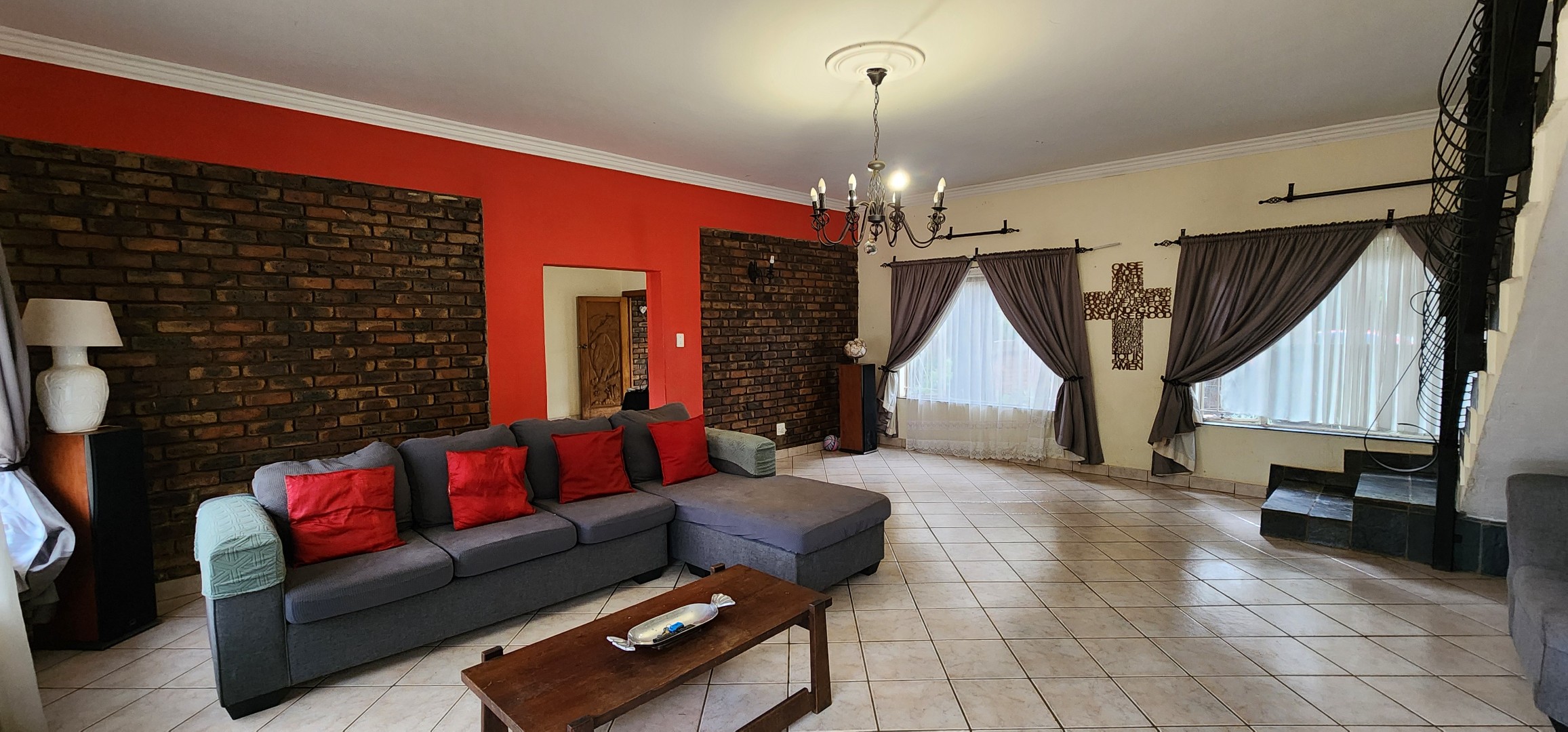 Discover this spacious 3-bedroom, 2.5-bathroom residence available for rent in the desirable Eldoraigne suburb of Centurion, South Africa. Boasting a generous floor size of 351 sqm, this home offers expansive living areas designed for comfort and functionality. The interior features durable tiled flooring throughout, high ceilings, and large windows that invite ample natural light. Character is added by distinctive exposed brick accent walls and an elegant wrought-iron staircase, creating a welcoming atmosphere. The property includes a dedicated lounge, a dining room, a well-appointed kitchen, and a convenient pantry. Ideal for families and pet owners, this home provides a versatile lifestyle. Step outside to a private oasis featuring a refreshing swimming pool, a relaxing deck, and a lapa with a built-in braai – perfect for outdoor entertaining. The established garden offers a tranquil retreat. Practical amenities include a dedicated laundry room, ample storage space, and direct balcony access from several rooms, providing pleasant green views. Parking is well-catered for with a double garage and two additional parking spaces, complemented by a paved driveway. Security is a priority, with the property featuring a solid brick perimeter wall, a secure access gate, and a security gate, ensuring peace of mind. The home is also fibre-ready, catering to modern connectivity needs. Eldoraigne is a well-regarded residential area in Centurion, known for its family-friendly environment and convenient access to local amenities and schools, making it an excellent choice for comfortable living. Key Features: * 3 Bedrooms, 2.5 Bathrooms (1 en-suite) * Spacious 351 sqm floor size * Private swimming pool with deck * Lapa and built-in braai * Double garage and 2 additional parking spaces * Balcony access with green views * Pet-friendly property * Fibre connectivity * Secure perimeter and access gate
