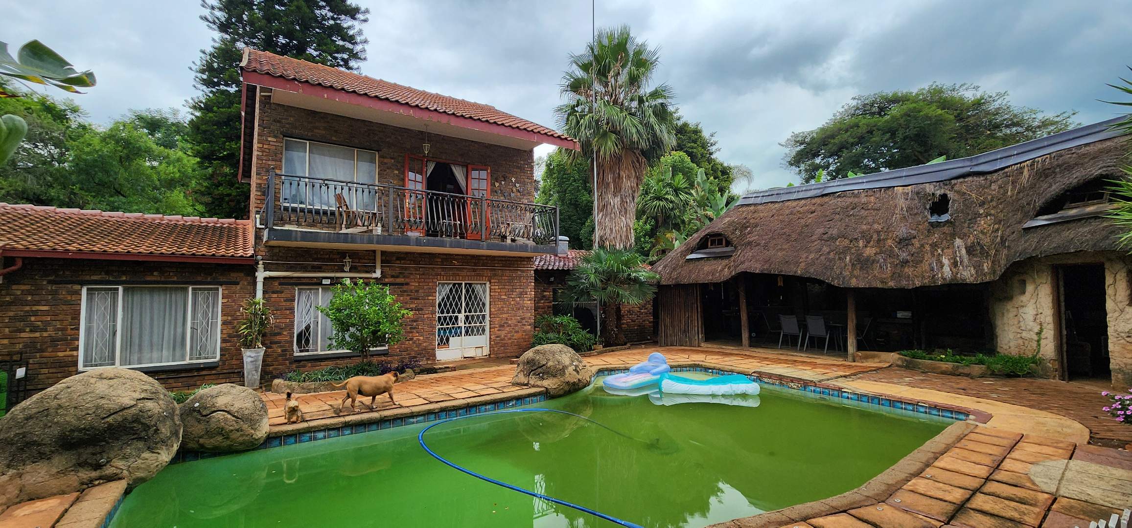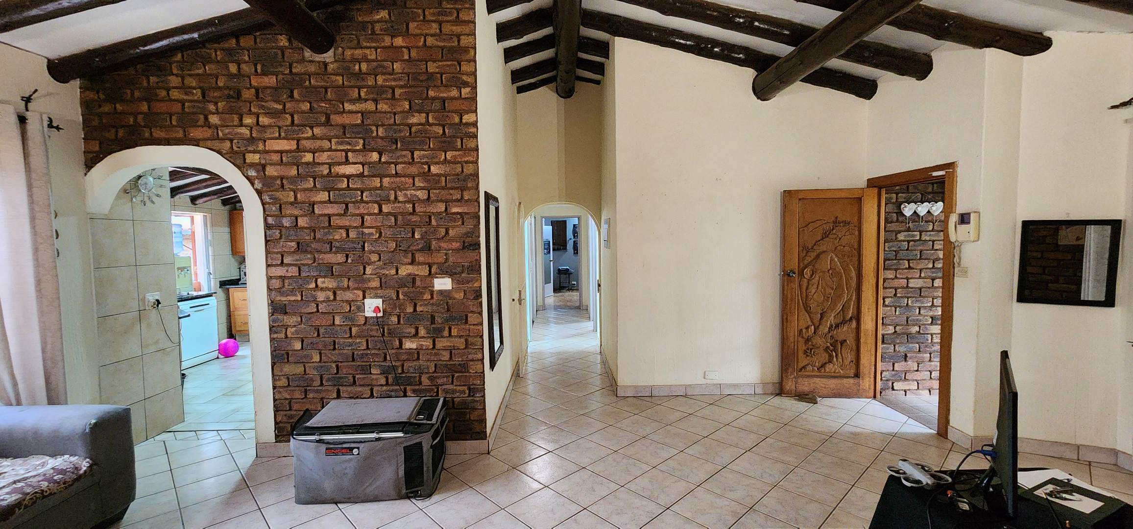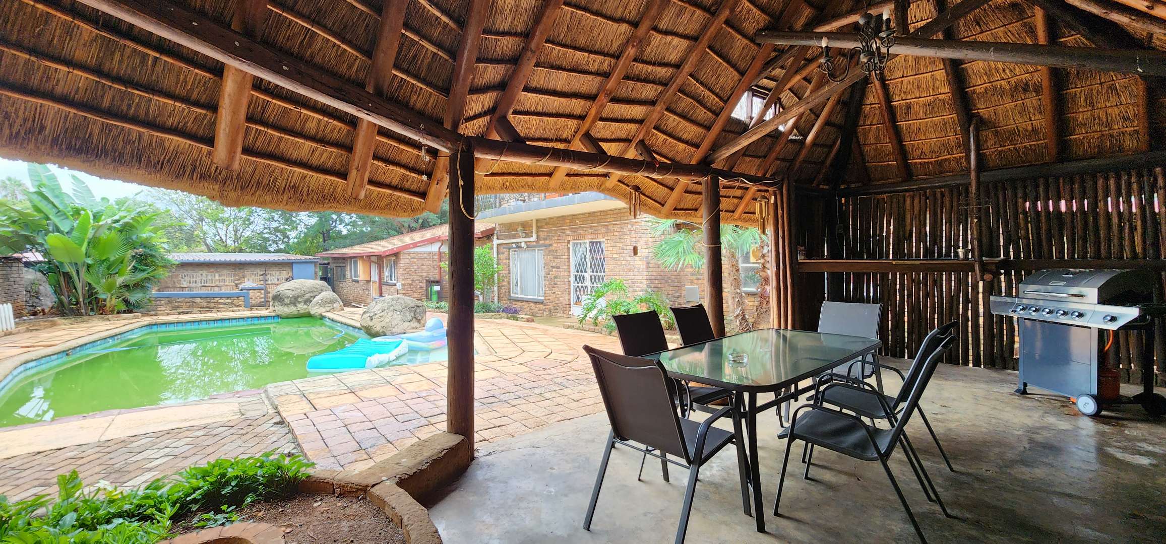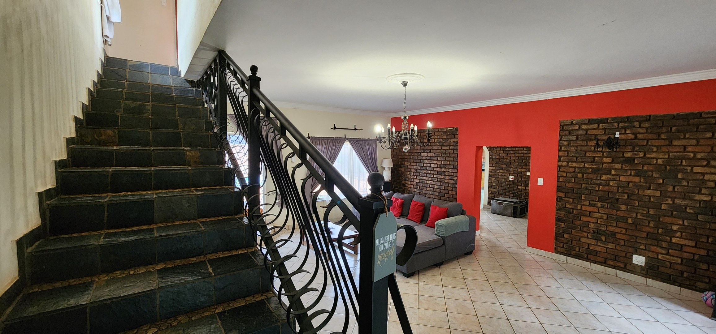 Discover this spacious 3-bedroom, 2.5-bathroom residence available for rent in the desirable Eldoraigne suburb of Centurion, South Africa. Boasting a generous floor size of 351 sqm, this home offers expansive living areas designed for comfort and functionality. The interior features durable tiled flooring throughout, high ceilings, and large windows that invite ample natural light. Character is added by distinctive exposed brick accent walls and an elegant wrought-iron staircase, creating a welcoming atmosphere. The property includes a dedicated lounge, a dining room, a well-appointed kitchen, and a convenient pantry. Ideal for families and pet owners, this home provides a versatile lifestyle. Step outside to a private oasis featuring a refreshing swimming pool, a relaxing deck, and a lapa with a built-in braai – perfect for outdoor entertaining. The established garden offers a tranquil retreat. Practical amenities include a dedicated laundry room, ample storage space, and direct balcony access from several rooms, providing pleasant green views. Parking is well-catered for with a double garage and two additional parking spaces, complemented by a paved driveway. Security is a priority, with the property featuring a solid brick perimeter wall, a secure access gate, and a security gate, ensuring peace of mind. The home is also fibre-ready, catering to modern connectivity needs. Eldoraigne is a well-regarded residential area in Centurion, known for its family-friendly environment and convenient access to local amenities and schools, making it an excellent choice for comfortable living. Key Features: * 3 Bedrooms, 2.5 Bathrooms (1 en-suite) * Spacious 351 sqm floor size * Private swimming pool with deck * Lapa and built-in braai * Double garage and 2 additional parking spaces * Balcony access with green views * Pet-friendly property * Fibre connectivity * Secure perimeter and access gate