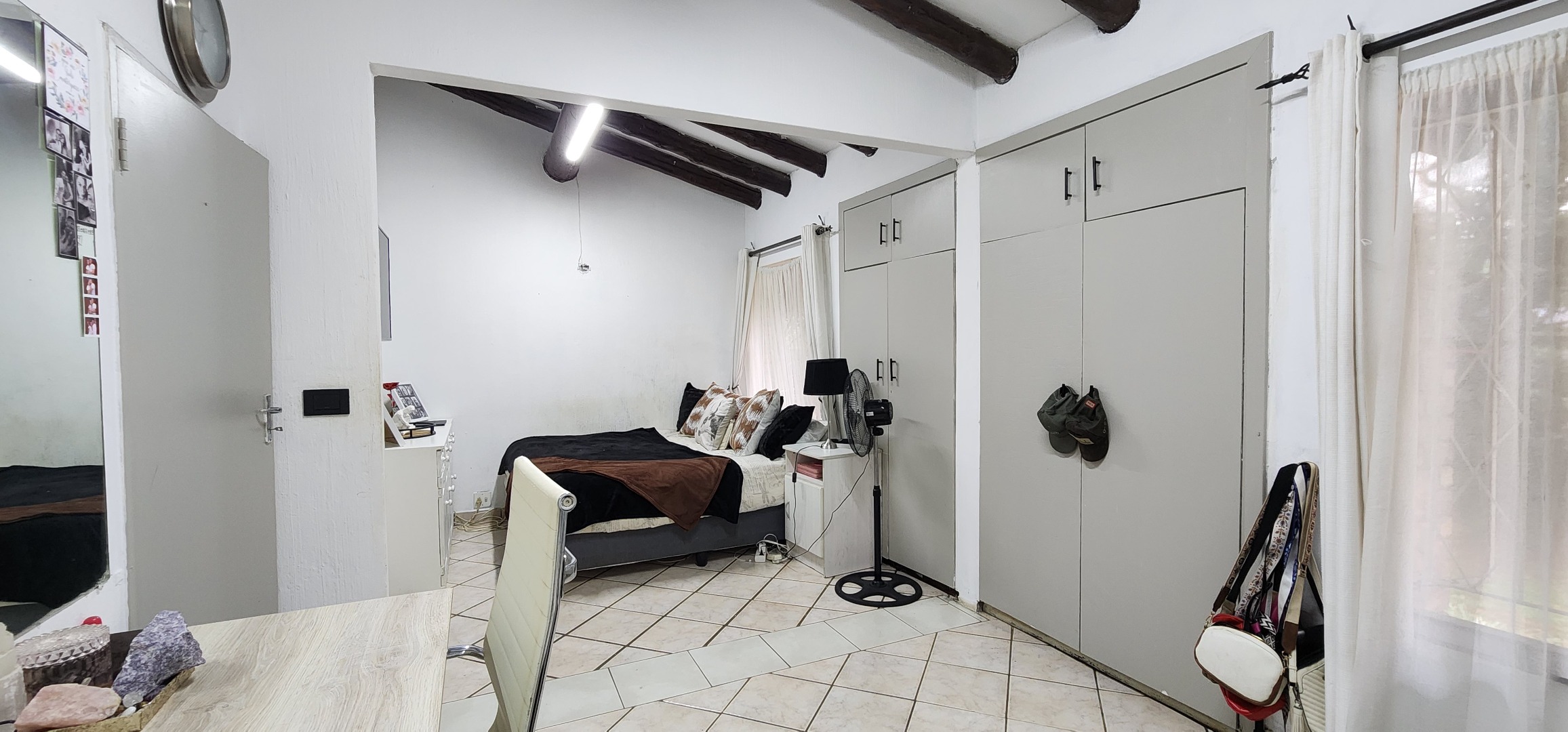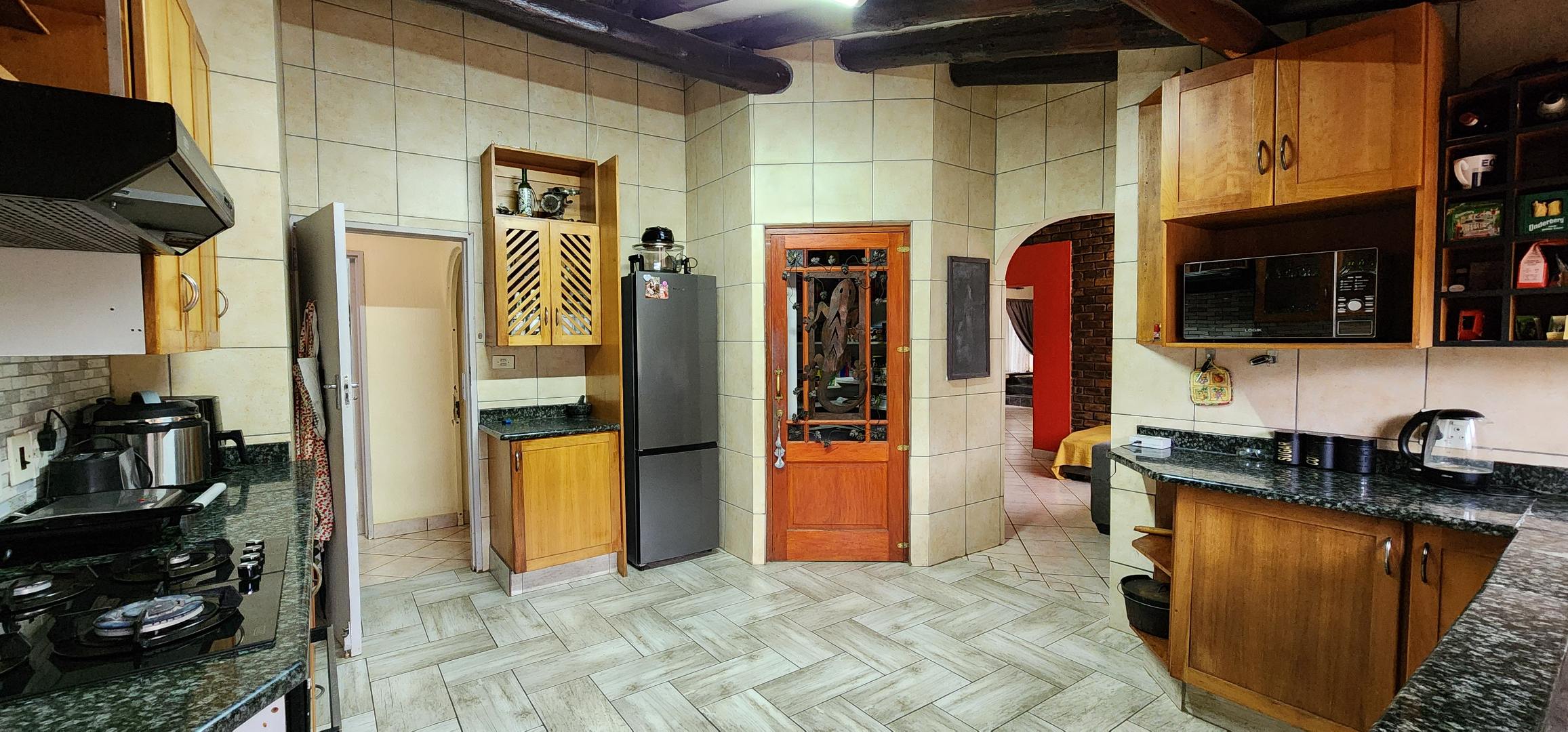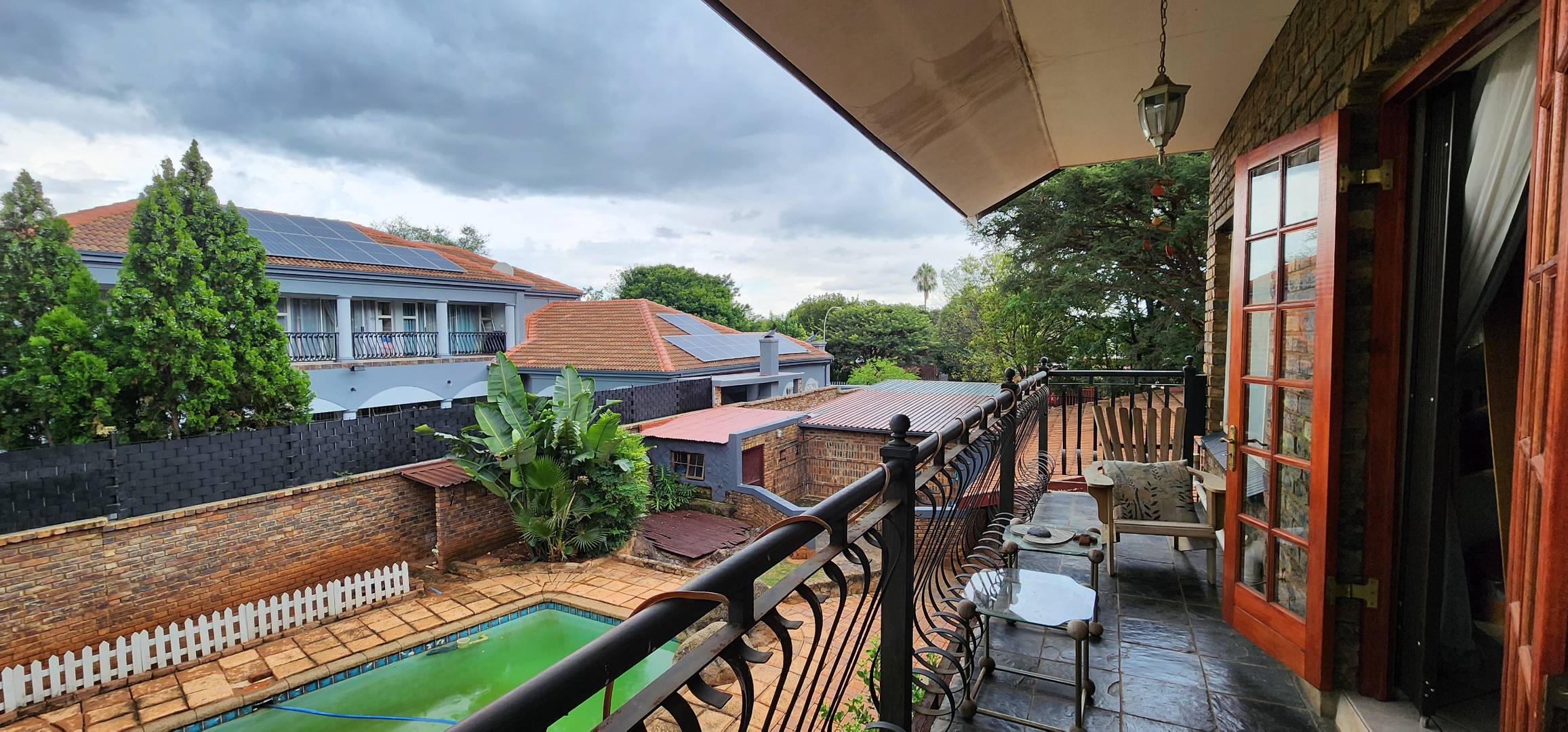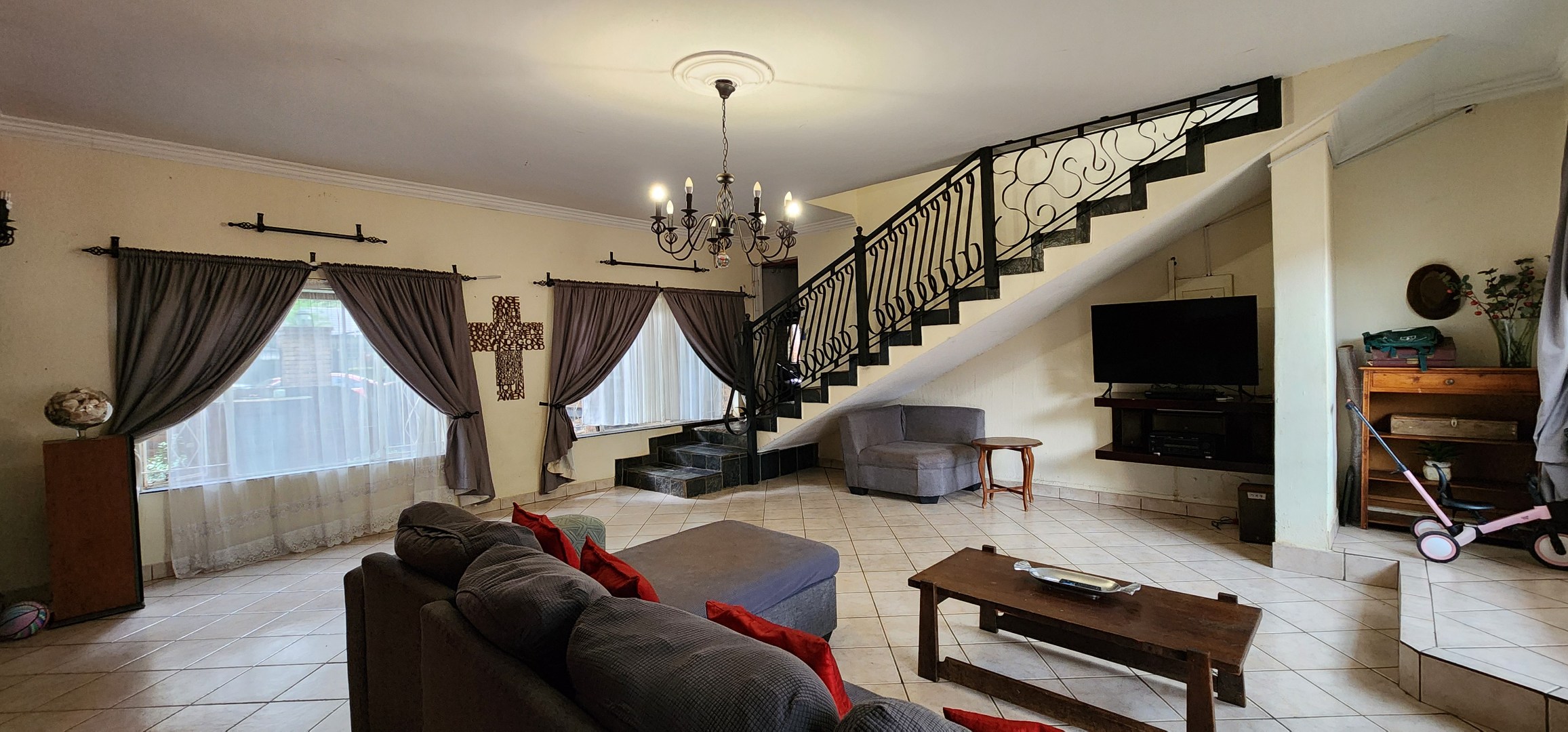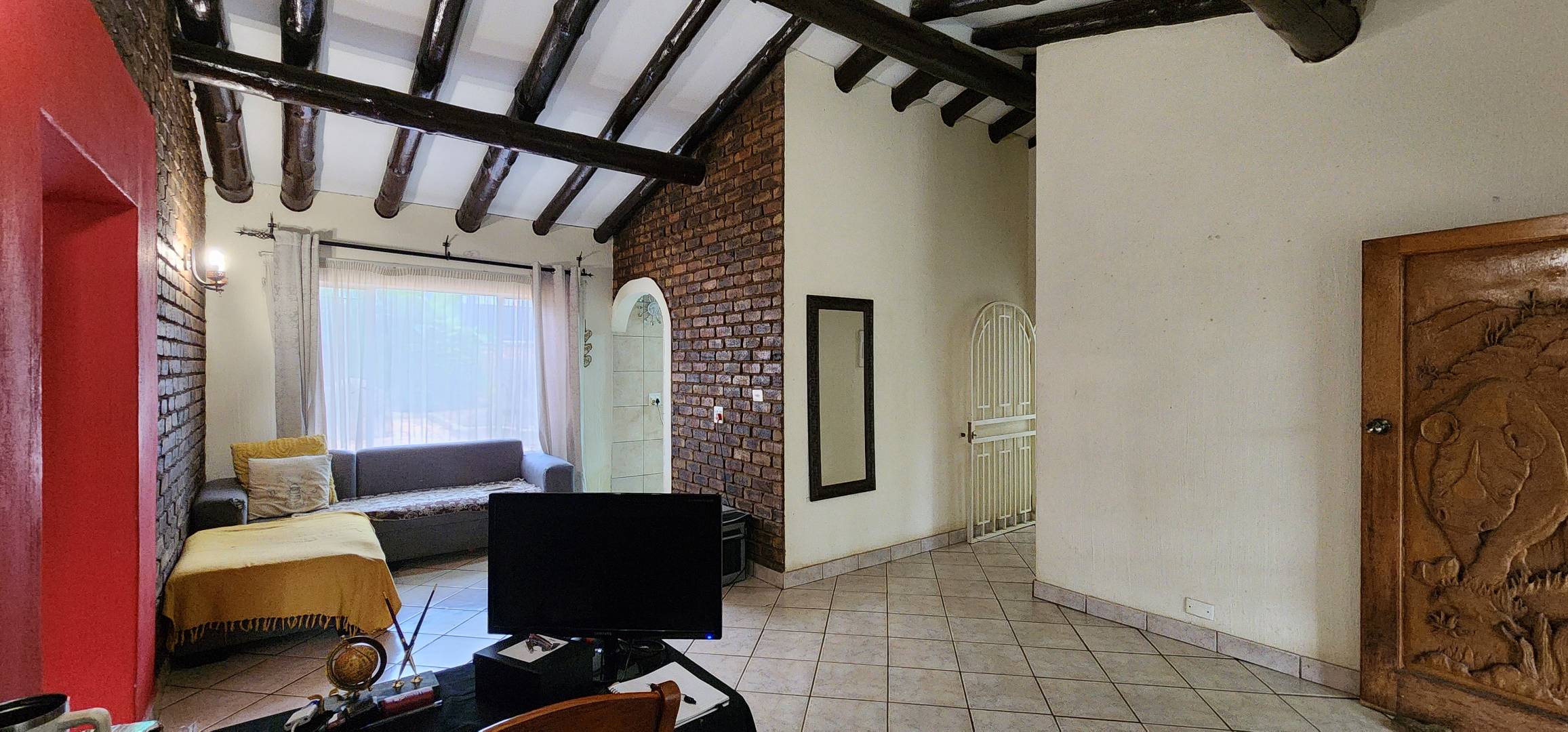 Discover this spacious 3-bedroom, 2.5-bathroom residence available for rent in the desirable Eldoraigne suburb of Centurion, South Africa. Boasting a generous floor size of 351 sqm, this home offers expansive living areas designed for comfort and functionality. The interior features durable tiled flooring throughout, high ceilings, and large windows that invite ample natural light. Character is added by distinctive exposed brick accent walls and an elegant wrought-iron staircase, creating a welcoming atmosphere. The property includes a dedicated lounge, a dining room, a well-appointed kitchen, and a convenient pantry. Ideal for families and pet owners, this home provides a versatile lifestyle. Step outside to a private oasis featuring a refreshing swimming pool, a relaxing deck, and a lapa with a built-in braai – perfect for outdoor entertaining. The established garden offers a tranquil retreat. Practical amenities include a dedicated laundry room, ample storage space, and direct balcony access from several rooms, providing pleasant green views. Parking is well-catered for with a double garage and two additional parking spaces, complemented by a paved driveway. Security is a priority, with the property featuring a solid brick perimeter wall, a secure access gate, and a security gate, ensuring peace of mind. The home is also fibre-ready, catering to modern connectivity needs. Eldoraigne is a well-regarded residential area in Centurion, known for its family-friendly environment and convenient access to local amenities and schools, making it an excellent choice for comfortable living. Key Features: * 3 Bedrooms, 2.5 Bathrooms (1 en-suite) * Spacious 351 sqm floor size * Private swimming pool with deck * Lapa and built-in braai * Double garage and 2 additional parking spaces * Balcony access with green views * Pet-friendly property * Fibre connectivity * Secure perimeter and access gate