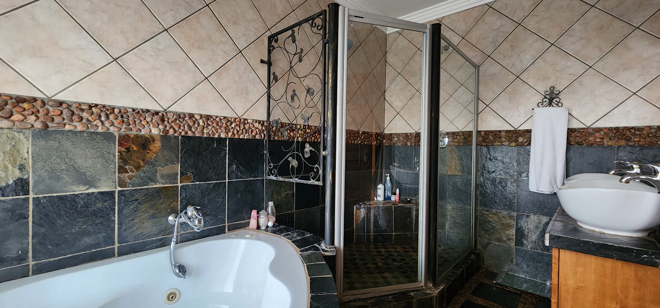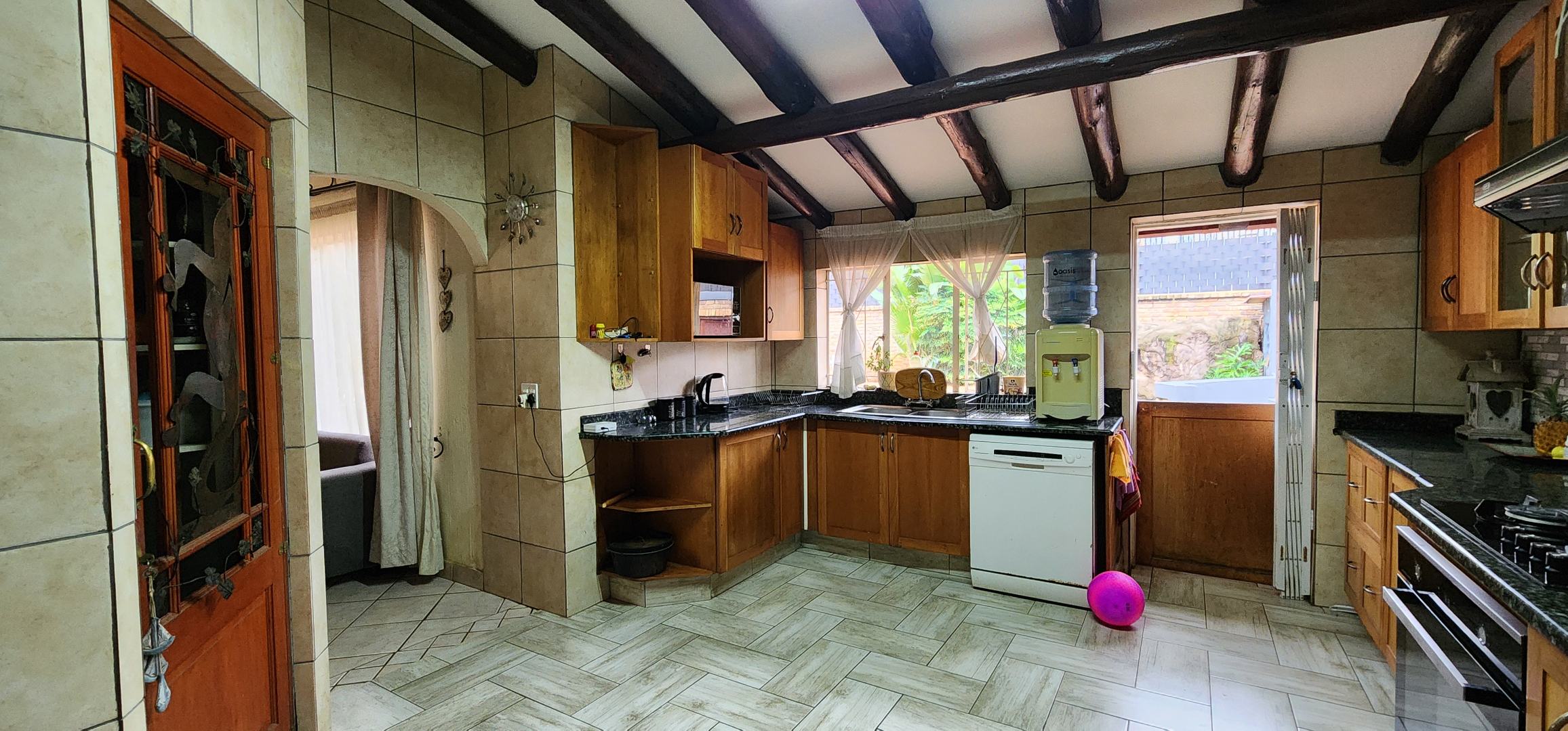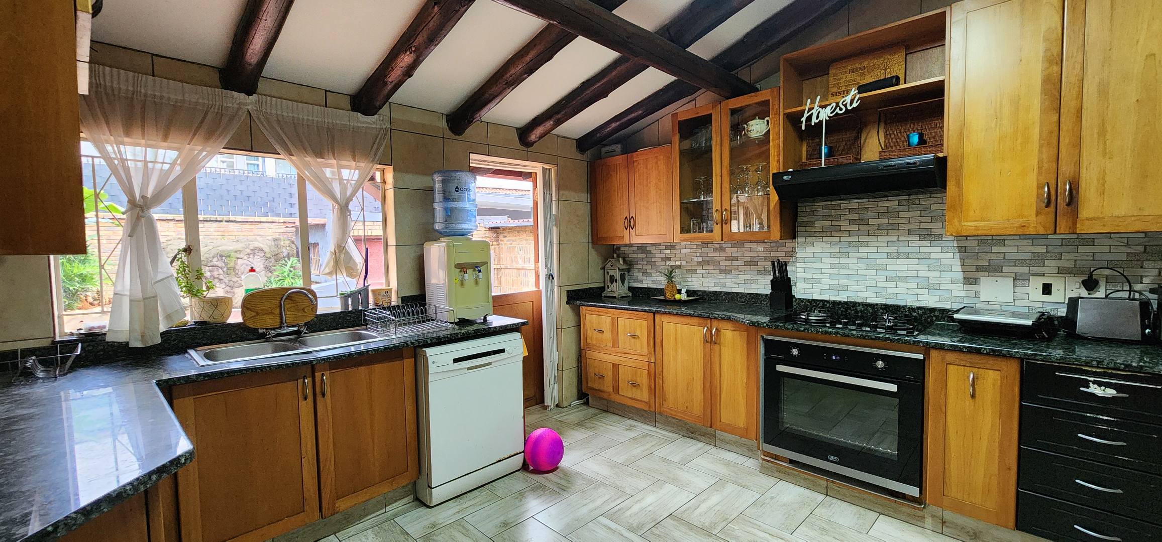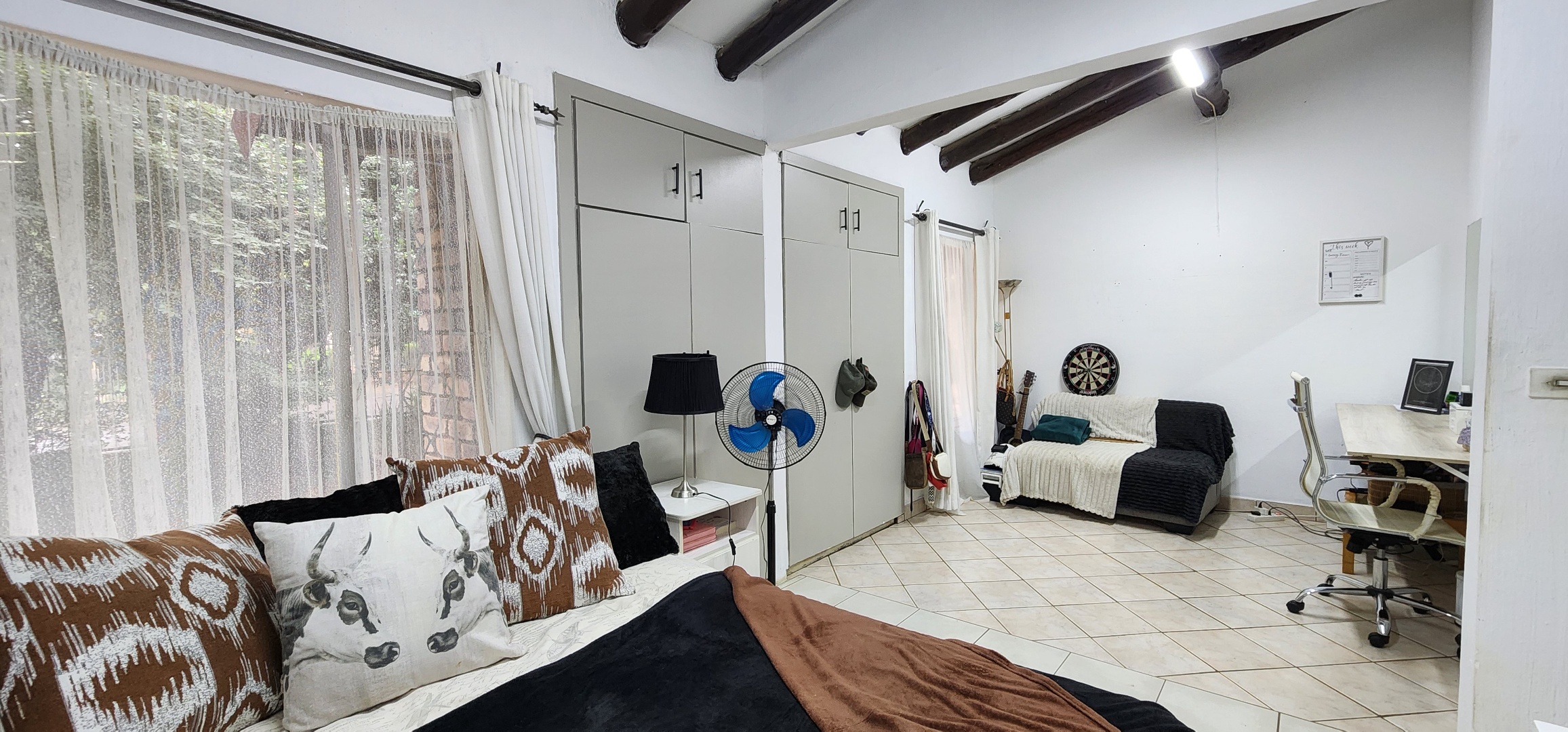 Discover this spacious 3-bedroom, 2.5-bathroom residence available for rent in the desirable Eldoraigne suburb of Centurion, South Africa. Boasting a generous floor size of 351 sqm, this home offers expansive living areas designed for comfort and functionality. The interior features durable tiled flooring throughout, high ceilings, and large windows that invite ample natural light. Character is added by distinctive exposed brick accent walls and an elegant wrought-iron staircase, creating a welcoming atmosphere. The property includes a dedicated lounge, a dining room, a well-appointed kitchen, and a convenient pantry. Ideal for families and pet owners, this home provides a versatile lifestyle. Step outside to a private oasis featuring a refreshing swimming pool, a relaxing deck, and a lapa with a built-in braai – perfect for outdoor entertaining. The established garden offers a tranquil retreat. Practical amenities include a dedicated laundry room, ample storage space, and direct balcony access from several rooms, providing pleasant green views. Parking is well-catered for with a double garage and two additional parking spaces, complemented by a paved driveway. Security is a priority, with the property featuring a solid brick perimeter wall, a secure access gate, and a security gate, ensuring peace of mind. The home is also fibre-ready, catering to modern connectivity needs. Eldoraigne is a well-regarded residential area in Centurion, known for its family-friendly environment and convenient access to local amenities and schools, making it an excellent choice for comfortable living. Key Features: * 3 Bedrooms, 2.5 Bathrooms (1 en-suite) * Spacious 351 sqm floor size * Private swimming pool with deck * Lapa and built-in braai * Double garage and 2 additional parking spaces * Balcony access with green views * Pet-friendly property * Fibre connectivity * Secure perimeter and access gate