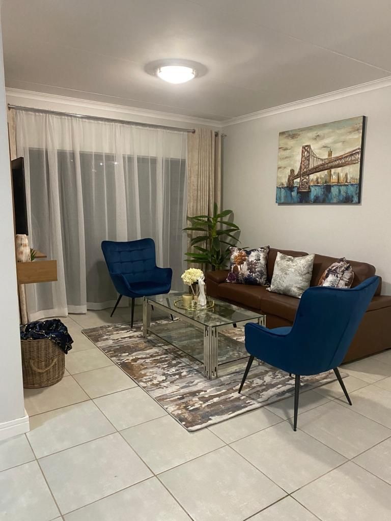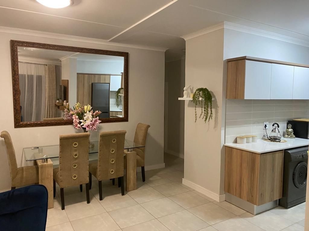 Nestled in the vibrant heart of The Blyde, a premier lifestyle estate in Pretoria, this ground-floor, three-bedroom, two-bathroom unit offers modern living with a touch of elegance. The open-plan lounge, dining, and kitchen area creates a seamless flow, perfect for entertaining or relaxed family living. The kitchen boasts contemporary finishes, ample storage, and high-quality appliances, while the lounge opens to a private garden, ideal for outdoor relaxation or alfresco dining. Two spacious bedrooms with built-in cupboards share a stylish full guest bathroom, while the main bedroom features generous cupboard space and a private en-suite for added luxury. With two allocated parking bays, convenience is at your doorstep in this thoughtfully designed home.
