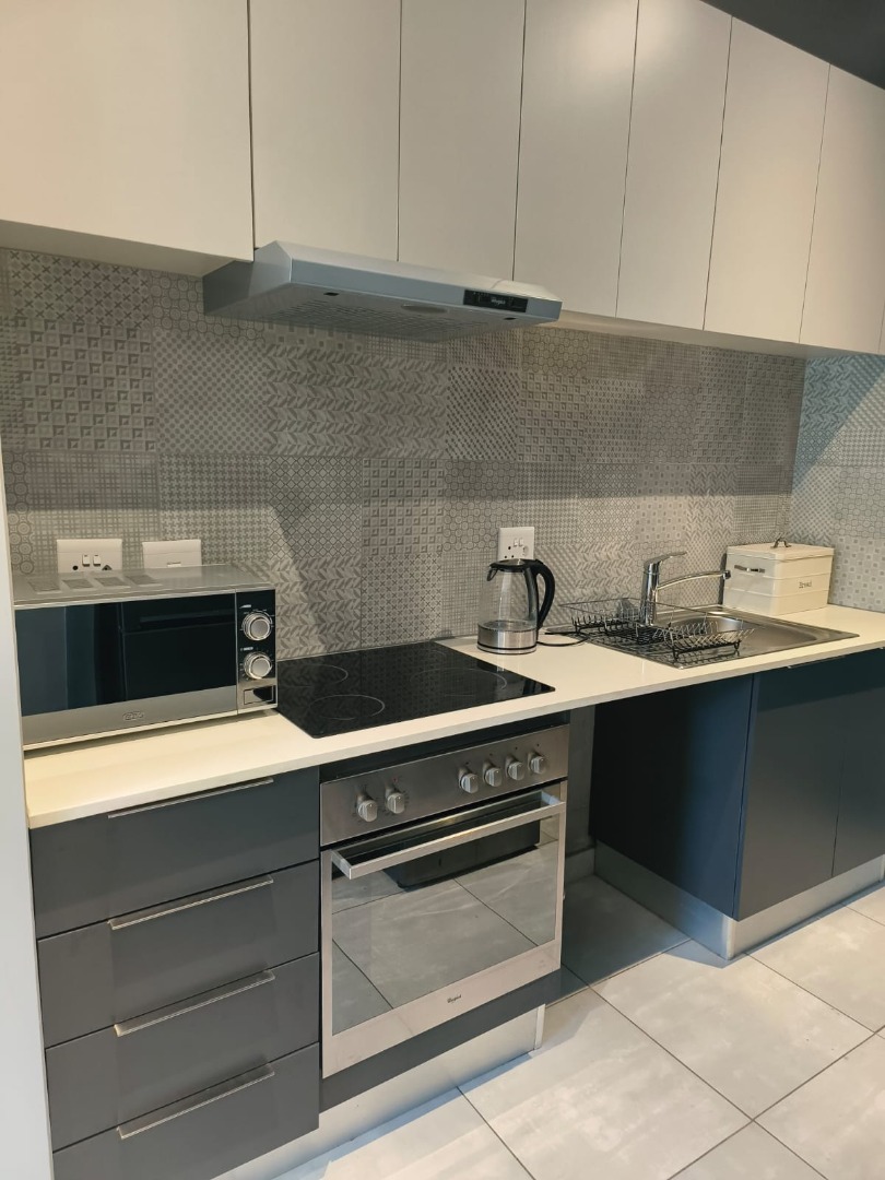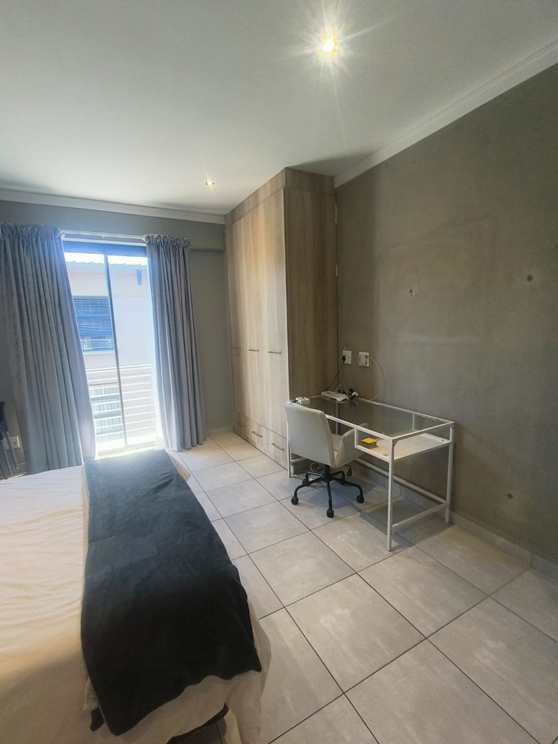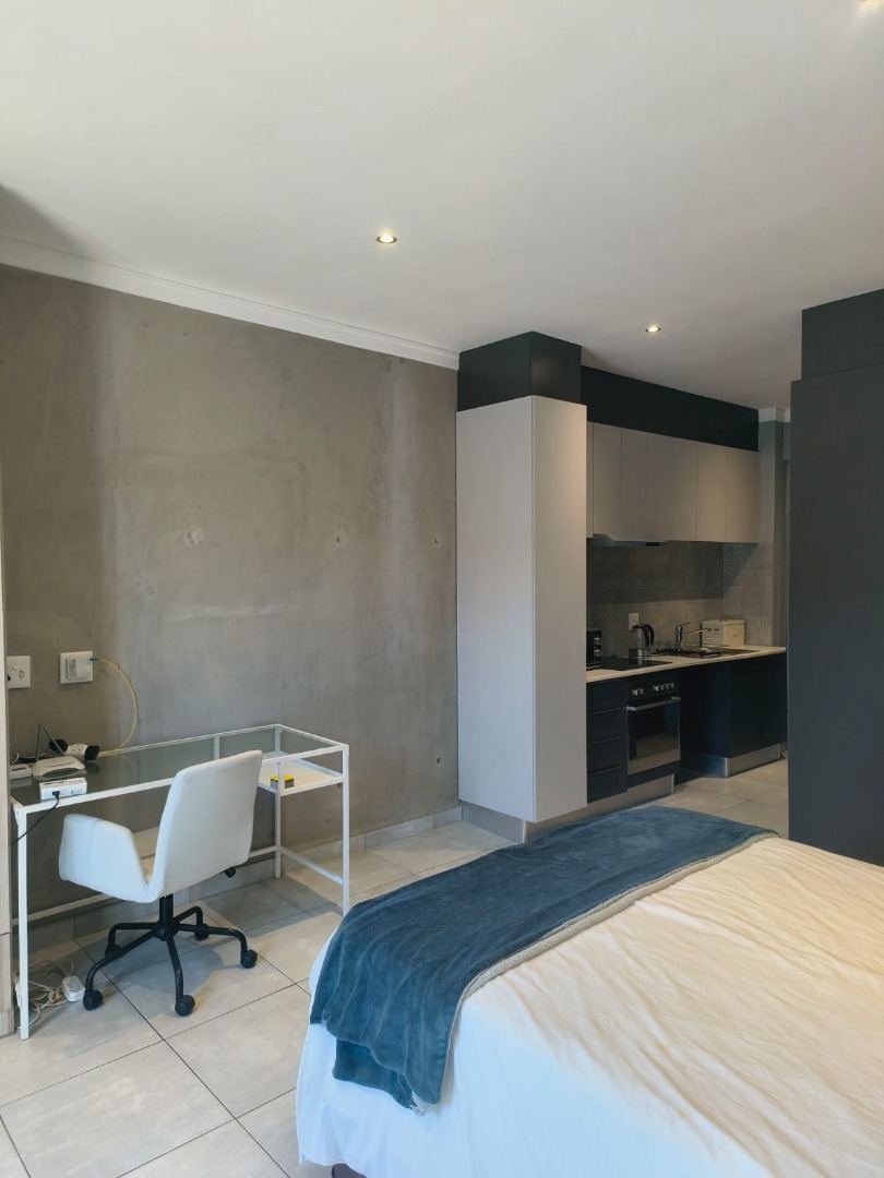 Discover modern, convenient living in this stylish studio apartment, perfectly situated within a secure complex in the vibrant Brooklyn suburb of Pretoria. Spanning a comfortable 31 square metres, this furnished unit is thoughtfully designed to maximise space and functionality, making it an ideal choice for students or young professionals seeking a lock-up-and-go lifestyle. The contemporary layout seamlessly integrates living, sleeping, and working areas, all finished with a keen eye for modern aesthetics and practical living. The apartment boasts a sleek, compact kitchenette featuring modern grey and white cabinetry, complemented by an attractive patterned tiled backsplash. Essential appliances are integrated, including an electric hob, oven, extractor fan, and microwave, alongside a practical sink with a dish drying rack, ensuring all culinary needs are met efficiently. The main living space is bright and inviting, benefiting from large windows that allow ample natural light to flood the room. Recessed ceiling lighting further enhances the contemporary ambiance. The flooring throughout is easy-to-maintain light-coloured tile, providing a clean and cohesive look. A dedicated workspace with a desk and chair is thoughtfully incorporated, alongside spacious, modern built-in wardrobes with a light wood-grain finish, offering ample storage solutions. A unique concrete-look accent wall adds a touch of industrial chic to the modern design. The bathroom is equally modern and well-appointed, featuring stylish tiling and a glass-enclosed shower with a distinctive black and white checkerboard floor. A window within the shower area provides natural light and ventilation, contributing to a fresh and airy feel. This studio is part of a security complex that prioritises resident comfort and convenience, offering a range of communal amenities designed to enhance daily life. Residents can enjoy access to a refreshing swimming pool, a well-equipped gym for fitness enthusiasts, and a communal braai area perfect for social gatherings. The building also features lifts for easy access to all floors. Security is paramount within this complex, ensuring peace of mind for all residents. The entrance, prominently branded as 'iQ Brooklyn', features a secure gatehouse with boom barriers and an access gate, all monitored by 24-hour security personnel and CCTV surveillance. Electric fencing further fortifies the perimeter, creating a safe and protected environment. The established greenery, including a large mature tree and potted plants at the entrance, adds to the welcoming atmosphere of the complex. Located in Brooklyn, Pretoria, this property offers excellent connectivity to educational institutions, shopping centres, and various urban amenities, making it a highly desirable address for those seeking convenience and a dynamic lifestyle. This furnished studio apartment represents a prime opportunity for comfortable, secure, and modern living in a sought-after area. Key Features: * Modern, furnished studio apartment (31 sqm) * Integrated kitchenette with essential appliances * Dedicated workspace and built-in wardrobes * Contemporary tiled bathroom with glass shower * Access to communal pool, gym, and braai area * 24-hour security, CCTV, and access control * Lifts for convenient access * Ideal for students or young professionals * Secure complex in Brooklyn, Pretoria * 1 dedicated parking bay