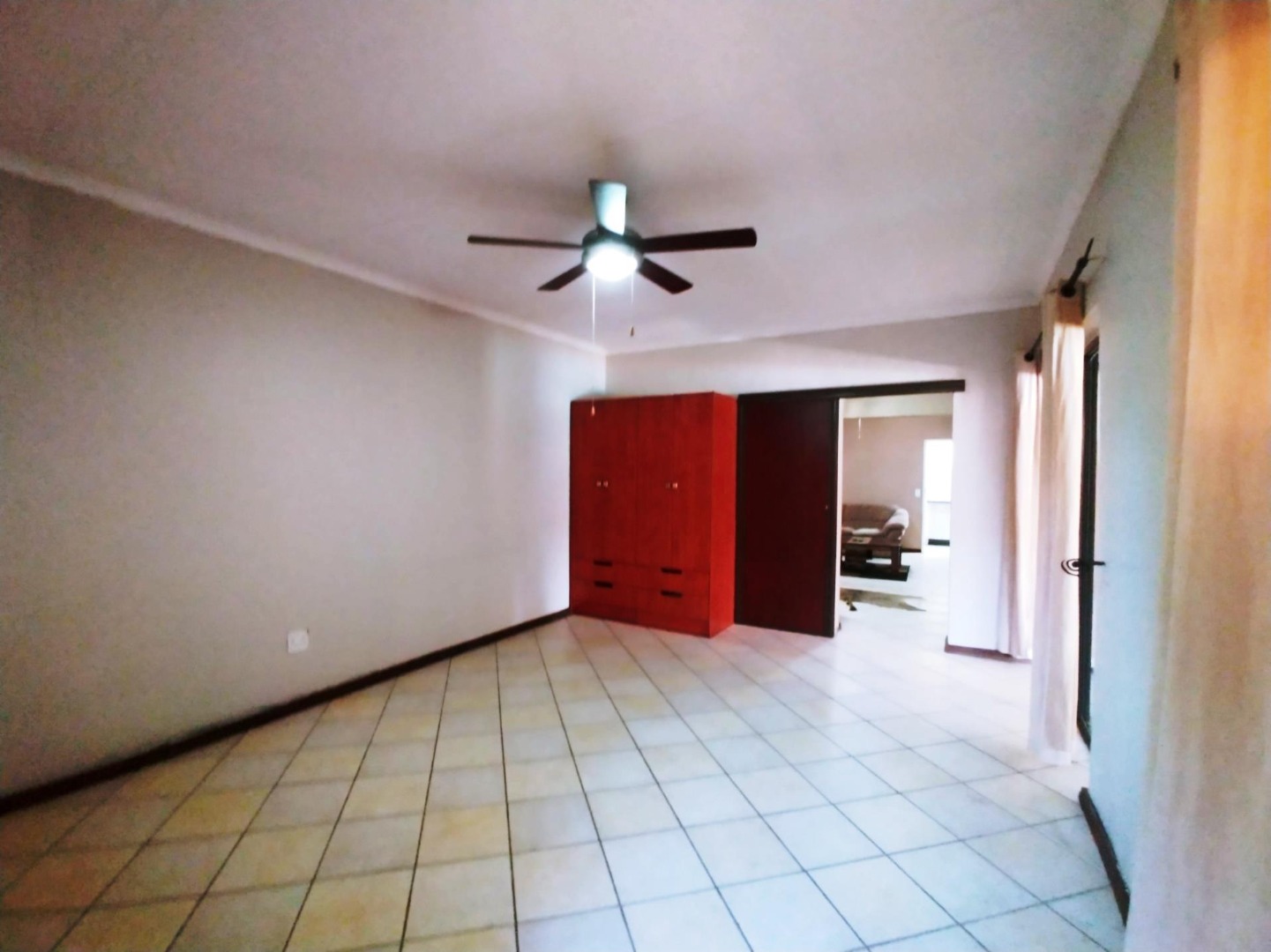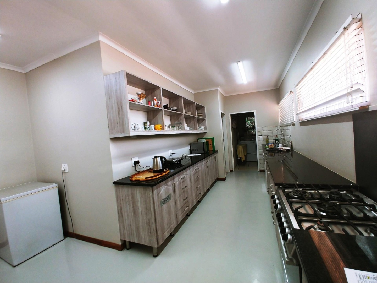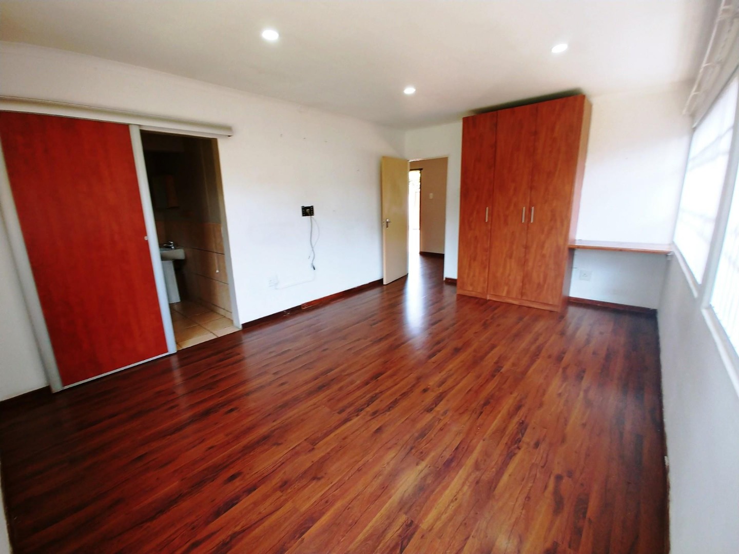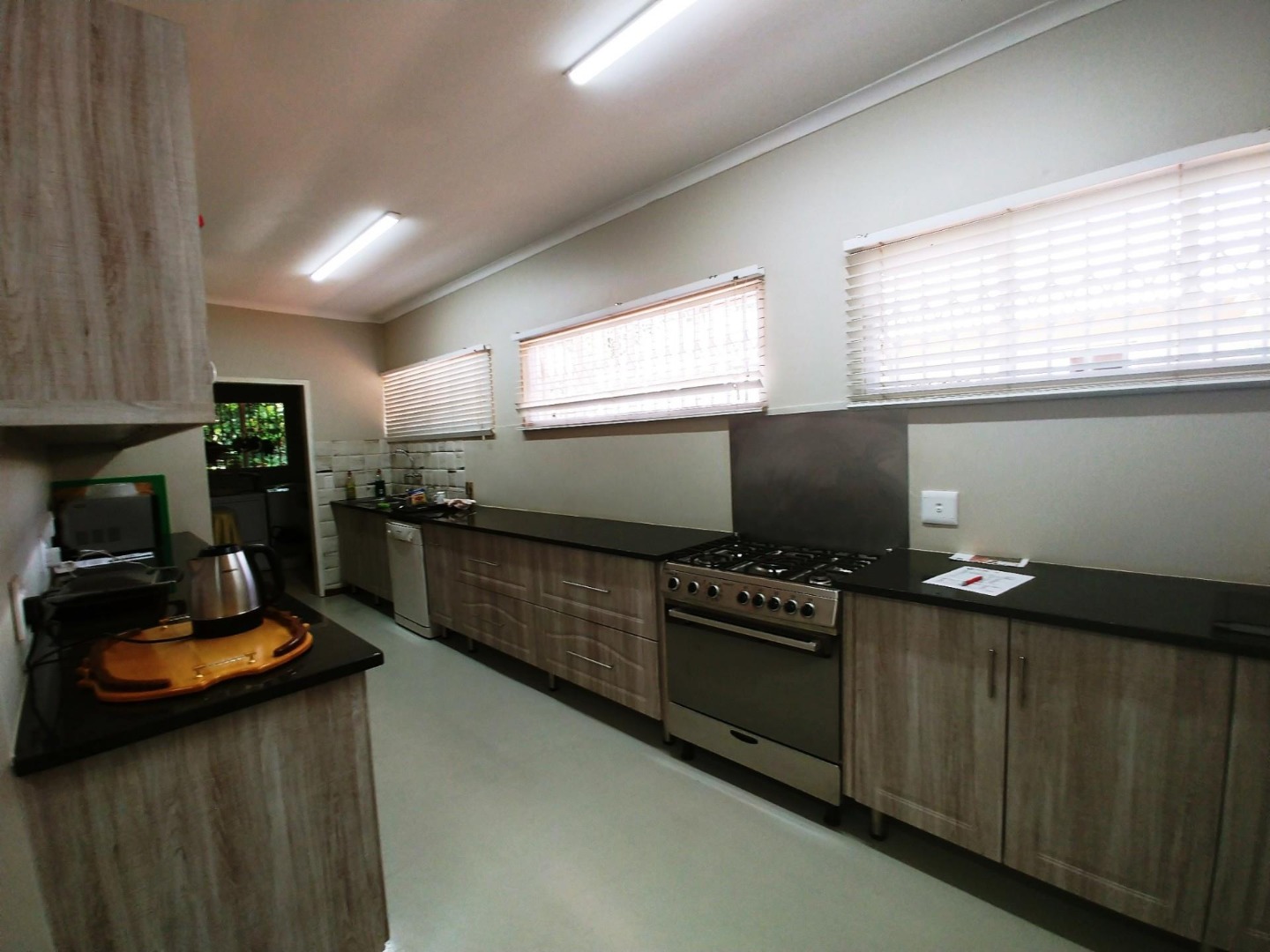 Discover this inviting 4-bedroom, 3-bathroom rental property situated in the sought-after suburb of Menlo Park, Pretoria. Designed for comfortable family living and entertaining, this home offers a practical layout with ample space. The interior features two spacious lounges and a dedicated dining room, providing versatile areas for relaxation and gatherings. Tiled flooring throughout the main living areas ensures easy maintenance. The modern kitchen is a highlight, equipped with wood-look cabinets, dark countertops, a gas stove, and open shelving, complemented by abundant natural light. An additional utility area or second kitchen boasts light wood-grain cabinets, black countertops, and stainless steel appliances including a gas range/oven and dishwasher, offering excellent functionality. The bedrooms include comfortable spaces, with at least one featuring dark laminate flooring, a built-in wardrobe, and a convenient built-in desk. Step outside to a private oasis featuring a sparkling swimming pool, perfect for cooling off on warm days. The charming thatched Lapa, complete with a bar, creates an ideal setting for outdoor entertaining and social events. The property also benefits from a well-maintained garden with mature trees and paved walkways, enhancing its appeal. Security is addressed with an electric fence on the boundary wall, burglar bars on windows, and a secure entrance door, providing peace of mind. Menlo Park is a desirable residential area in Pretoria, known for its convenient location and family-friendly atmosphere, offering easy access to local amenities and schools. Key Features: * 4 Bedrooms, 3 Bathrooms * 2 Lounges, 1 Dining Room * Modern Kitchen with Gas Stove * Private Swimming Pool * Thatched Lapa with Bar Area * Established Garden * Electric Fencing & Burglar Bars * Located in Menlo Park, Pretoria