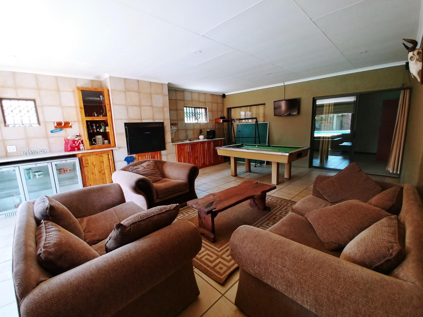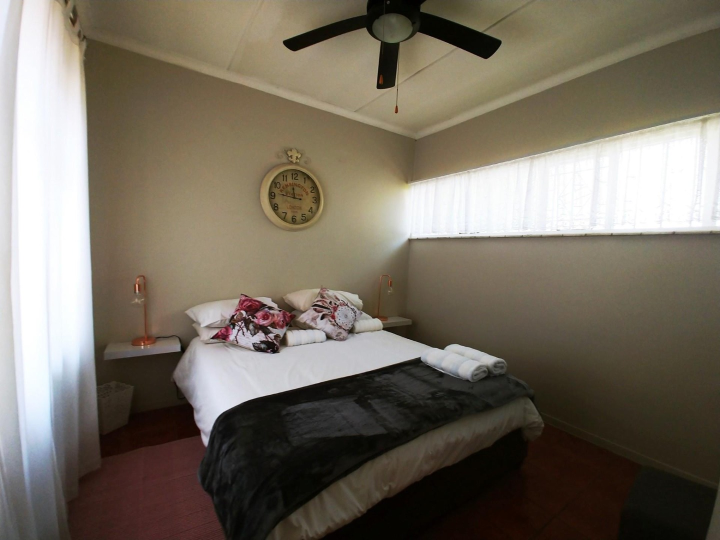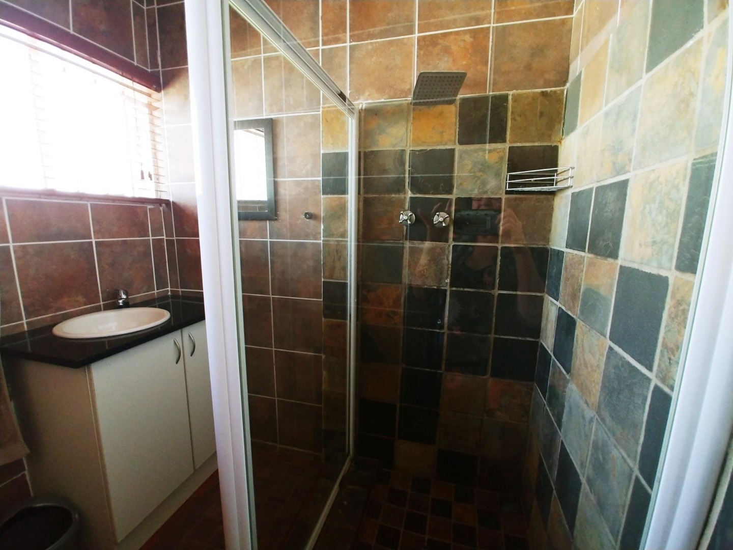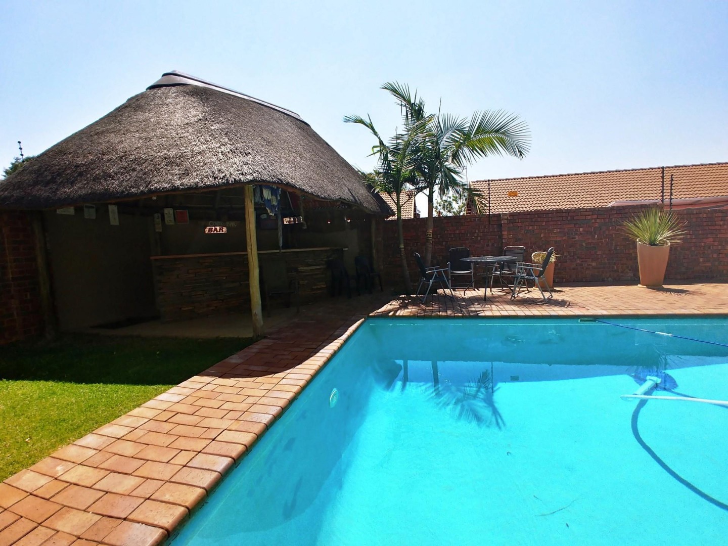 Discover this inviting 4-bedroom, 3-bathroom rental property situated in the sought-after suburb of Menlo Park, Pretoria. Designed for comfortable family living and entertaining, this home offers a practical layout with ample space. The interior features two spacious lounges and a dedicated dining room, providing versatile areas for relaxation and gatherings. Tiled flooring throughout the main living areas ensures easy maintenance. The modern kitchen is a highlight, equipped with wood-look cabinets, dark countertops, a gas stove, and open shelving, complemented by abundant natural light. An additional utility area or second kitchen boasts light wood-grain cabinets, black countertops, and stainless steel appliances including a gas range/oven and dishwasher, offering excellent functionality. The bedrooms include comfortable spaces, with at least one featuring dark laminate flooring, a built-in wardrobe, and a convenient built-in desk. Step outside to a private oasis featuring a sparkling swimming pool, perfect for cooling off on warm days. The charming thatched Lapa, complete with a bar, creates an ideal setting for outdoor entertaining and social events. The property also benefits from a well-maintained garden with mature trees and paved walkways, enhancing its appeal. Security is addressed with an electric fence on the boundary wall, burglar bars on windows, and a secure entrance door, providing peace of mind. Menlo Park is a desirable residential area in Pretoria, known for its convenient location and family-friendly atmosphere, offering easy access to local amenities and schools. Key Features: * 4 Bedrooms, 3 Bathrooms * 2 Lounges, 1 Dining Room * Modern Kitchen with Gas Stove * Private Swimming Pool * Thatched Lapa with Bar Area * Established Garden * Electric Fencing & Burglar Bars * Located in Menlo Park, Pretoria