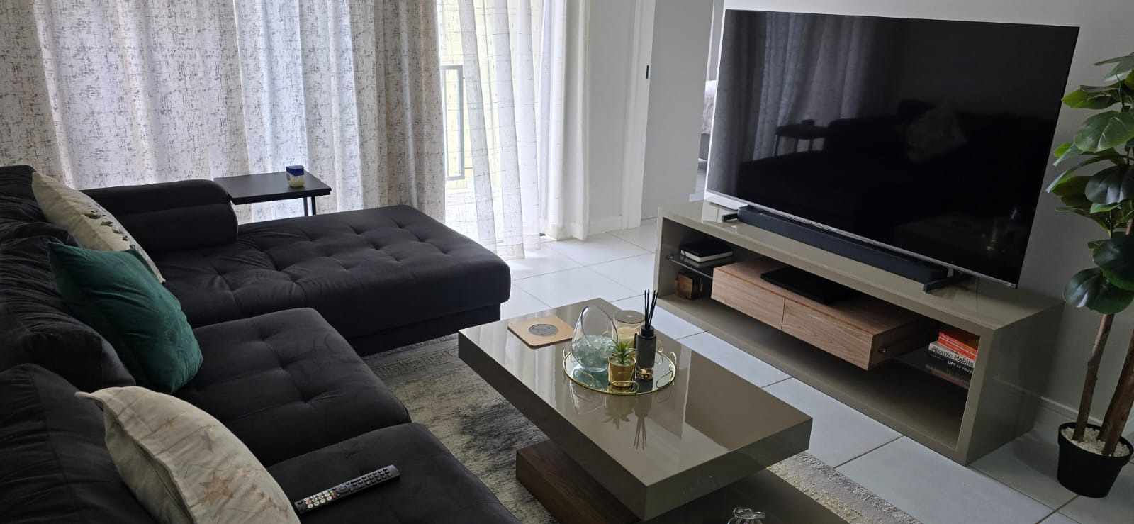 The apartment features two well-sized bedrooms and two modern bathrooms, designed with comfort and functionality in mind. The sleek kitchen boasts contemporary finishes and a practical layout, creating a perfect balance between style and everyday convenience. Quality fittings and clean lines enhance the overall modern feel of the home.