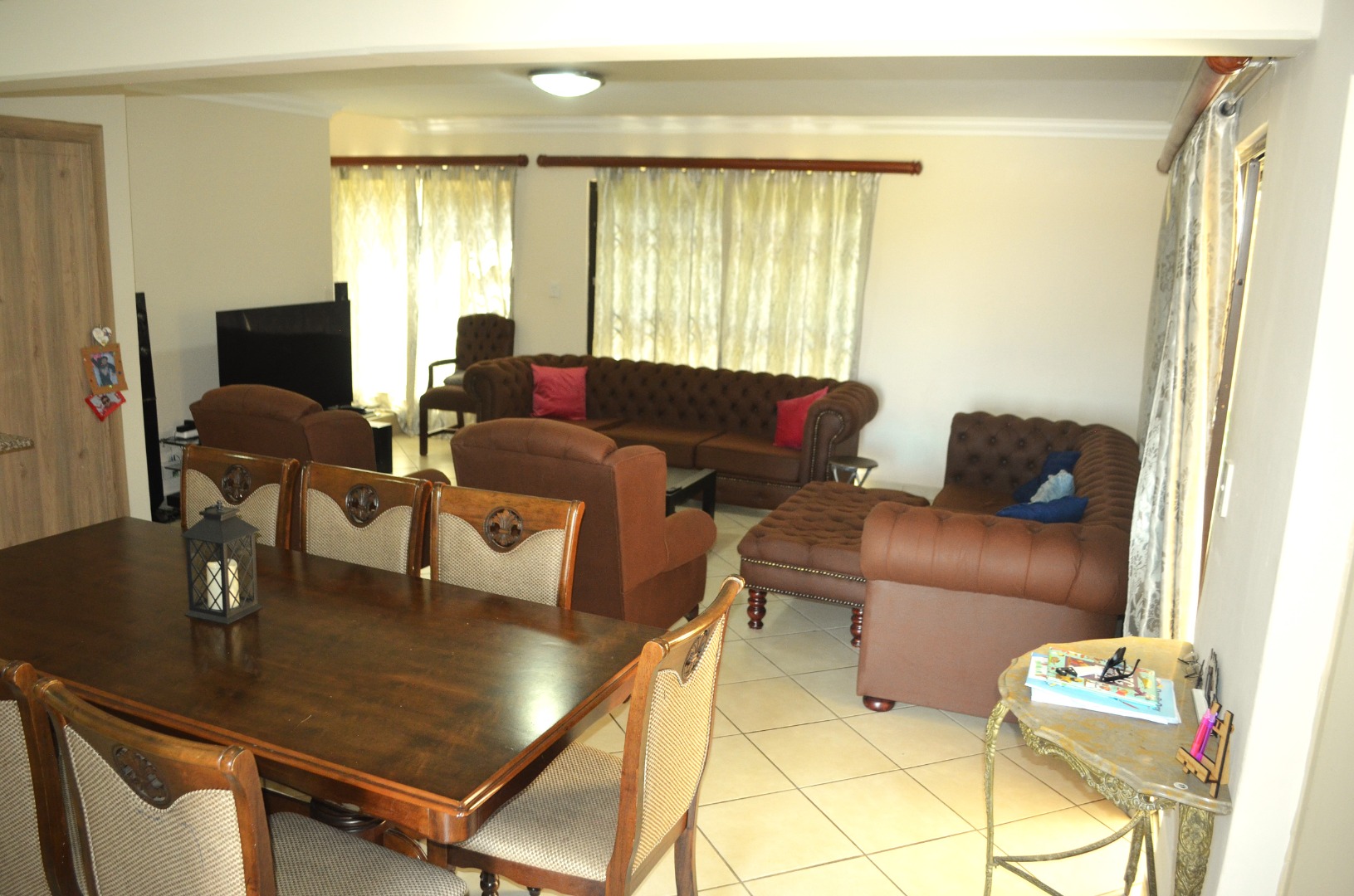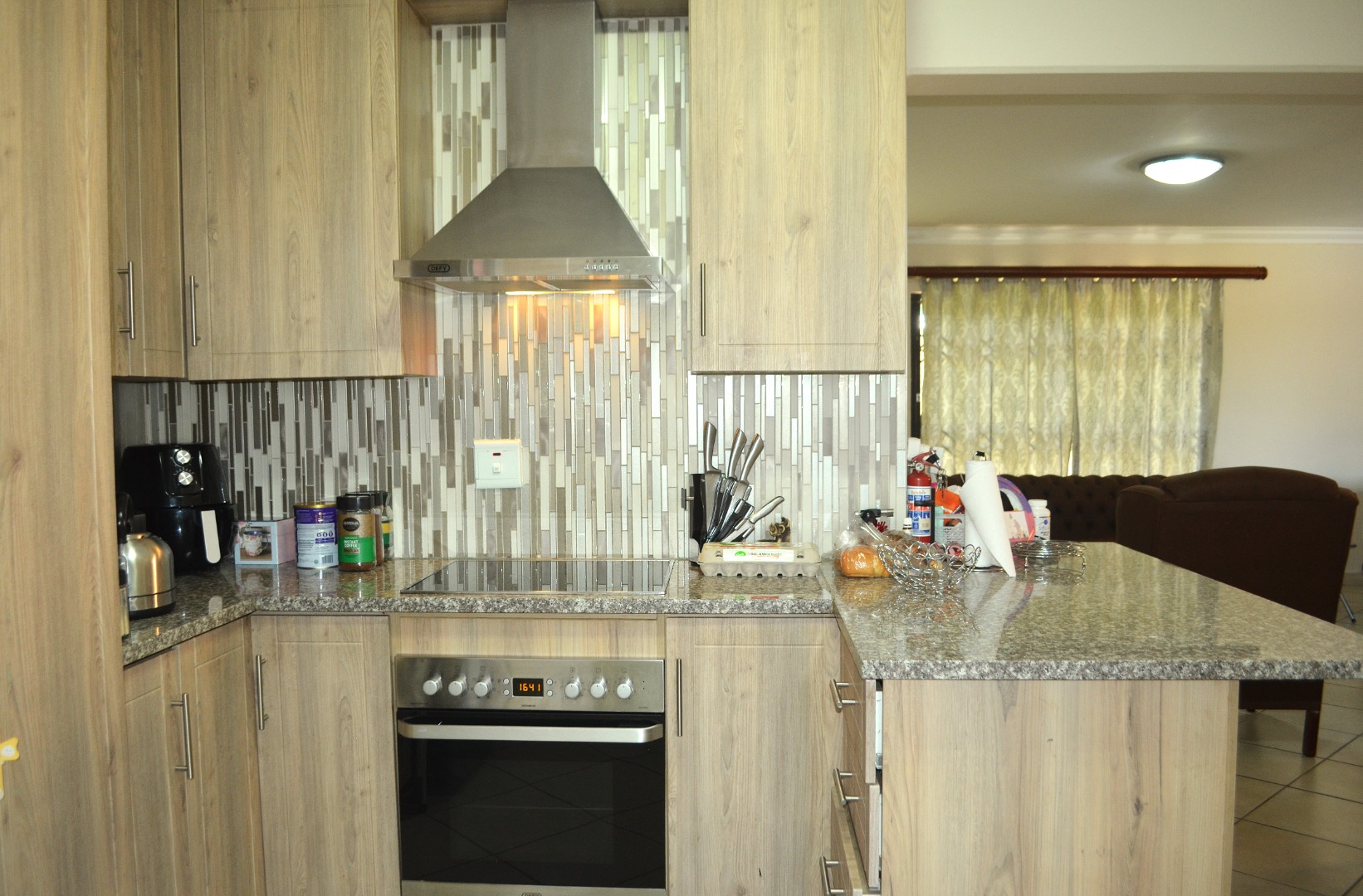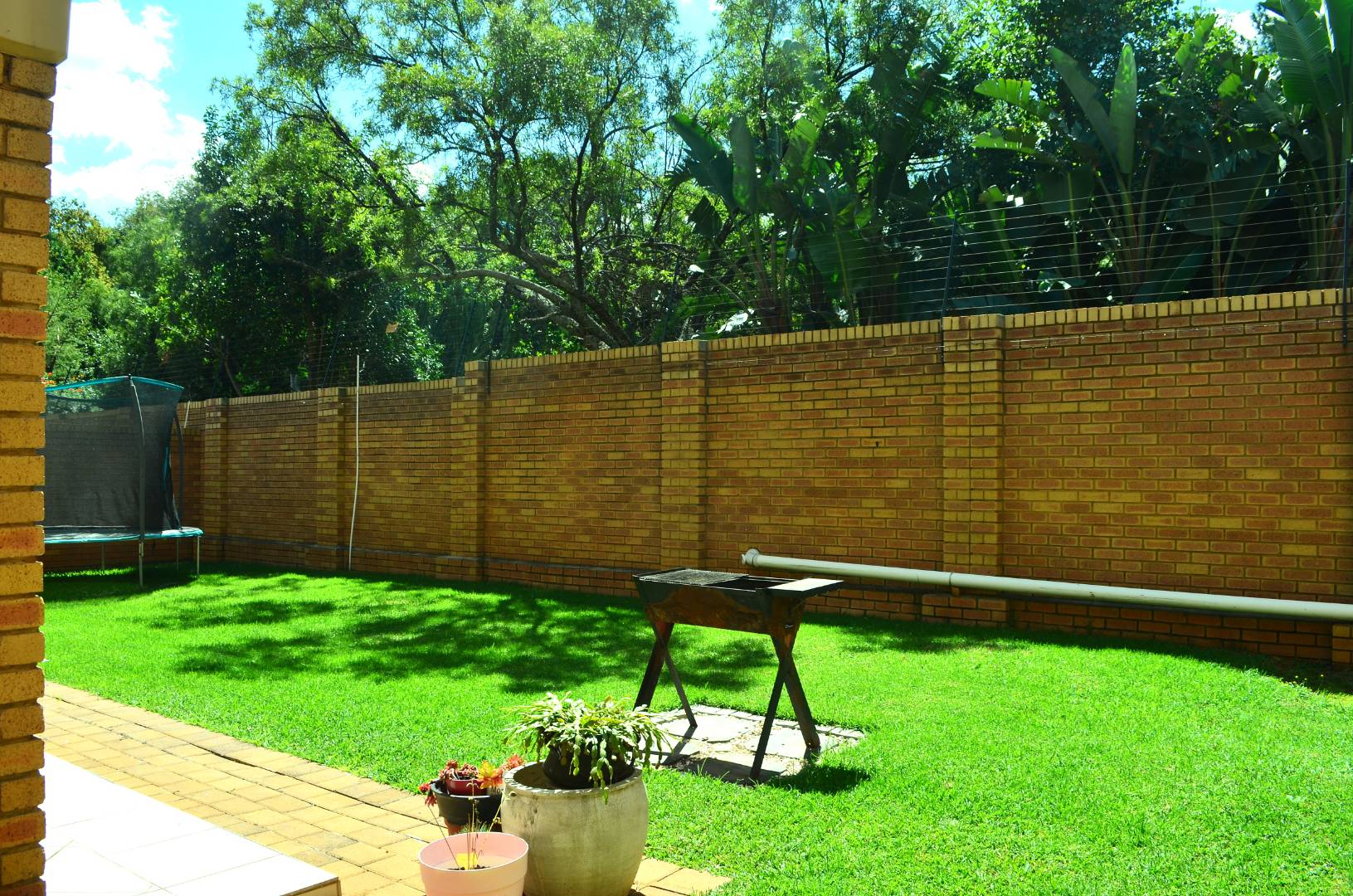 Sliding doors, enhanced with security doors, lead out to a well-sized garden and an undercover patio featuring a built-in braai—perfect for entertaining and relaxed outdoor living. Additional features include a double garage with electric motors, ensuring secure and convenient access for residents.