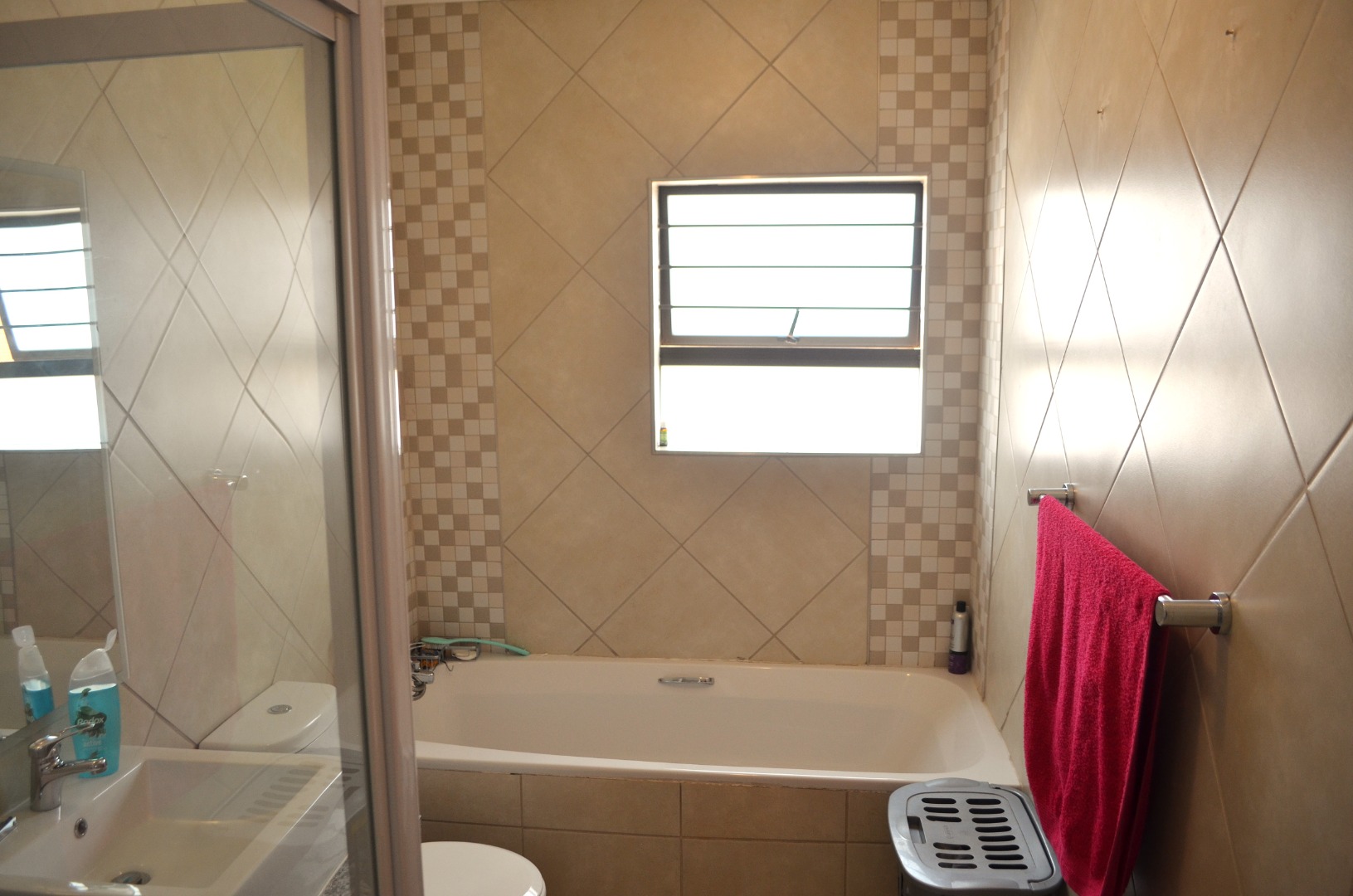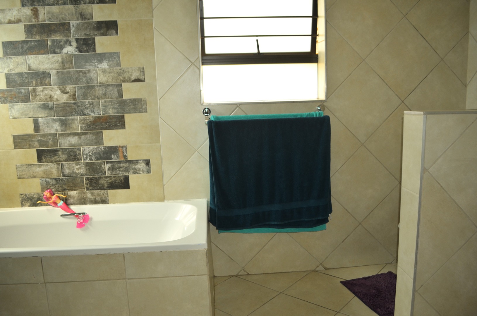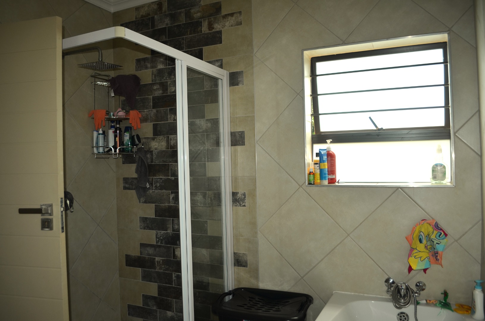 Sliding doors, enhanced with security doors, lead out to a well-sized garden and an undercover patio featuring a built-in braai—perfect for entertaining and relaxed outdoor living. Additional features include a double garage with electric motors, ensuring secure and convenient access for residents.