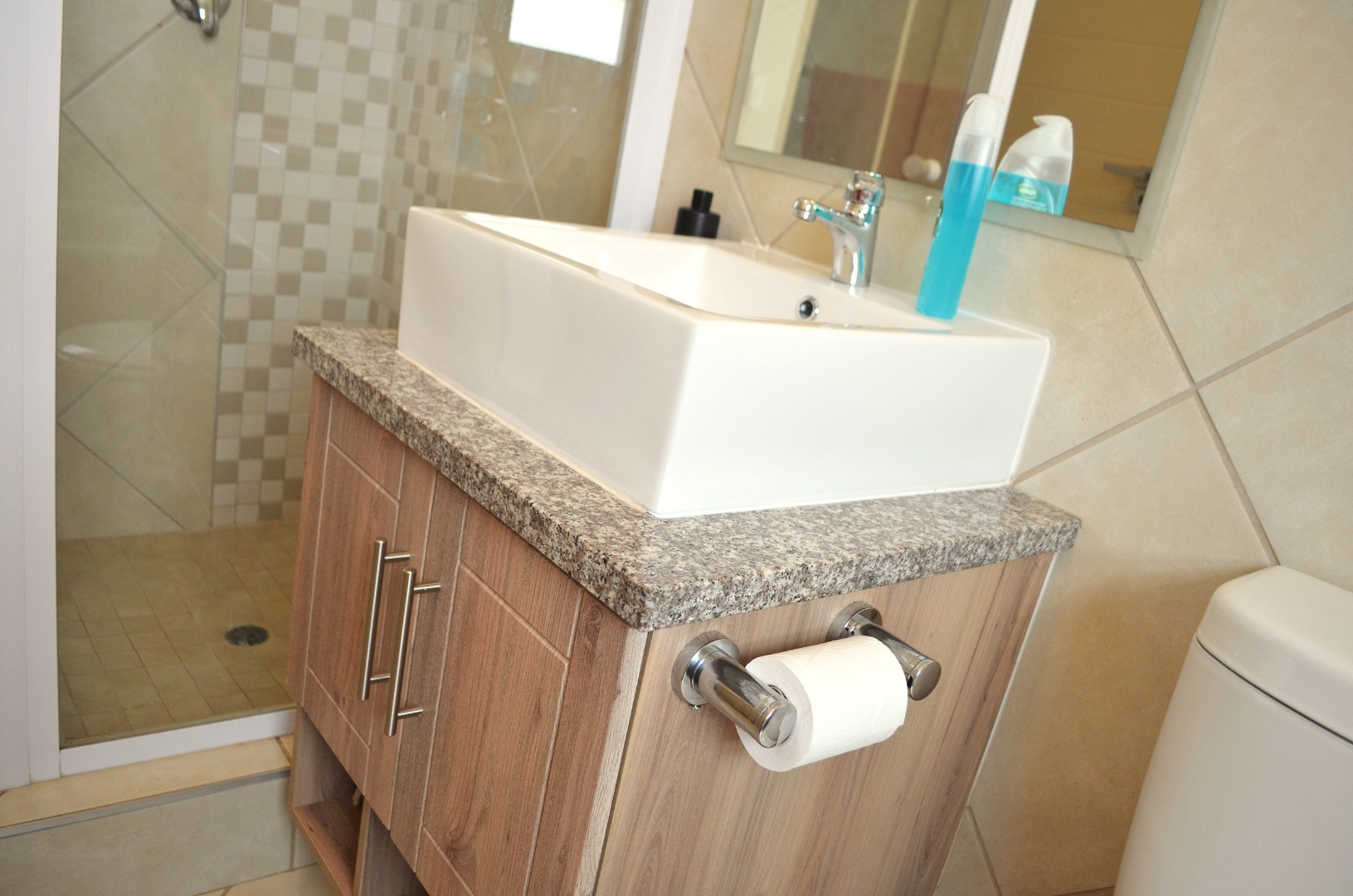 Downstairs, the home opens into a seamless open-plan layout, comprising a welcoming living and dining area that flows effortlessly into the well-equipped kitchen. The kitchen is a highlight, featuring a breakfast nook, a separate scullery, a spacious pantry cupboard, and elegant granite countertops. A convenient guest bathroom and a large storage cupboard neatly tucked under the staircase complete this level. The property benefits from being light-drenched, creating a bright and inviting atmosphere throughout.