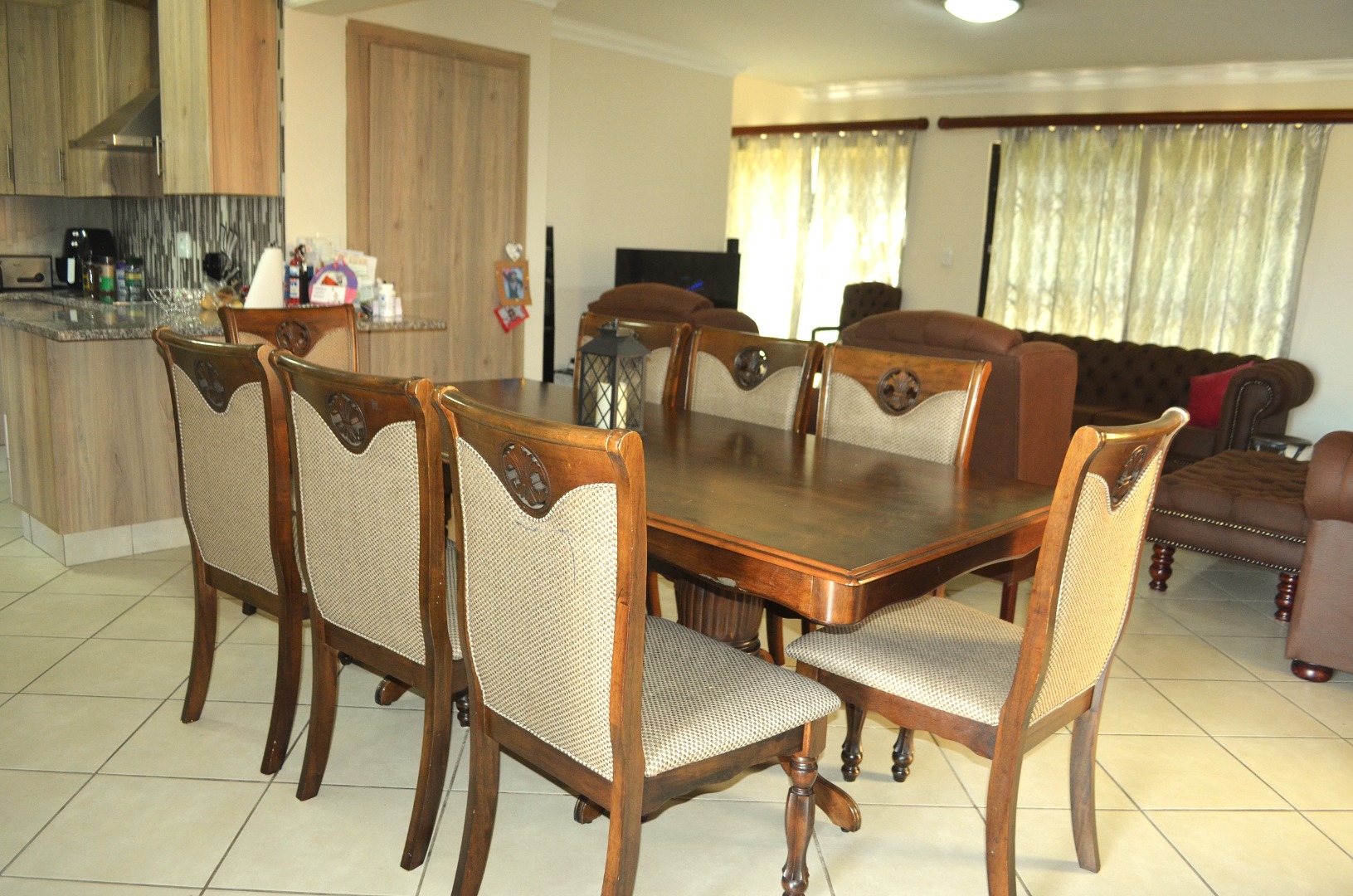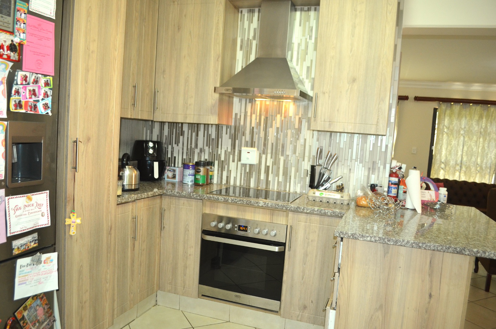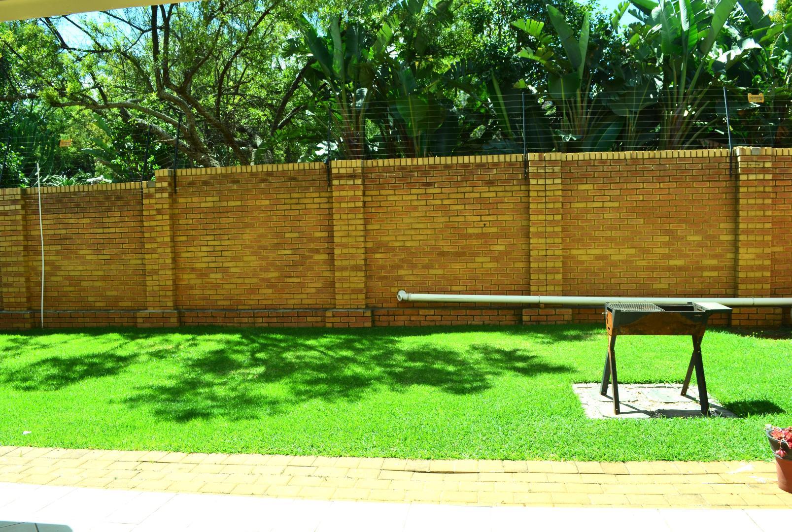 Sliding doors, enhanced with security doors, lead out to a well-sized garden and an undercover patio featuring a built-in braai—perfect for entertaining and relaxed outdoor living. Additional features include a double garage with electric motors, ensuring secure and convenient access for residents.