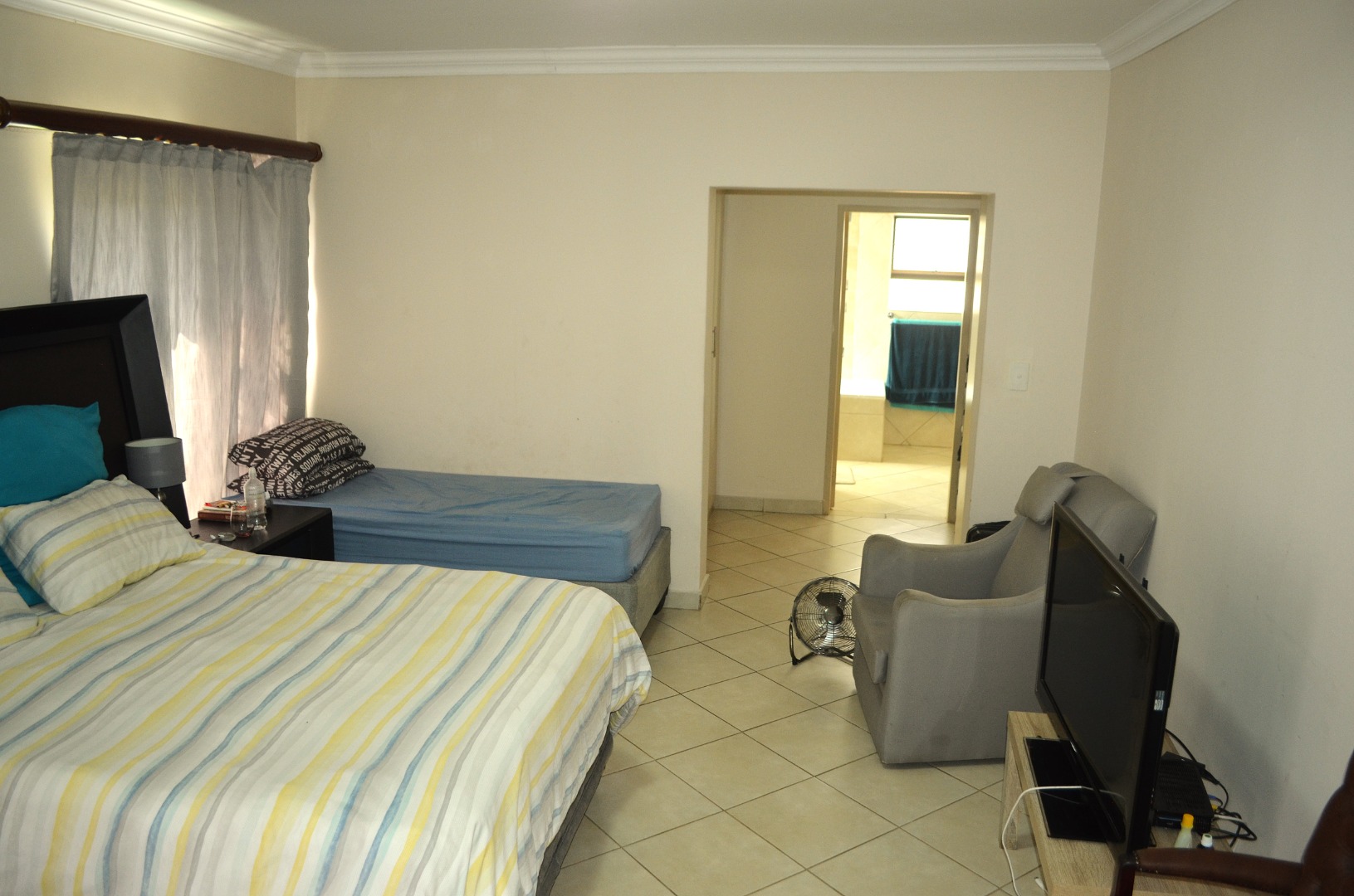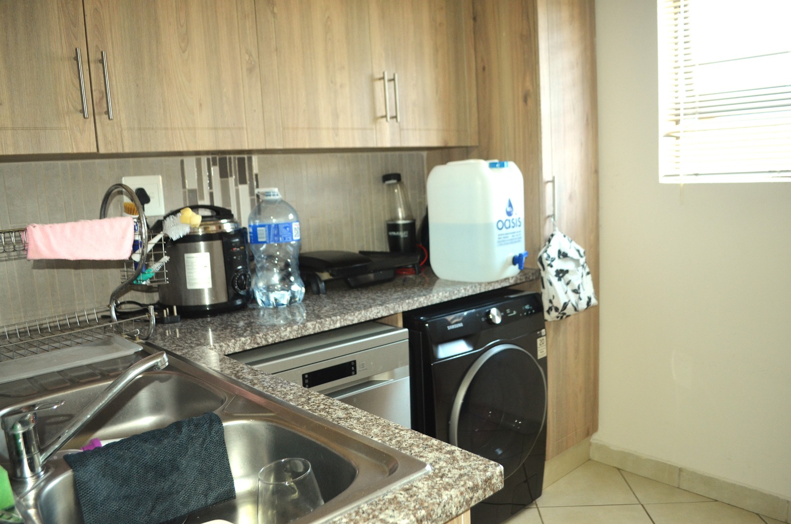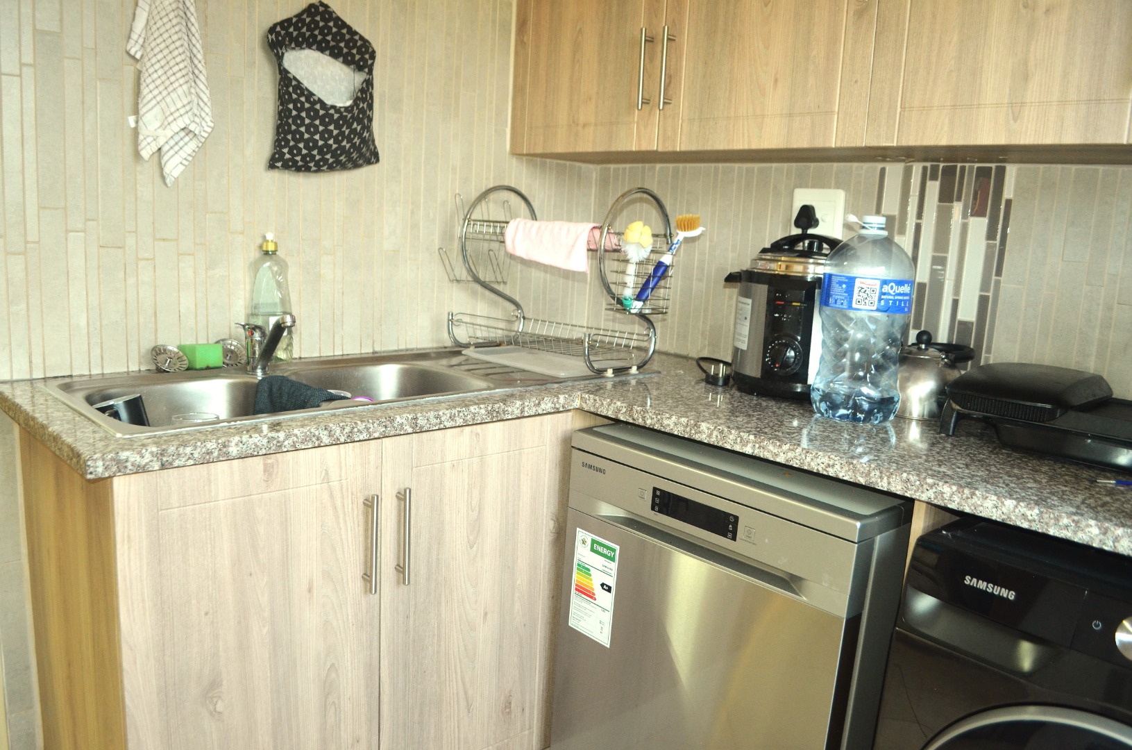 Sliding doors, enhanced with security doors, lead out to a well-sized garden and an undercover patio featuring a built-in braai—perfect for entertaining and relaxed outdoor living. Additional features include a double garage with electric motors, ensuring secure and convenient access for residents.
