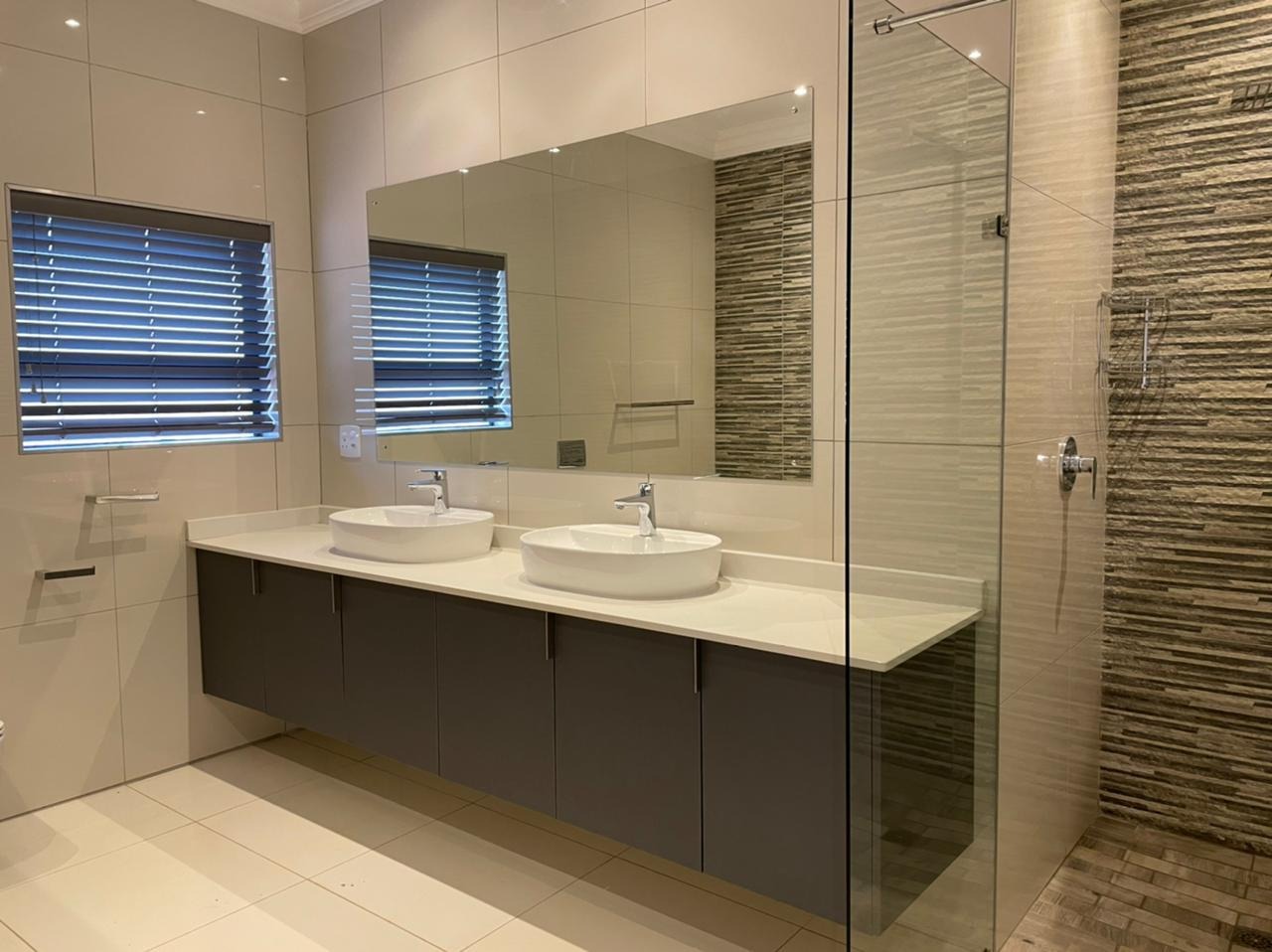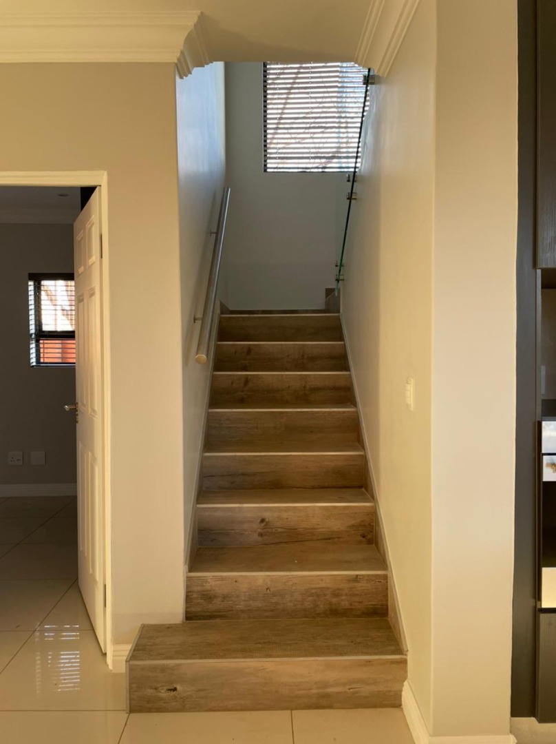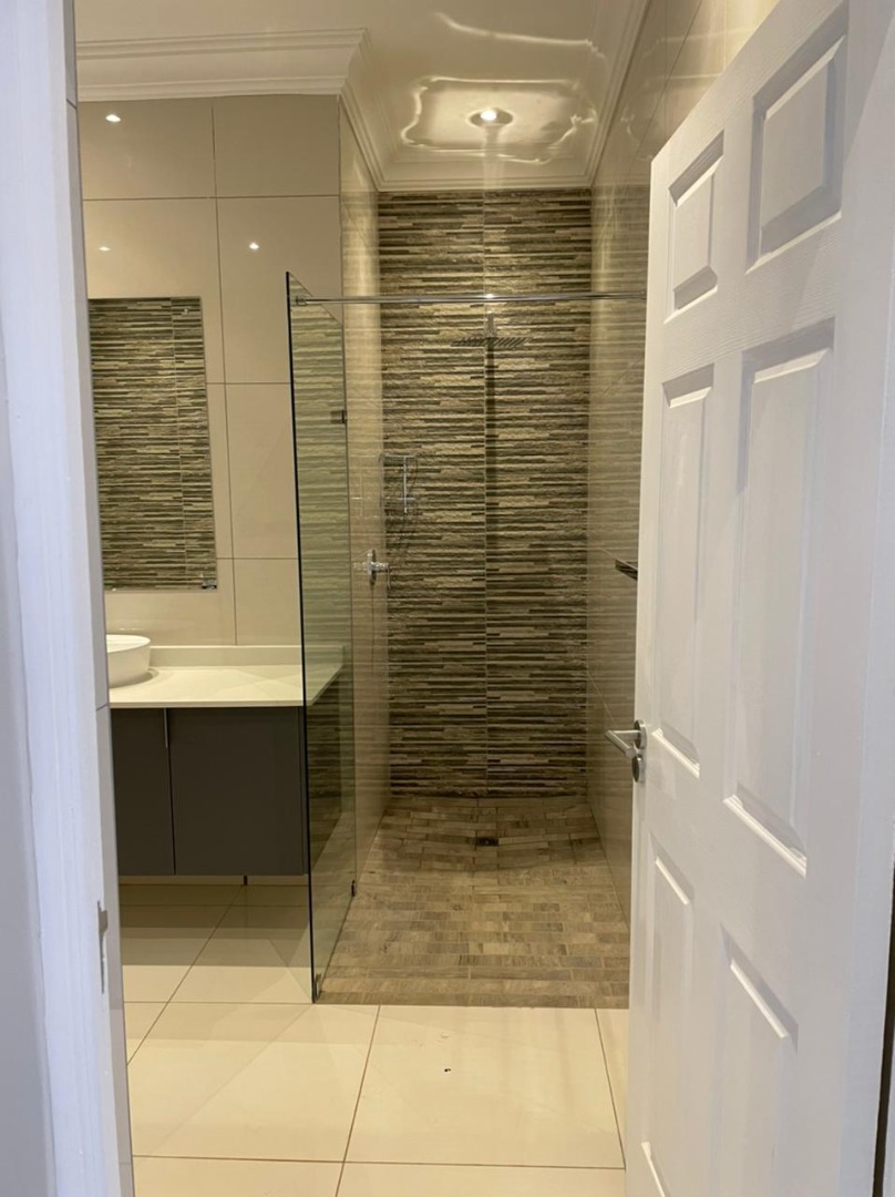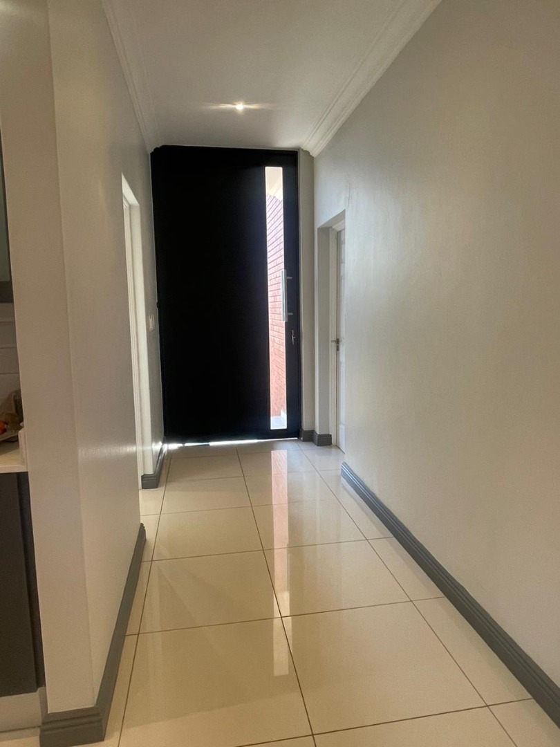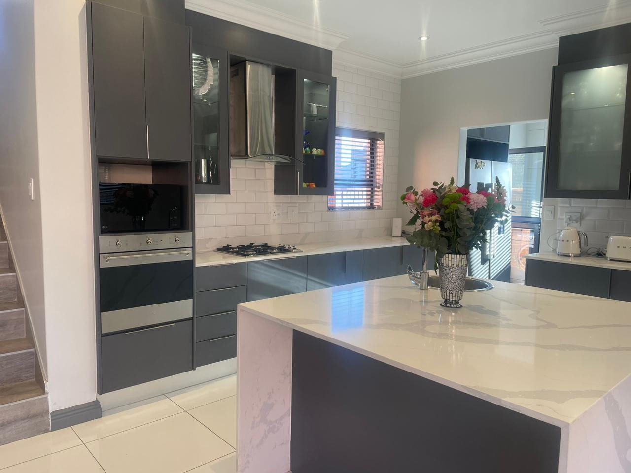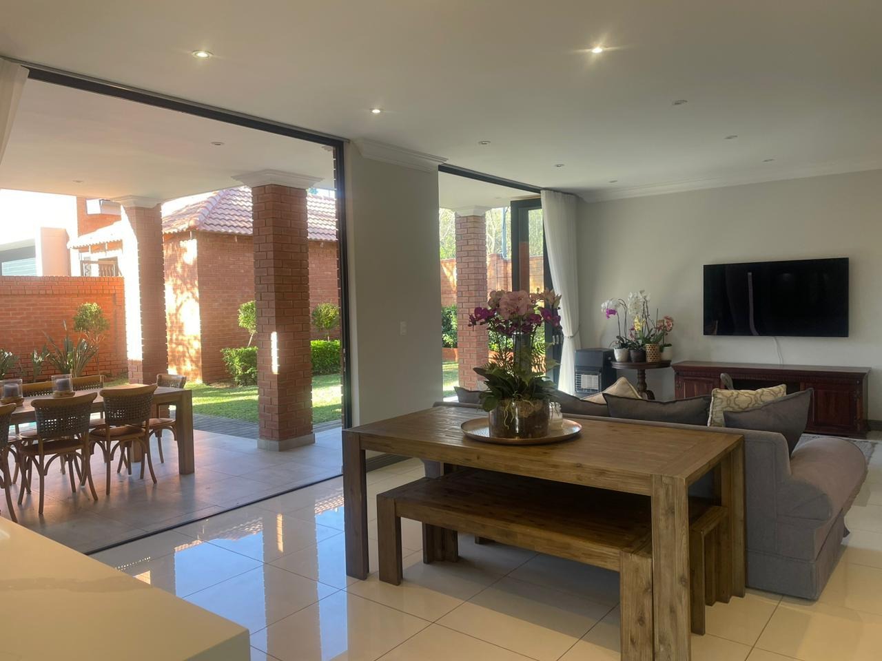 Outside, the home truly comes to life with a covered patio featuring a built-in braai, overlooking a sparkling swimming pool and neat garden—an ideal setting for entertaining or unwinding after a long day. Completing the home is a double garage with direct access, rounding off a property that combines luxury, functionality, and location in one impressive package.