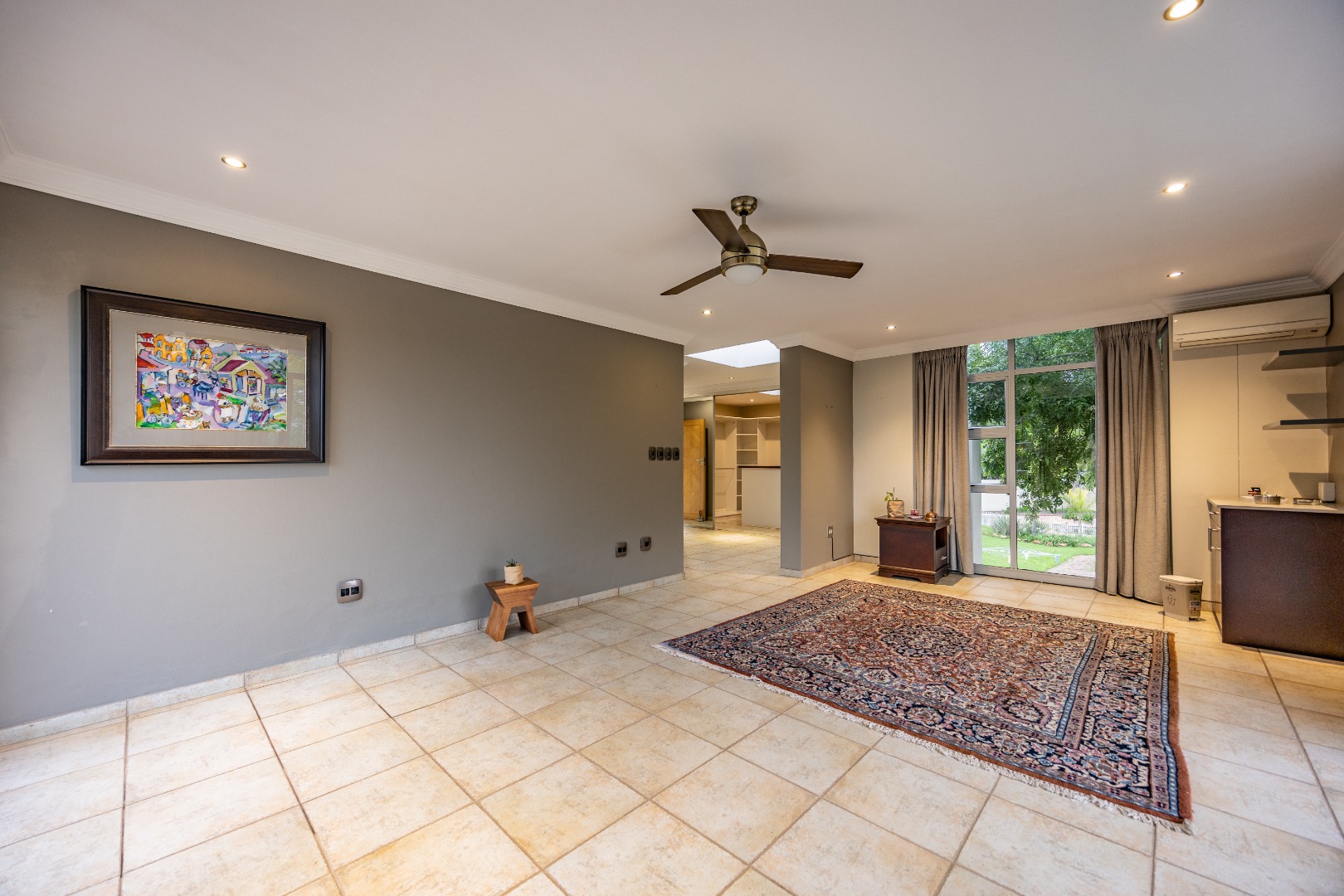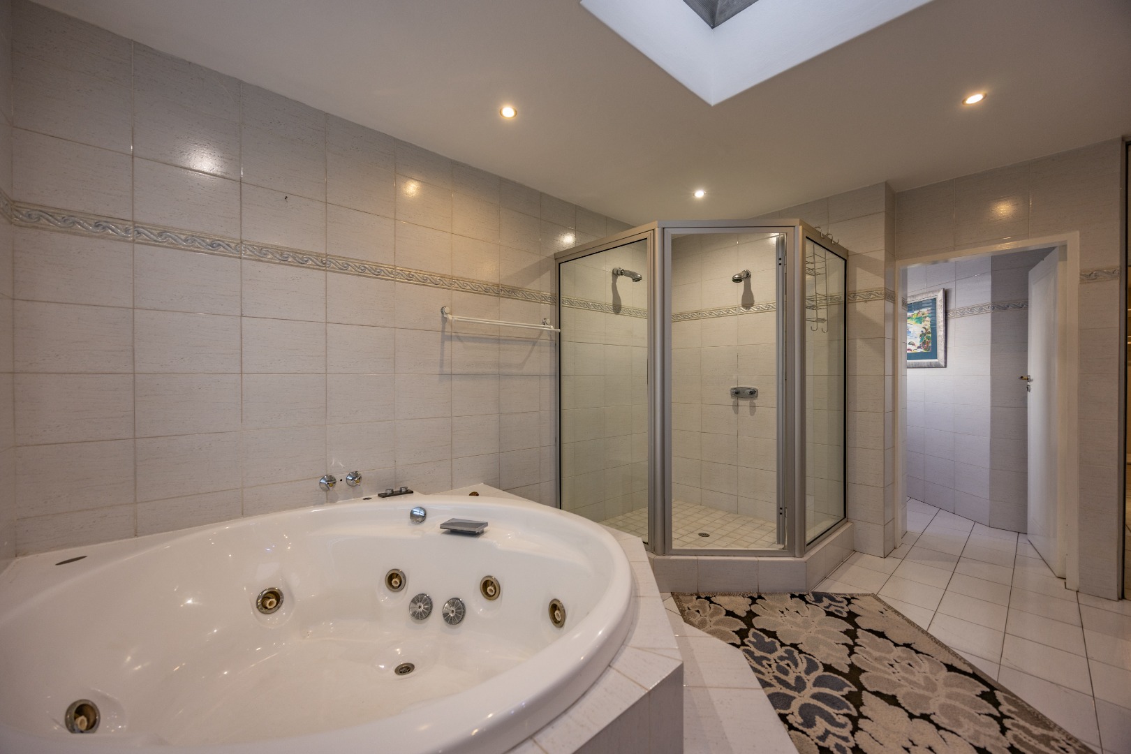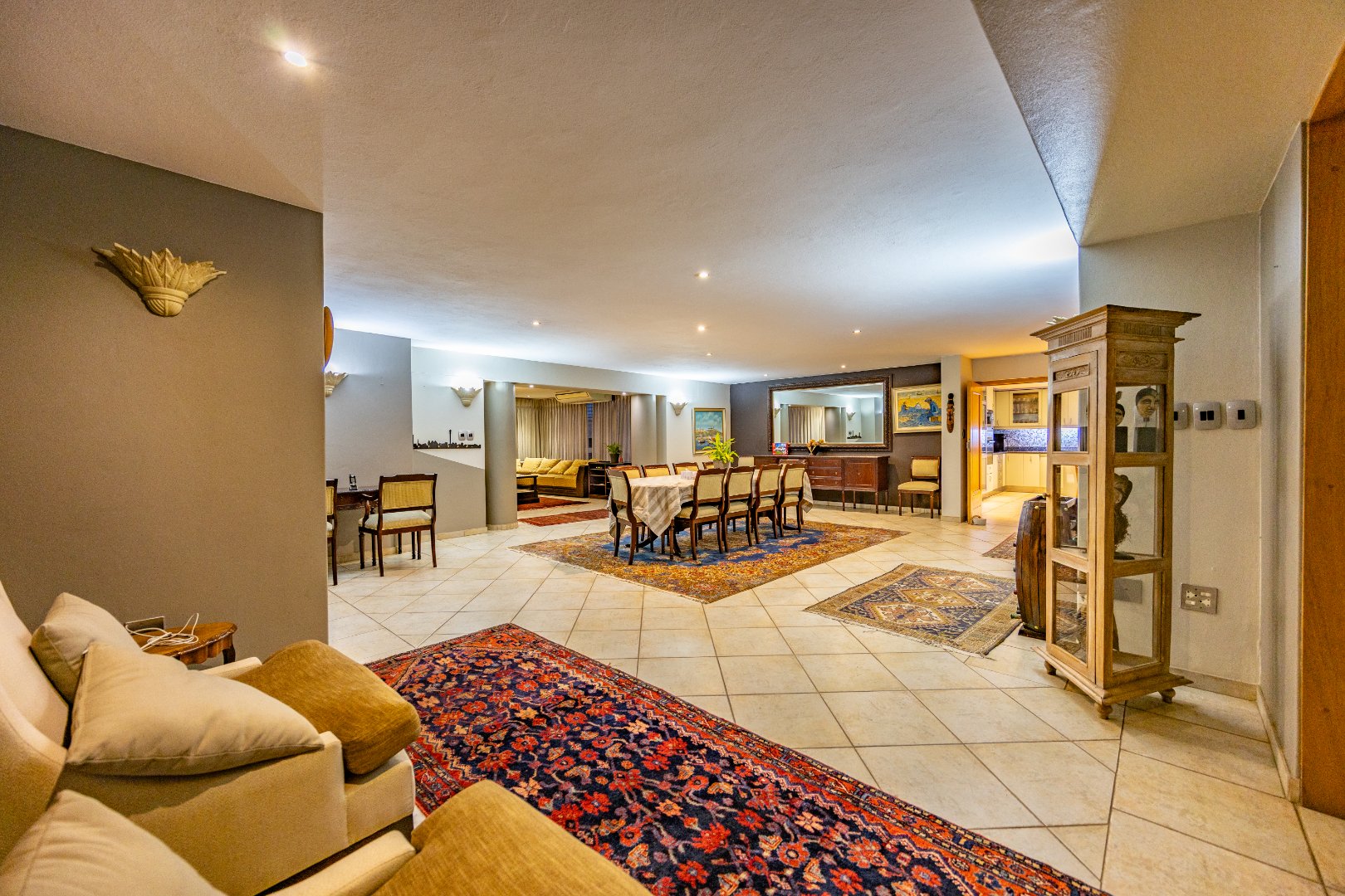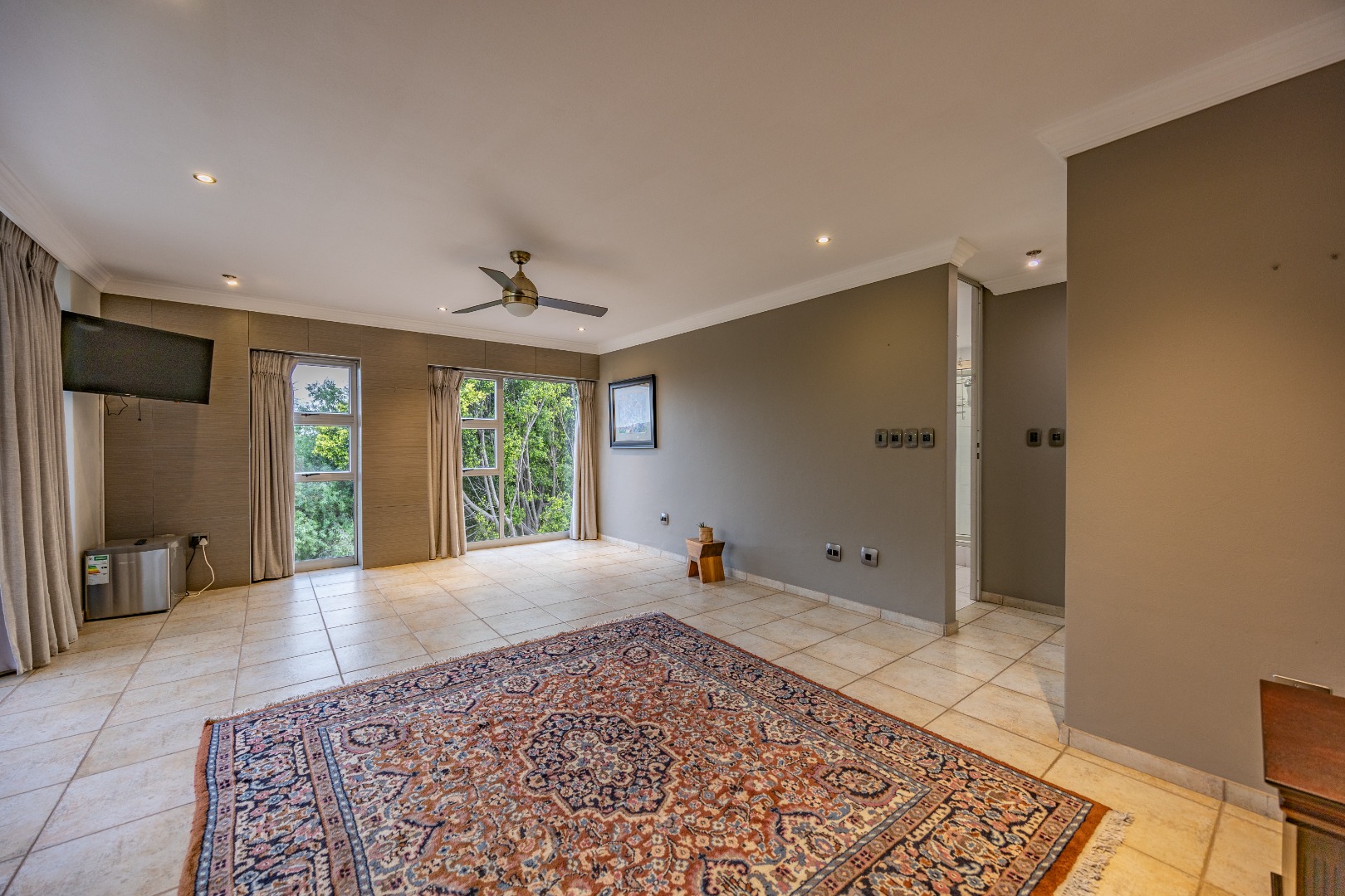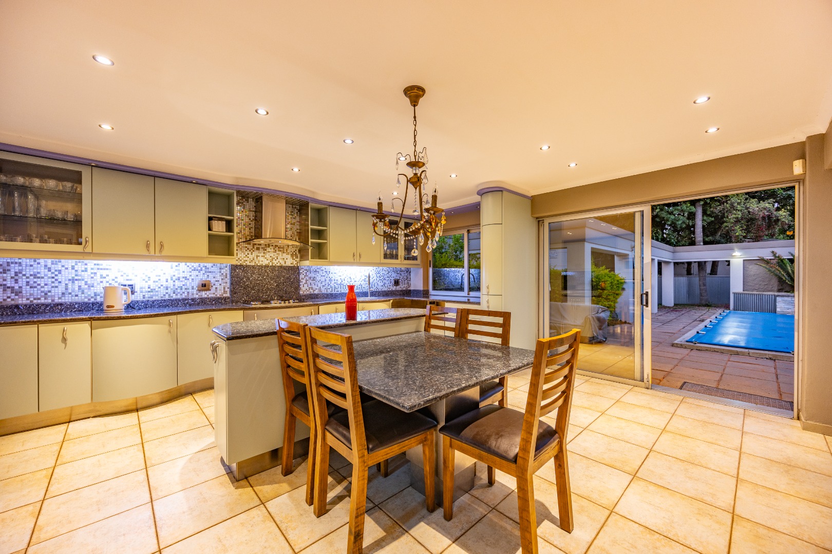 This expansive Waterkloof Ridge residence is designed for effortless living and entertaining on a grand scale. A welcoming entrance hall leads into multiple living areas including a TV room with surround sound, air-conditioning, a private study, and a fully fitted bar. The dining room flows seamlessly into a covered entertainment area with a gas braai and stack doors, creating a perfect indoor–outdoor lifestyle. Generous proportions, clean lines, and quality finishes set the tone throughout.