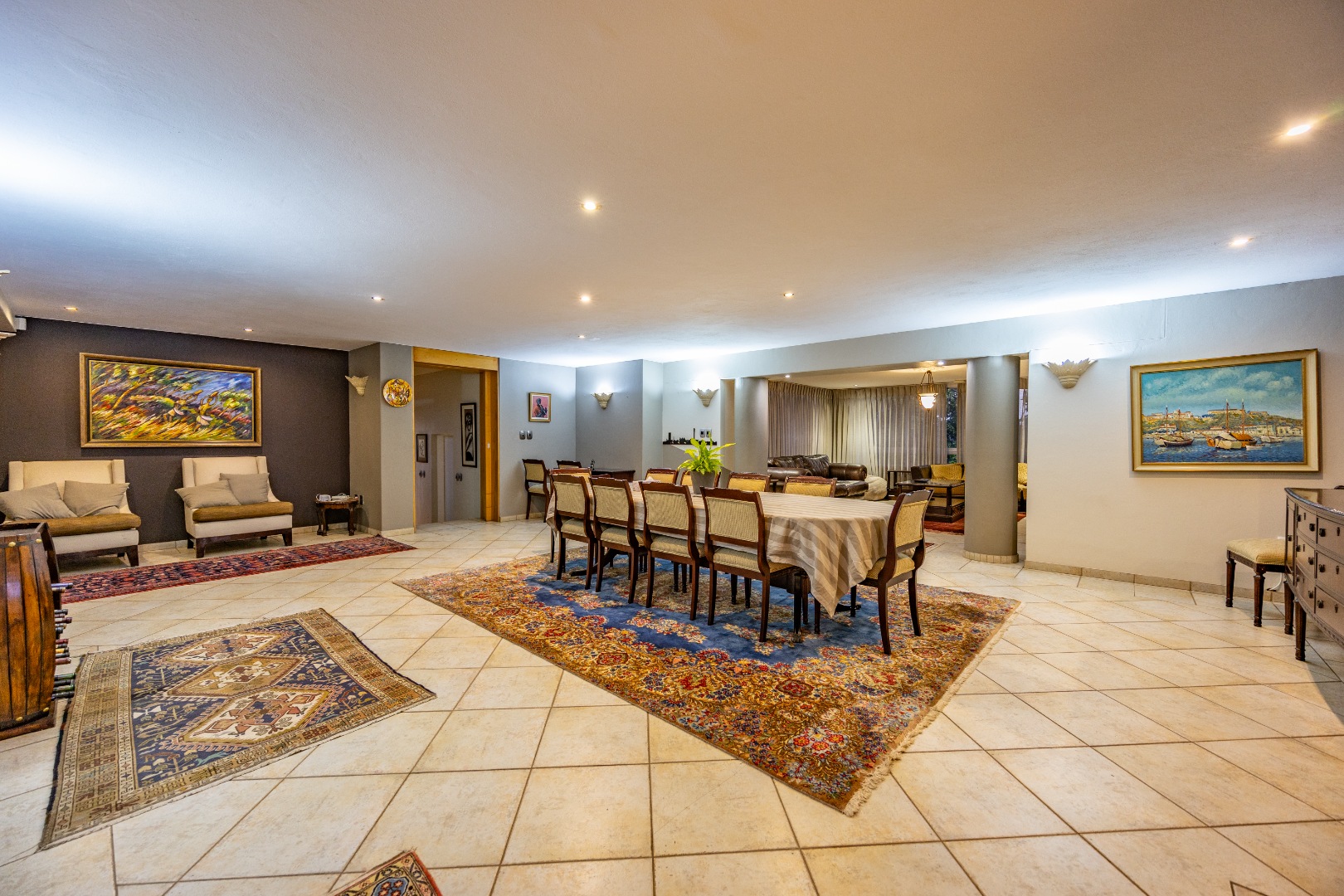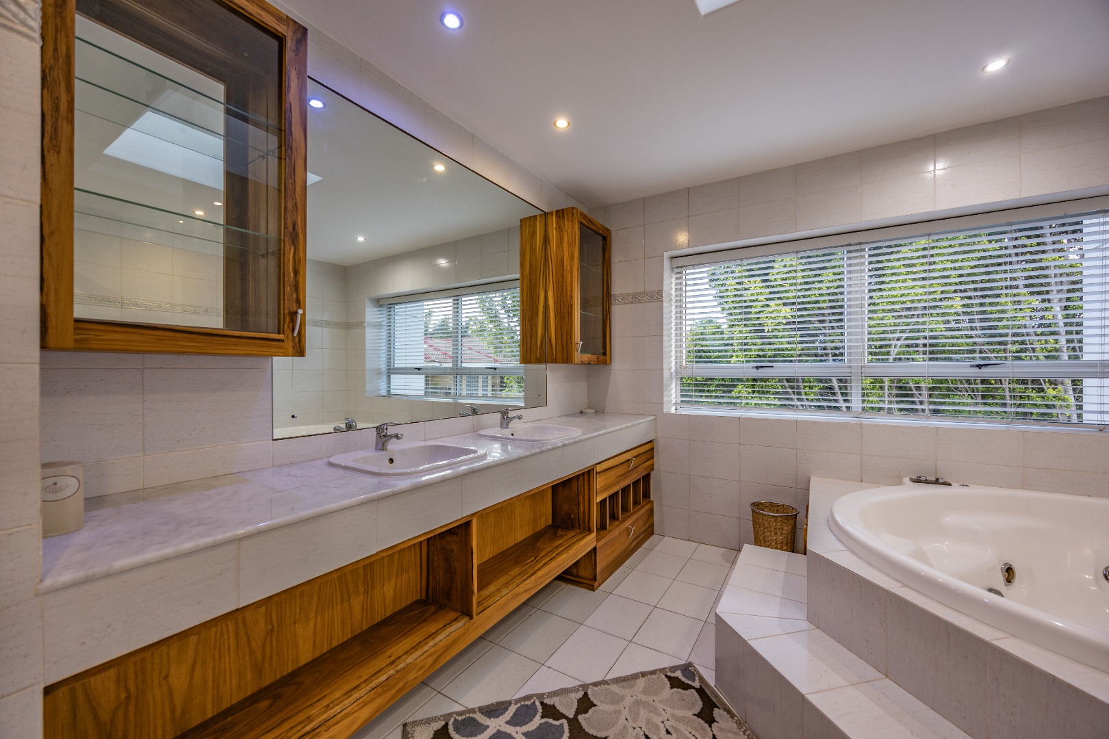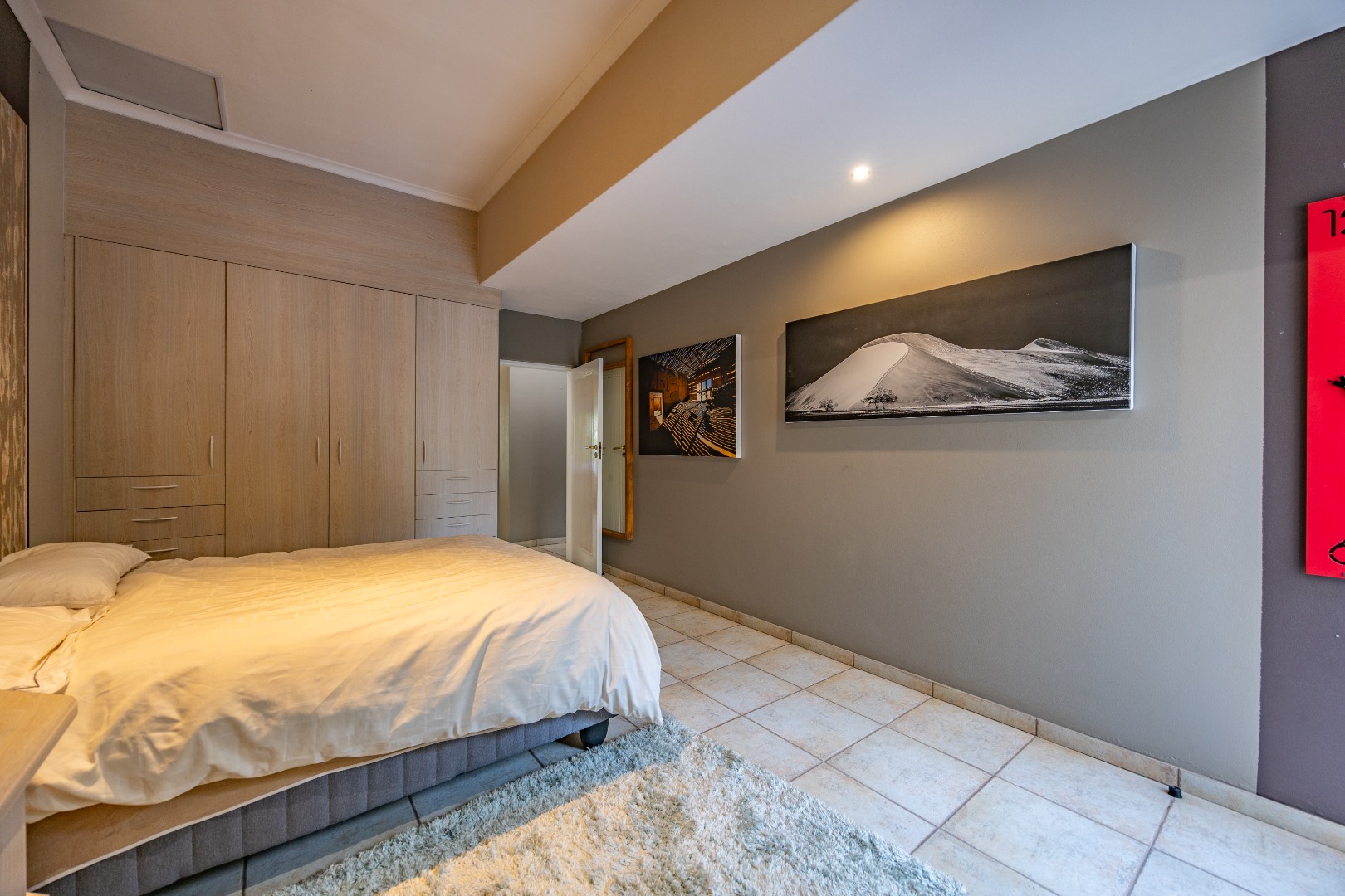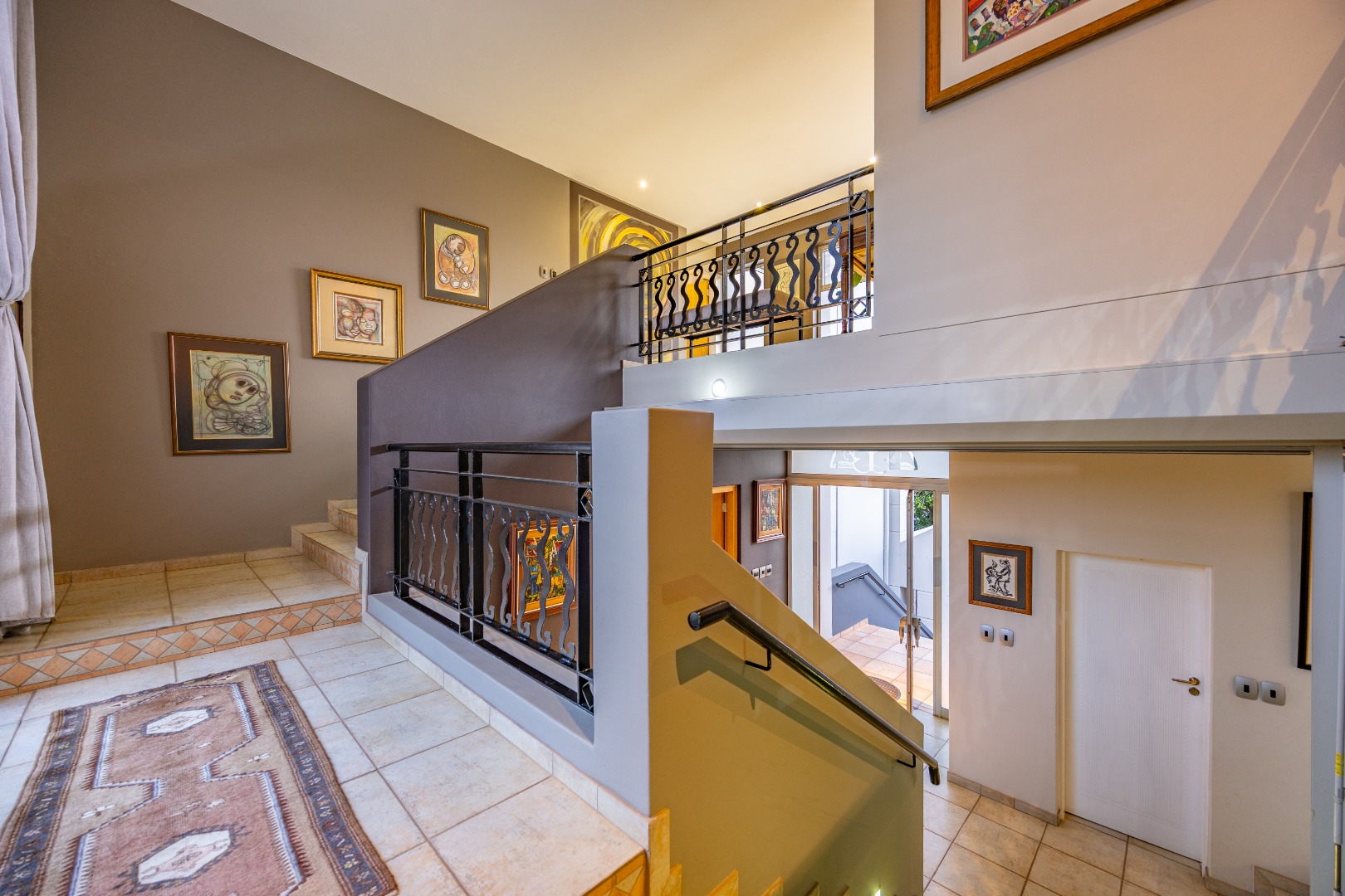 This expansive Waterkloof Ridge residence is designed for effortless living and entertaining on a grand scale. A welcoming entrance hall leads into multiple living areas including a TV room with surround sound, air-conditioning, a private study, and a fully fitted bar. The dining room flows seamlessly into a covered entertainment area with a gas braai and stack doors, creating a perfect indoor–outdoor lifestyle. Generous proportions, clean lines, and quality finishes set the tone throughout.