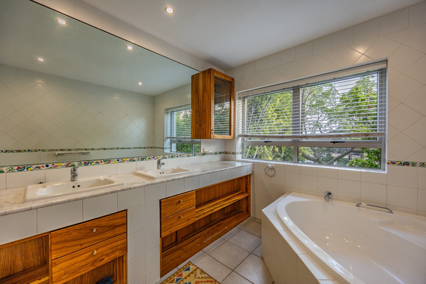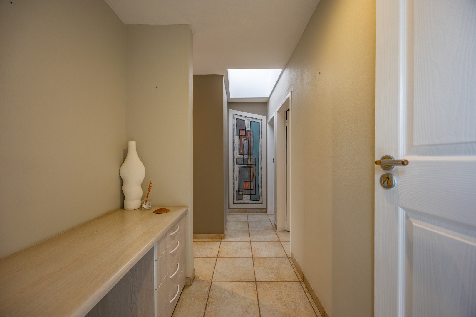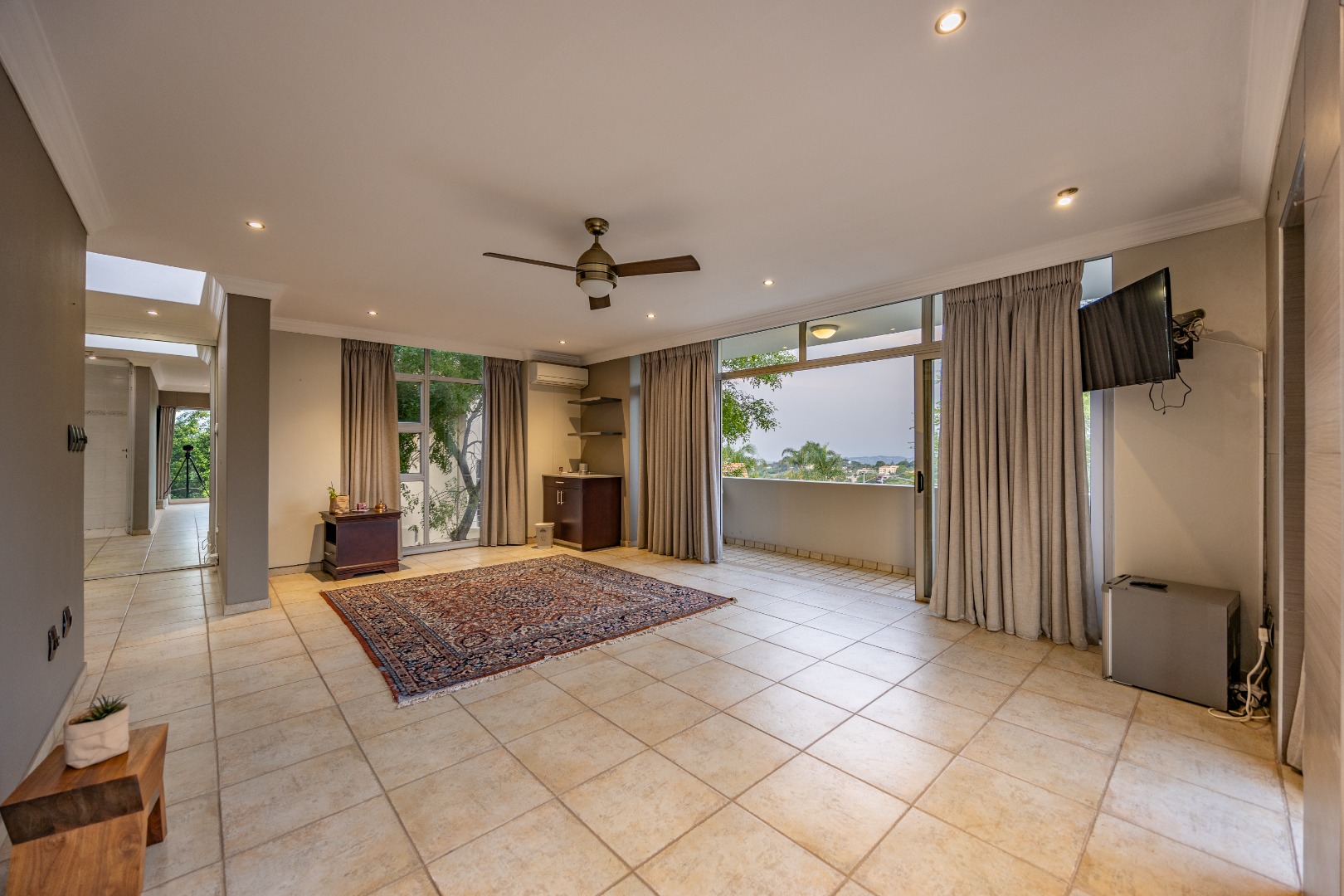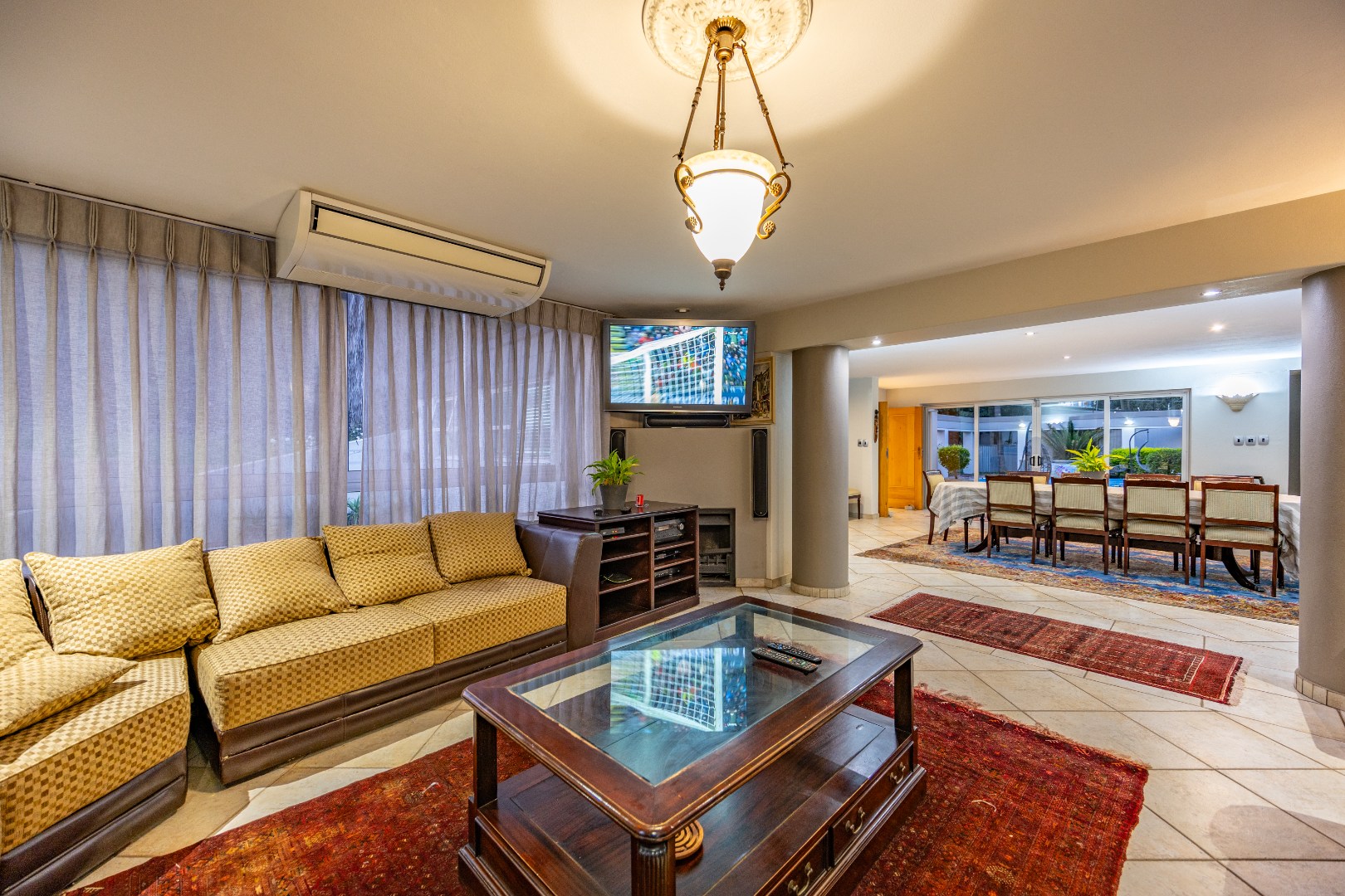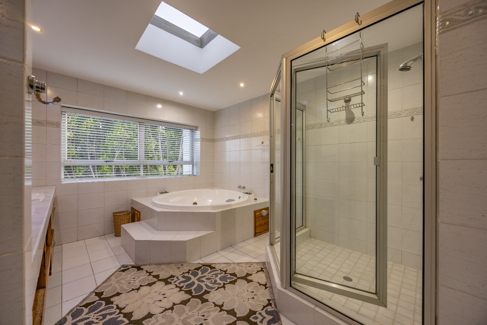 This expansive Waterkloof Ridge residence is designed for effortless living and entertaining on a grand scale. A welcoming entrance hall leads into multiple living areas including a TV room with surround sound, air-conditioning, a private study, and a fully fitted bar. The dining room flows seamlessly into a covered entertainment area with a gas braai and stack doors, creating a perfect indoor–outdoor lifestyle. Generous proportions, clean lines, and quality finishes set the tone throughout.