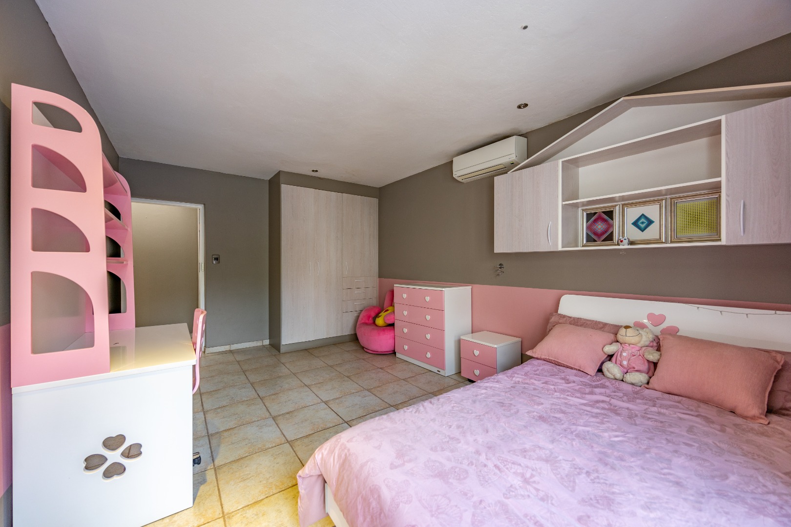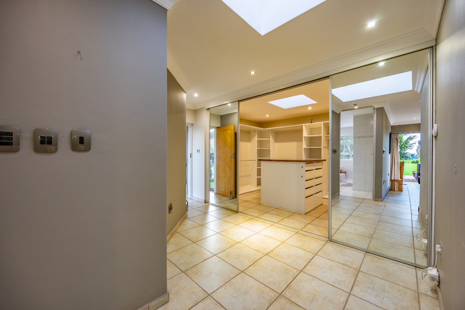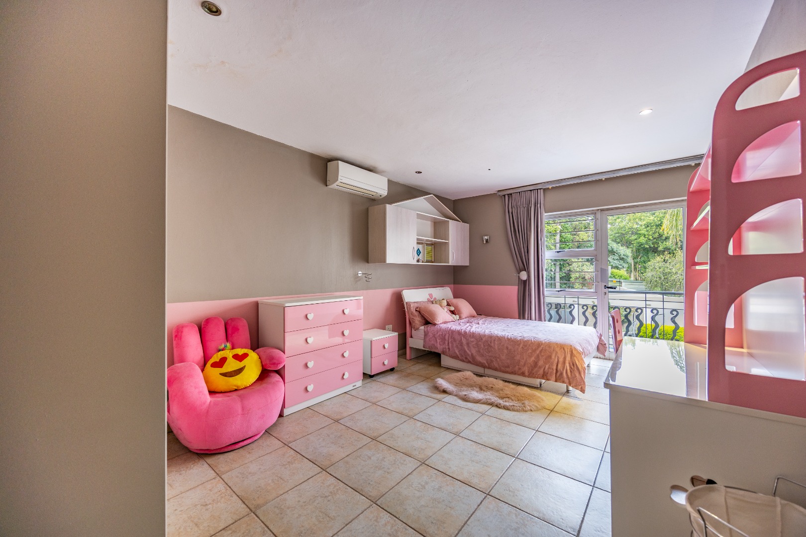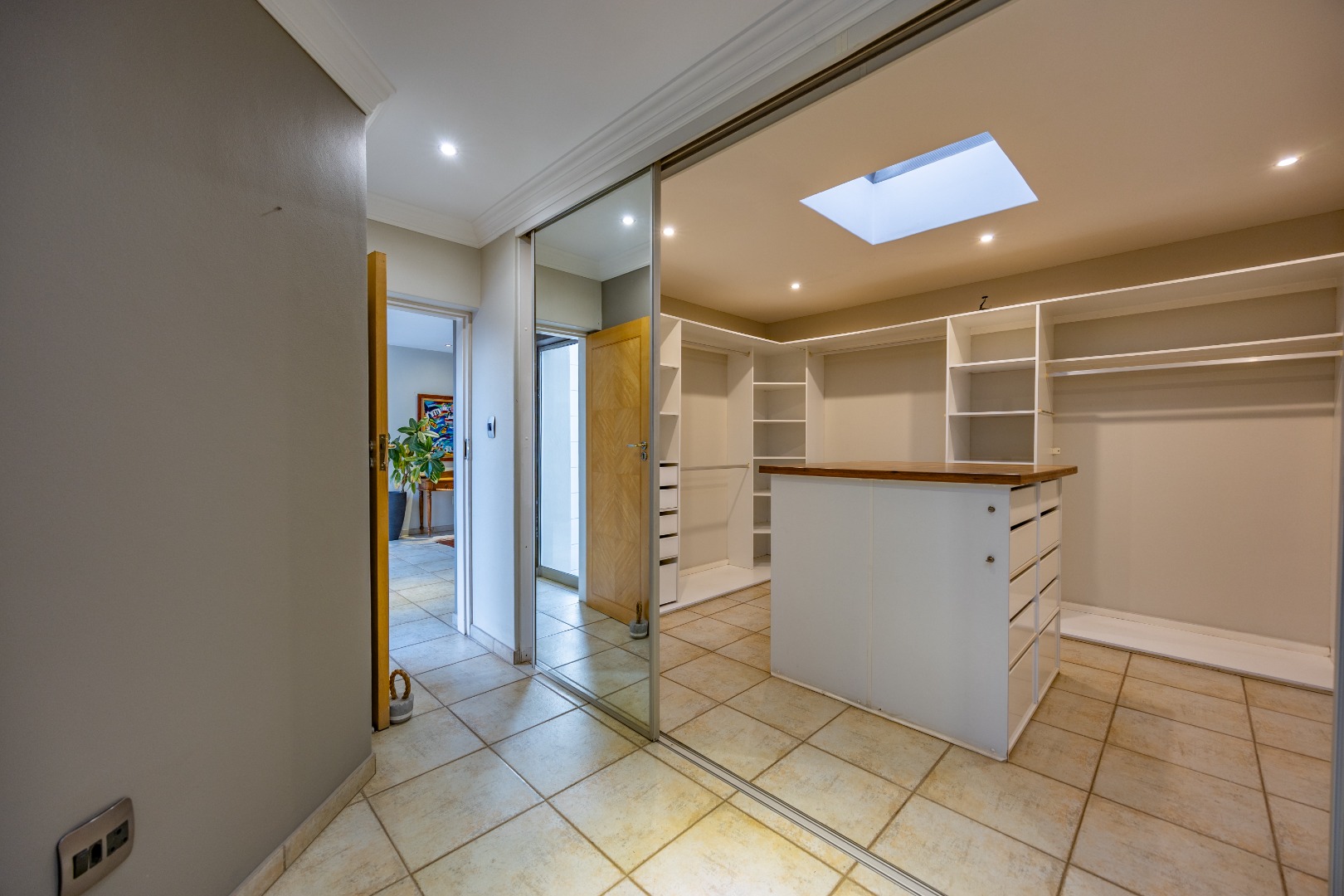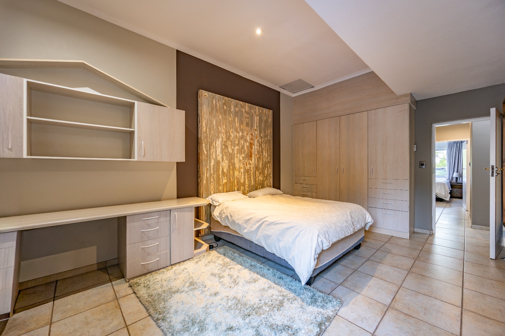 Upstairs offers a relaxed pyjama lounge and four well-sized bedrooms. Three bedrooms share two luxurious bathrooms—one with a shower and one with a bath—both finished with marble countertops and double basins. The main suite is truly impressive, boasting a large en-suite bathroom with marble finishes and a walk-in closet that feels more boutique than bedroom. A rare rental opportunity in one of Pretoria’s most established and secure suburbs.