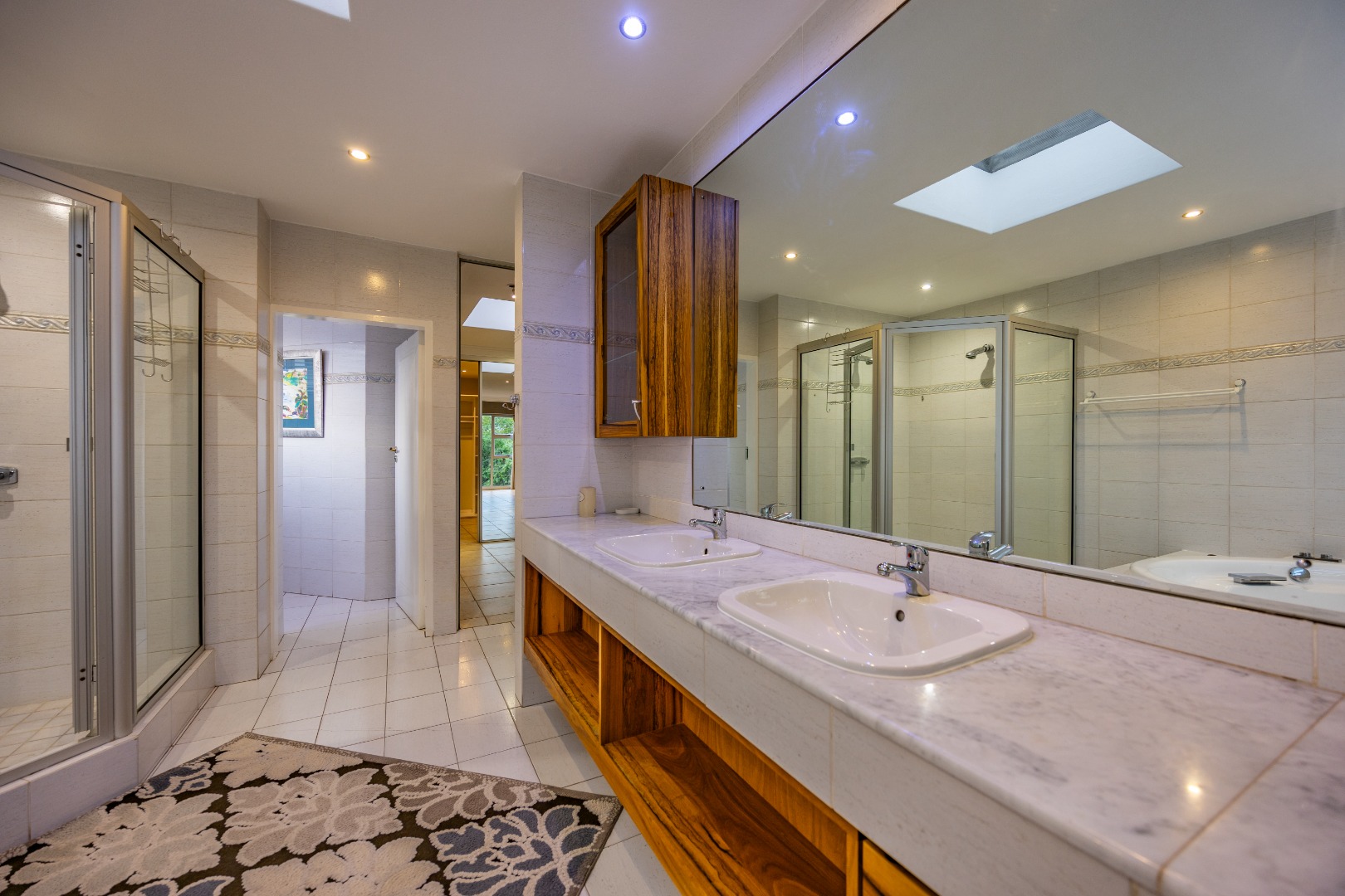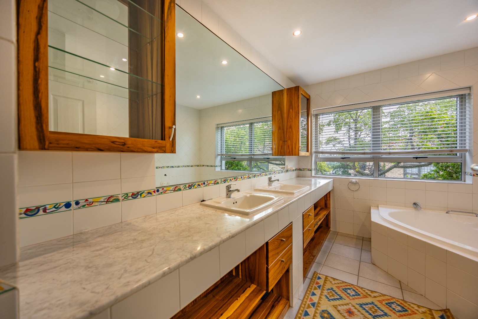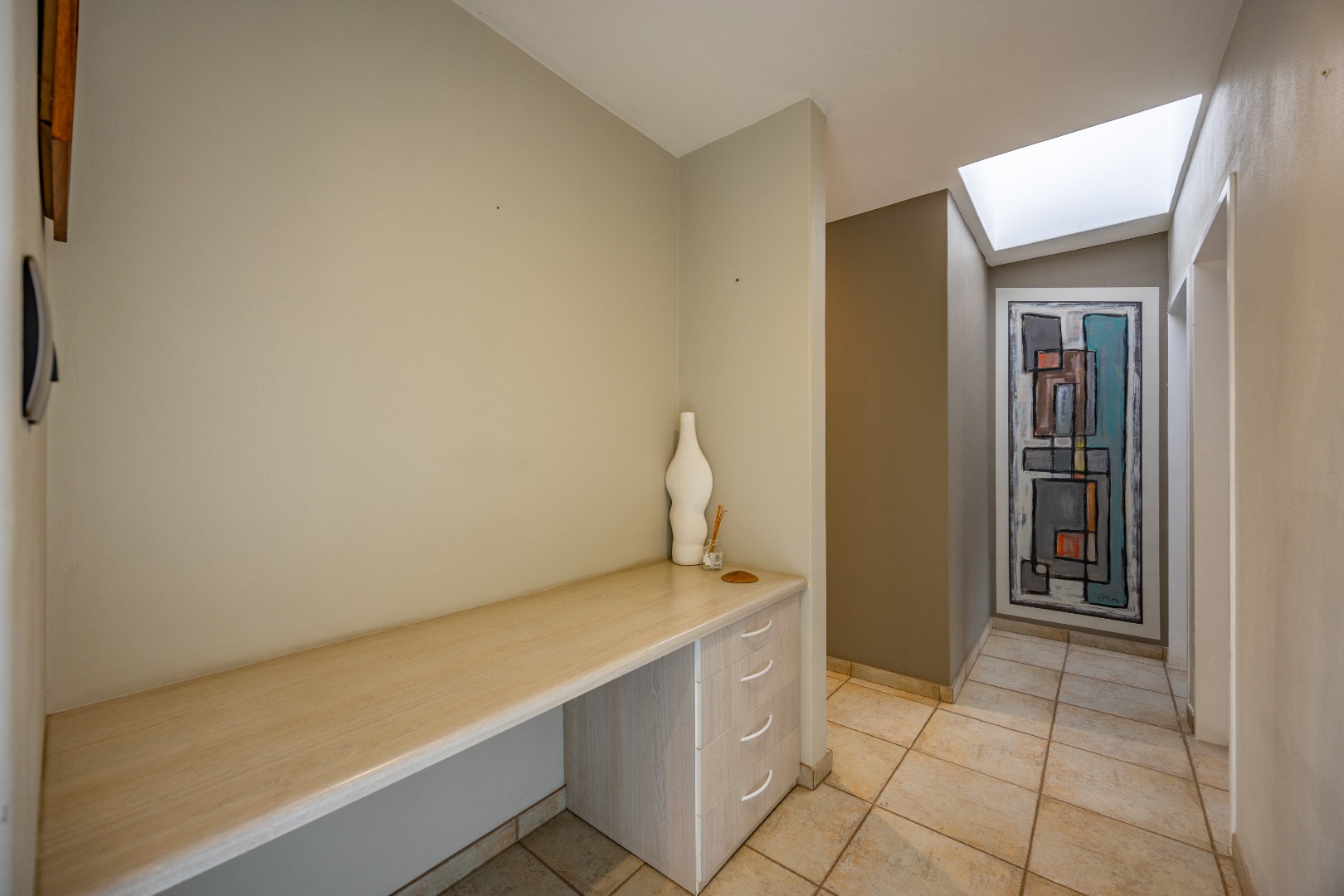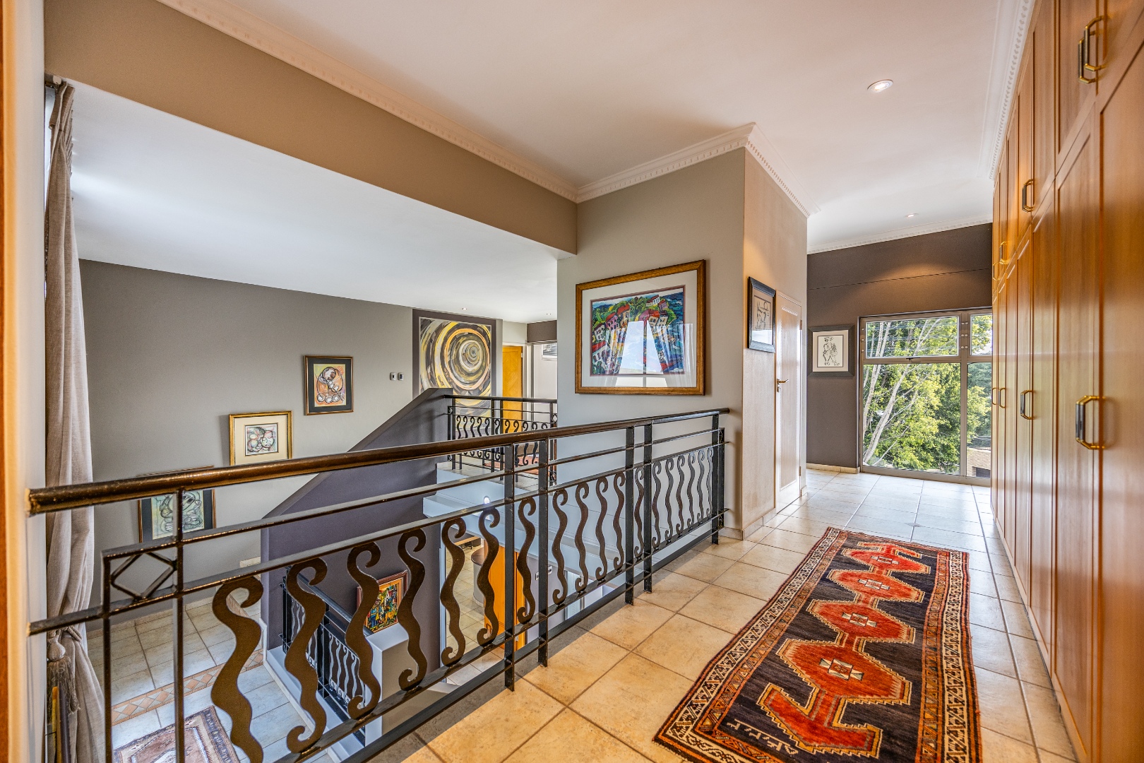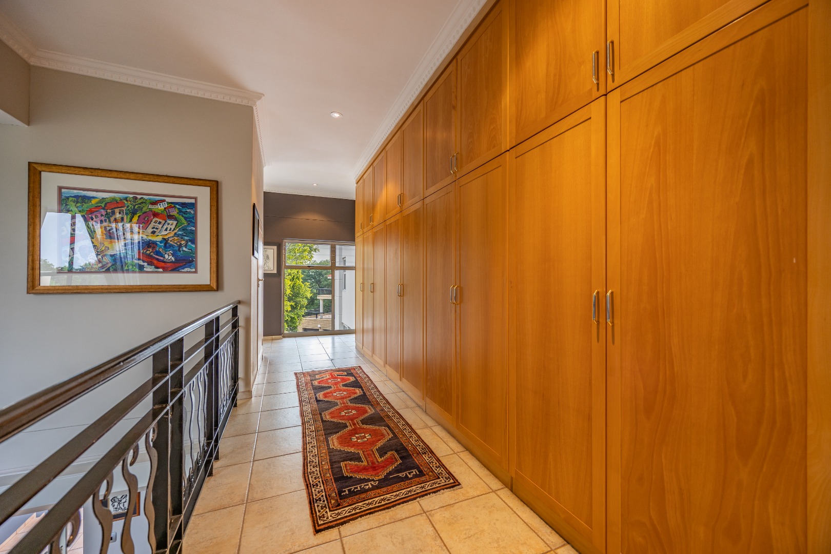 Upstairs offers a relaxed pyjama lounge and four well-sized bedrooms. Three bedrooms share two luxurious bathrooms—one with a shower and one with a bath—both finished with marble countertops and double basins. The main suite is truly impressive, boasting a large en-suite bathroom with marble finishes and a walk-in closet that feels more boutique than bedroom. A rare rental opportunity in one of Pretoria’s most established and secure suburbs.