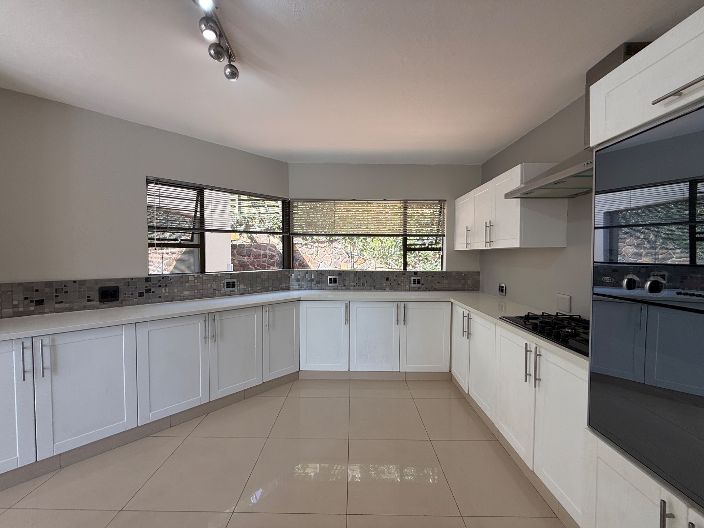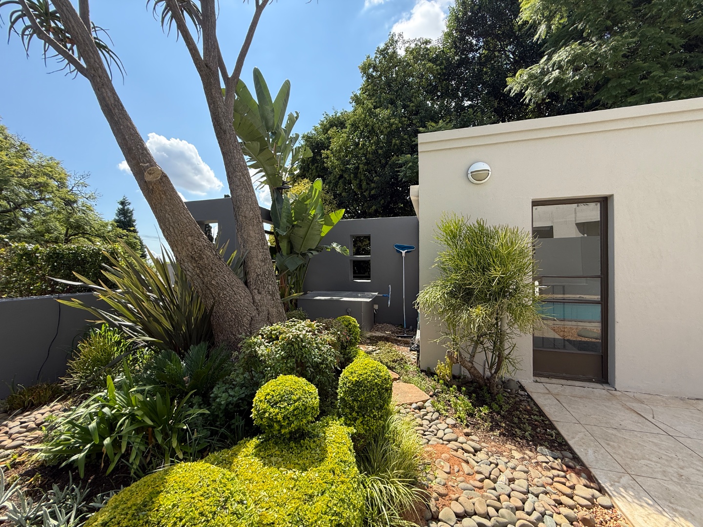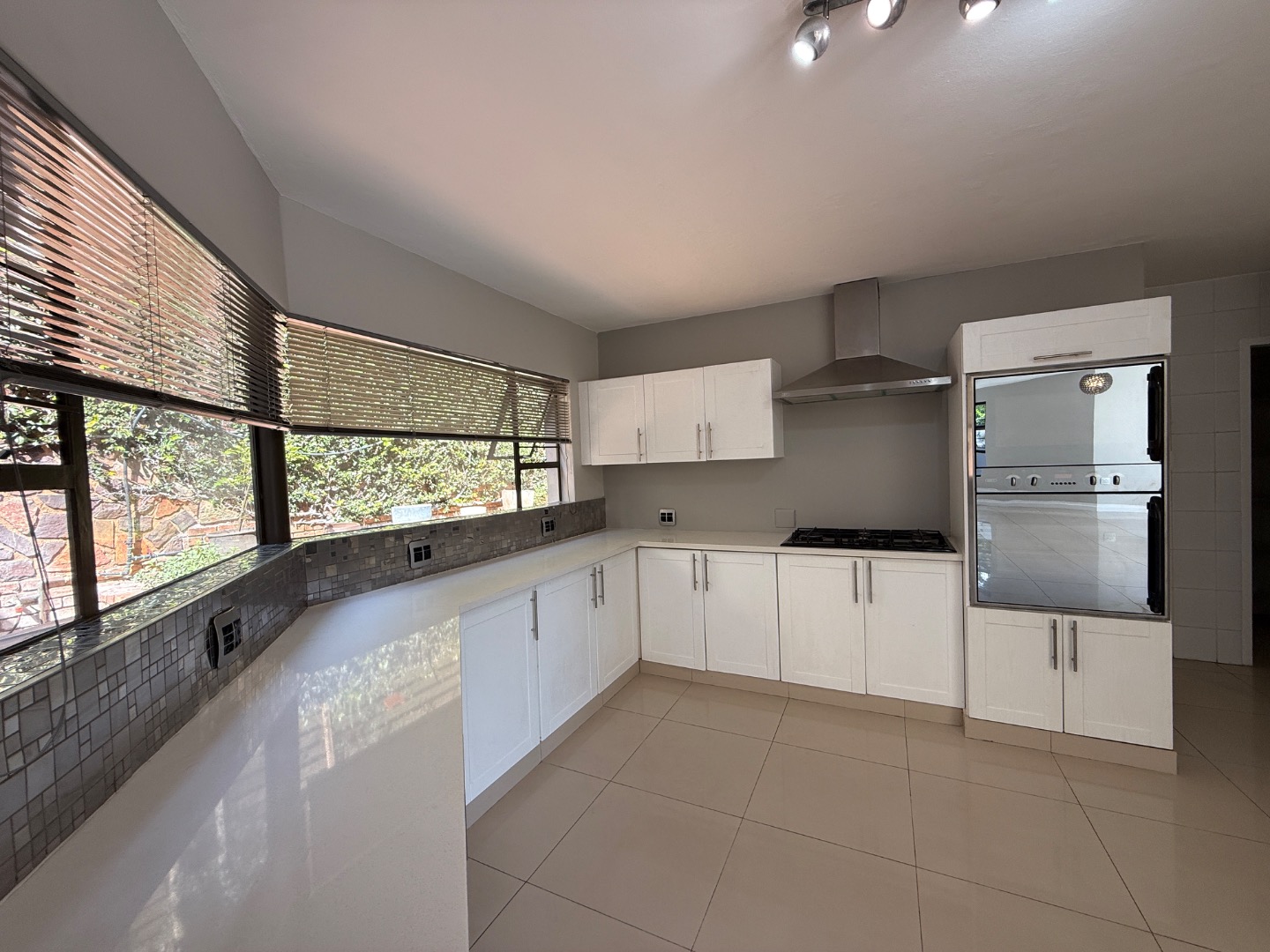 Accommodation includes four generously sized bedrooms and three modern bathrooms, one en-suite. Practical amenities further enhance the living experience, with dedicated staff quarters, domestic rooms, a separate laundry area, and ample storage.