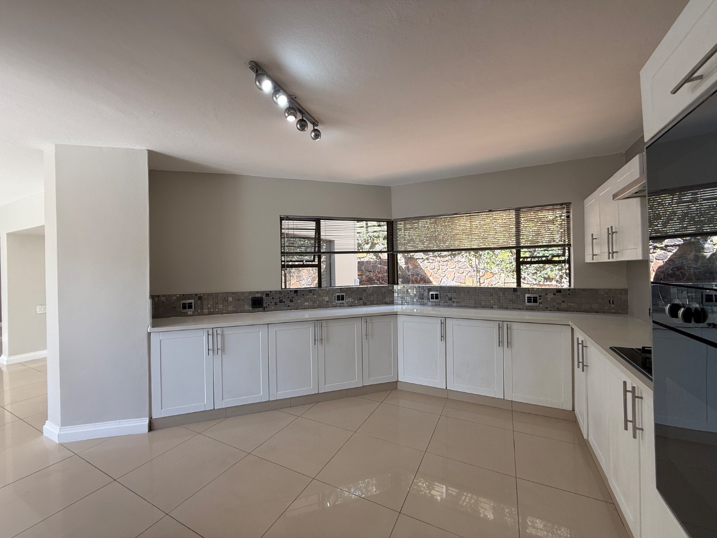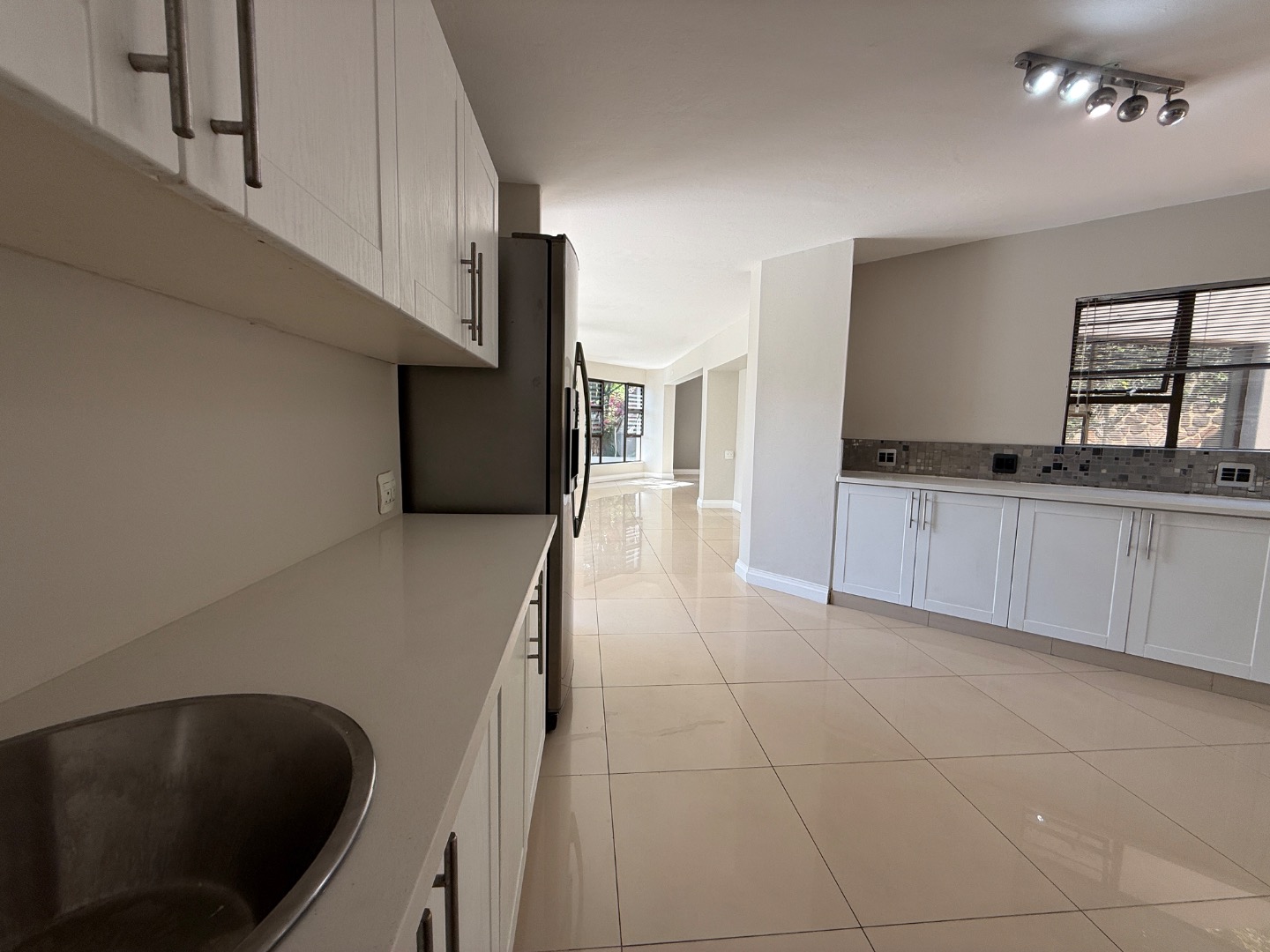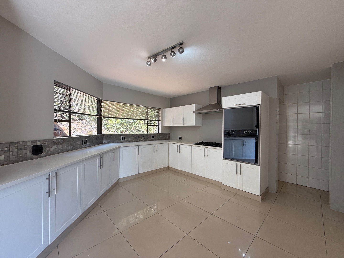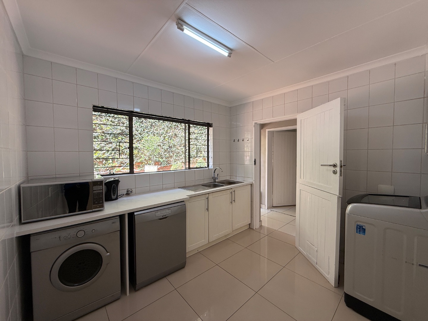 Accommodation includes four generously sized bedrooms and three modern bathrooms, one en-suite. Practical amenities further enhance the living experience, with dedicated staff quarters, domestic rooms, a separate laundry area, and ample storage.