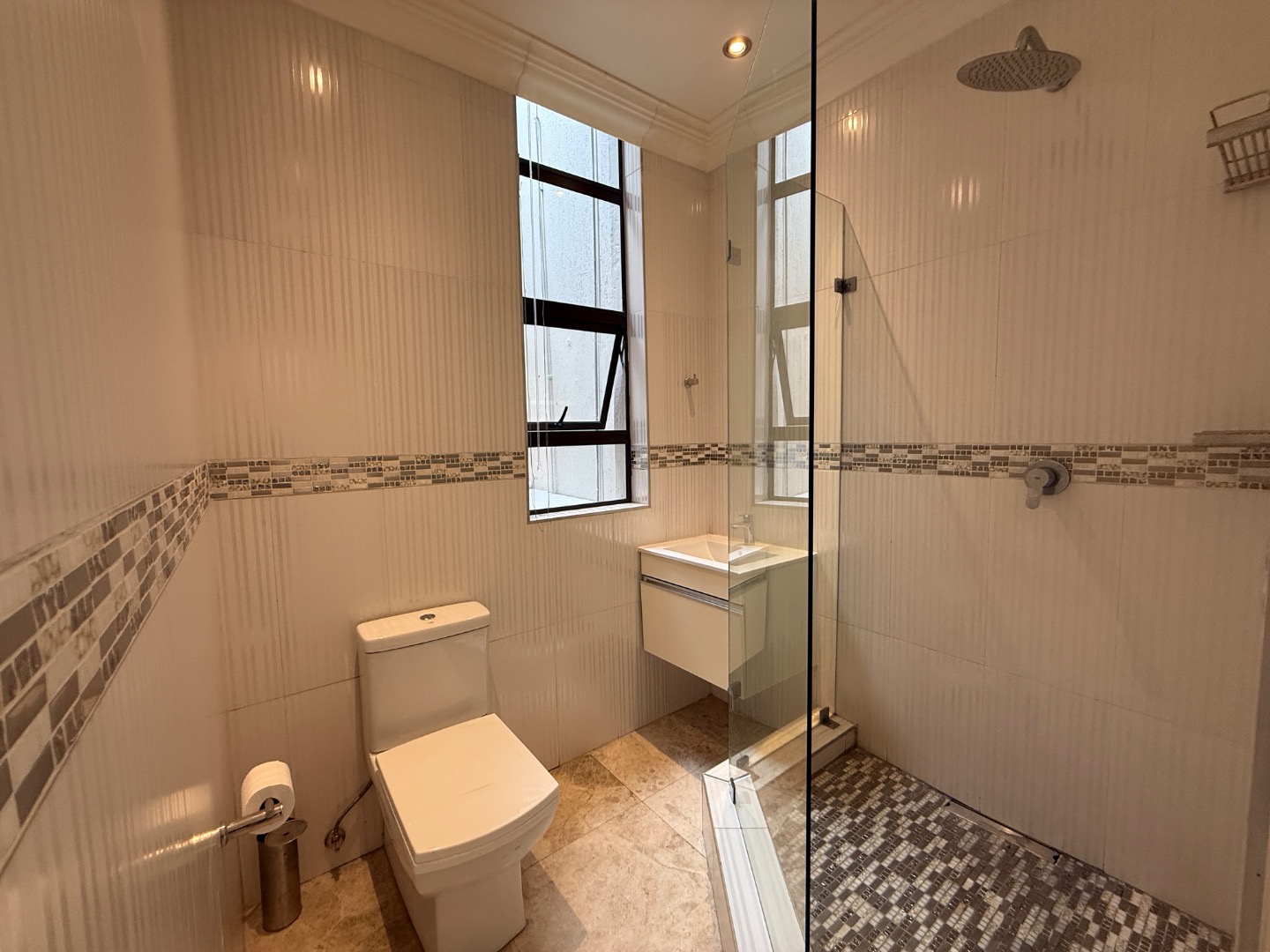 Discover an exceptional rental opportunity in Pretoria's highly sought-after Waterkloof suburb. This distinguished 4-bedroom residence, located on a prestigious street within a secure gated community, offers unparalleled safety and privacy. With 24-hour security, an alarm system, access gate, intercom, and security gate, residents can enjoy complete peace of mind.