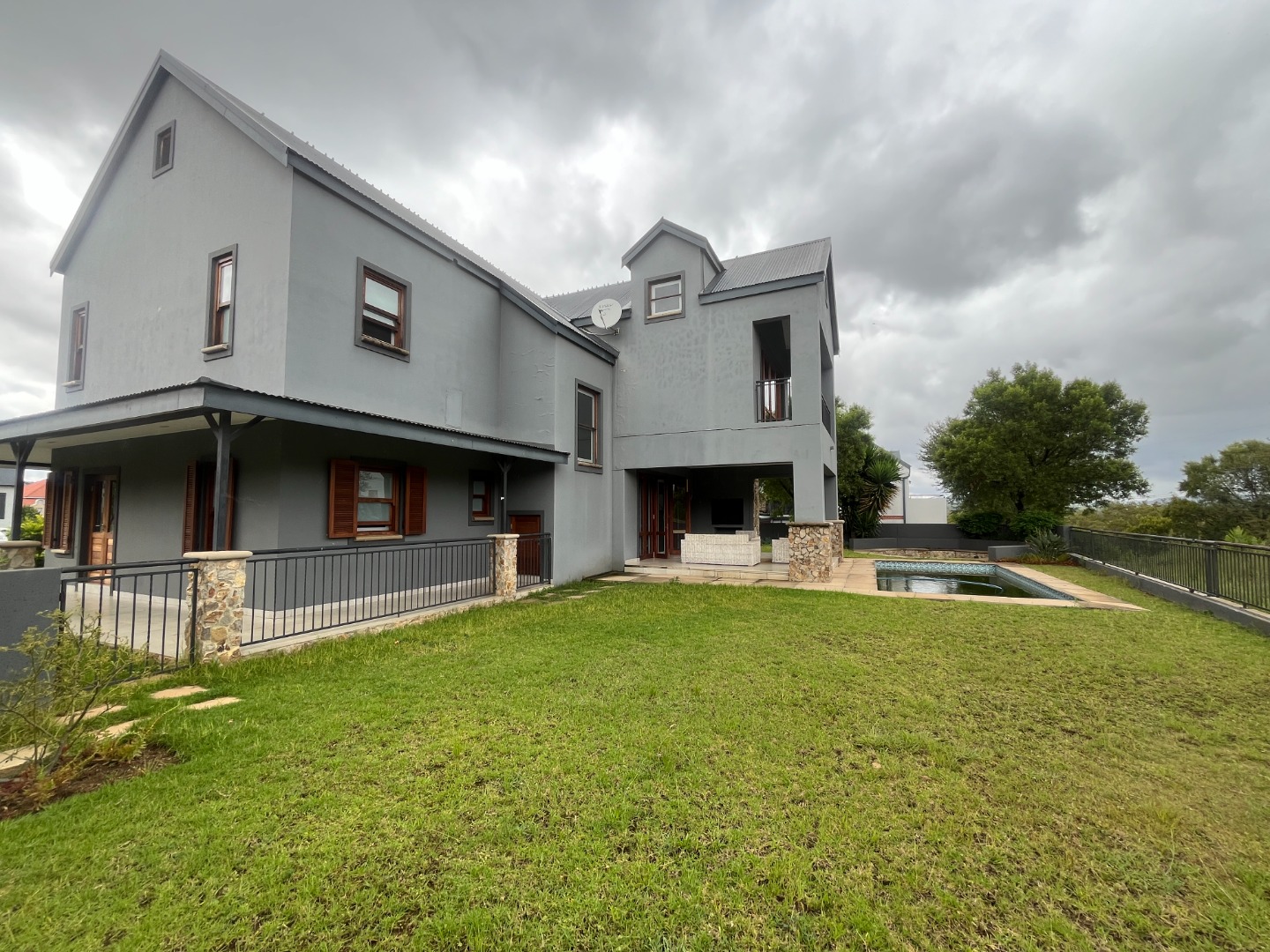 Step outside to a beautiful entertainment area featuring a large boma/bonfire space, perfect for relaxed evenings with family and friends under the stars. The inviting swimming pool completes the outdoor setting, offering a refreshing escape on warm summer days.