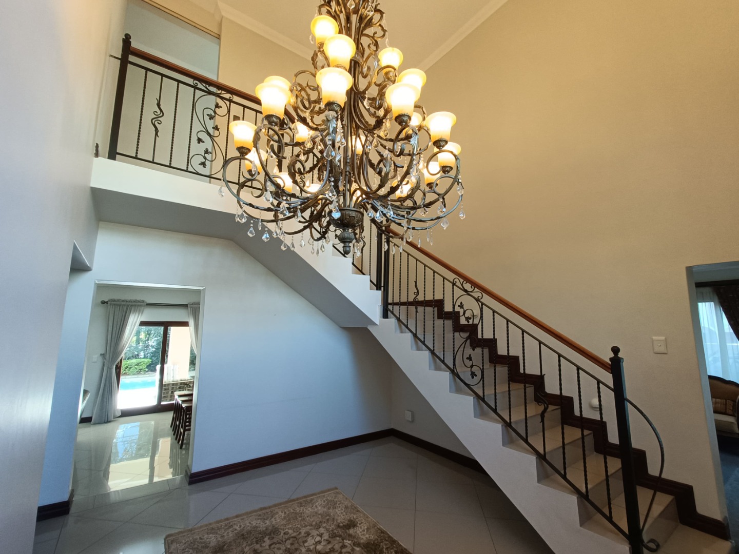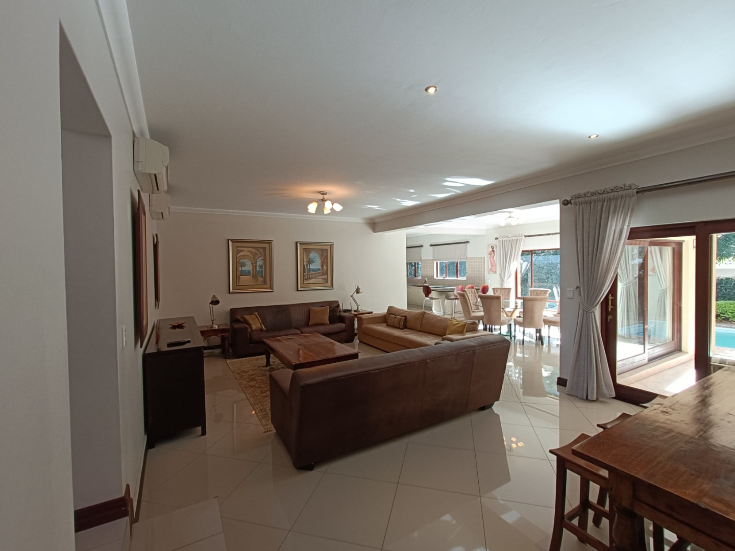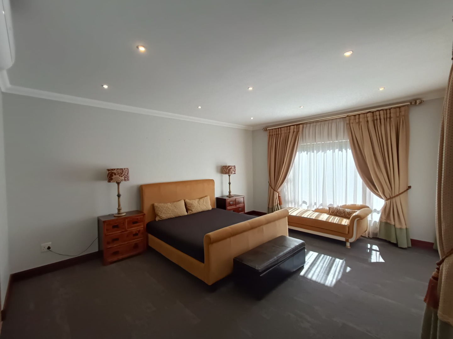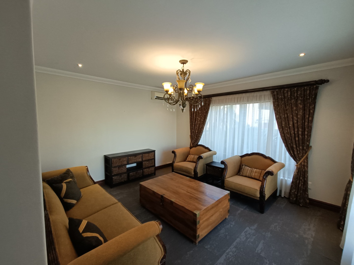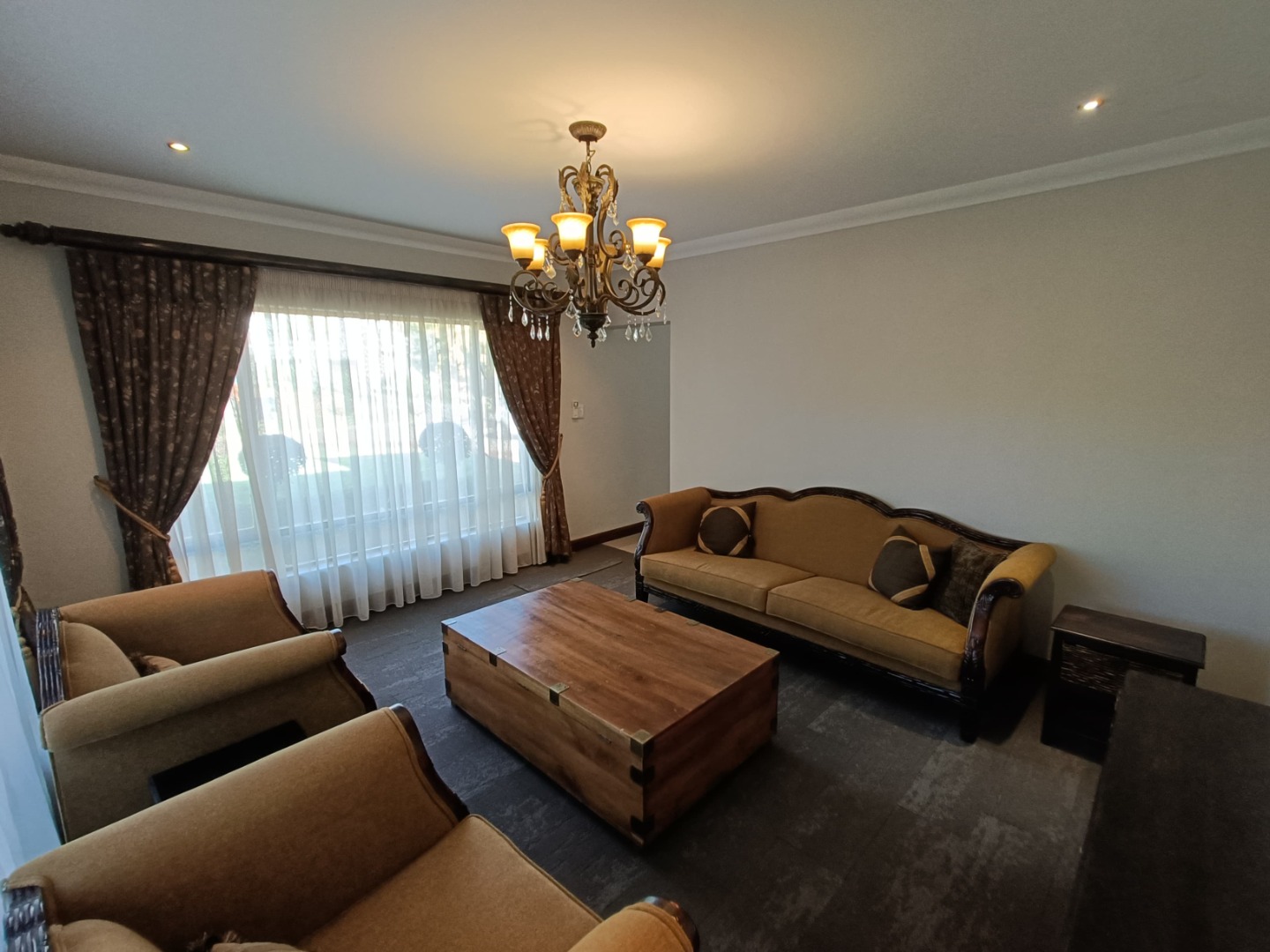 Situated in the upmarket Woodhill Golf Estate, this beautifully furnished 4-bedroom, 3-bathroom home offers a perfect blend of luxury, space, and modern convenience. Designed with elegance in mind, the home features expansive open-plan living and dining areas that open onto a landscaped garden with a sparkling swimming pool. A private balcony overlooking the pool creates a peaceful retreat for relaxation or entertaining.
