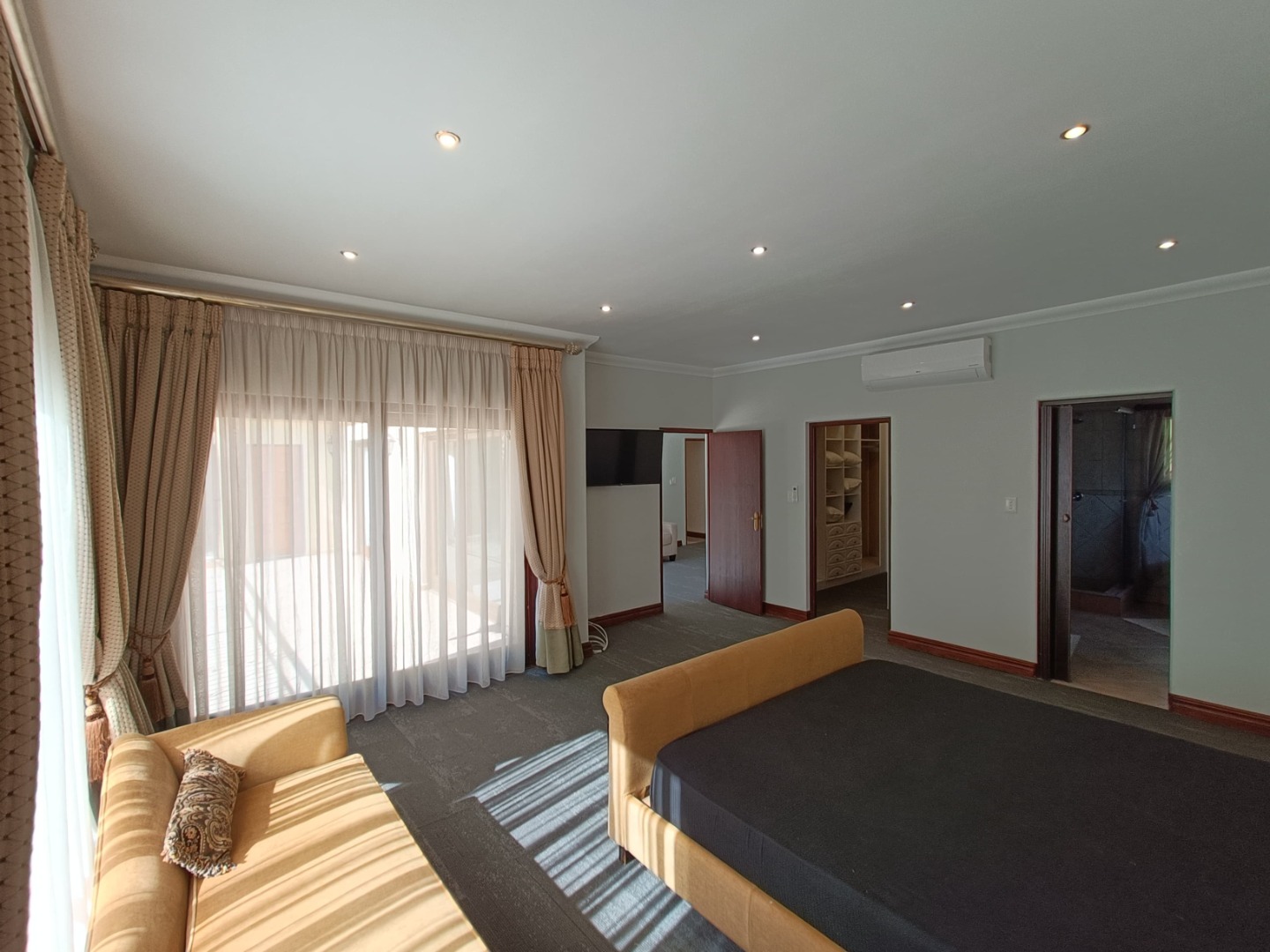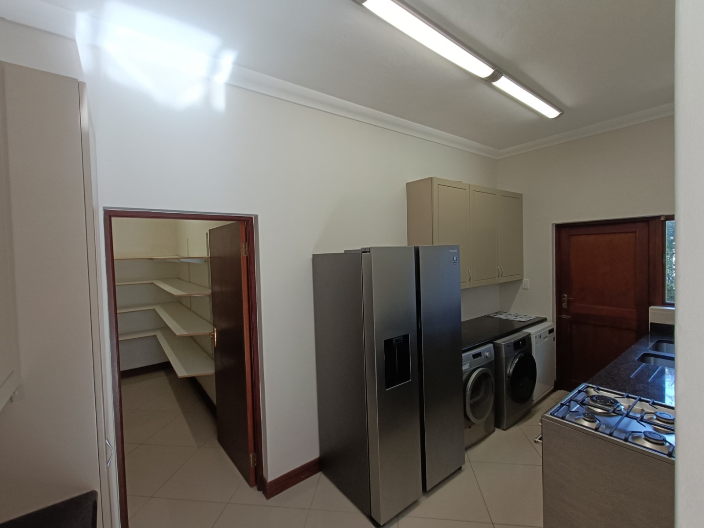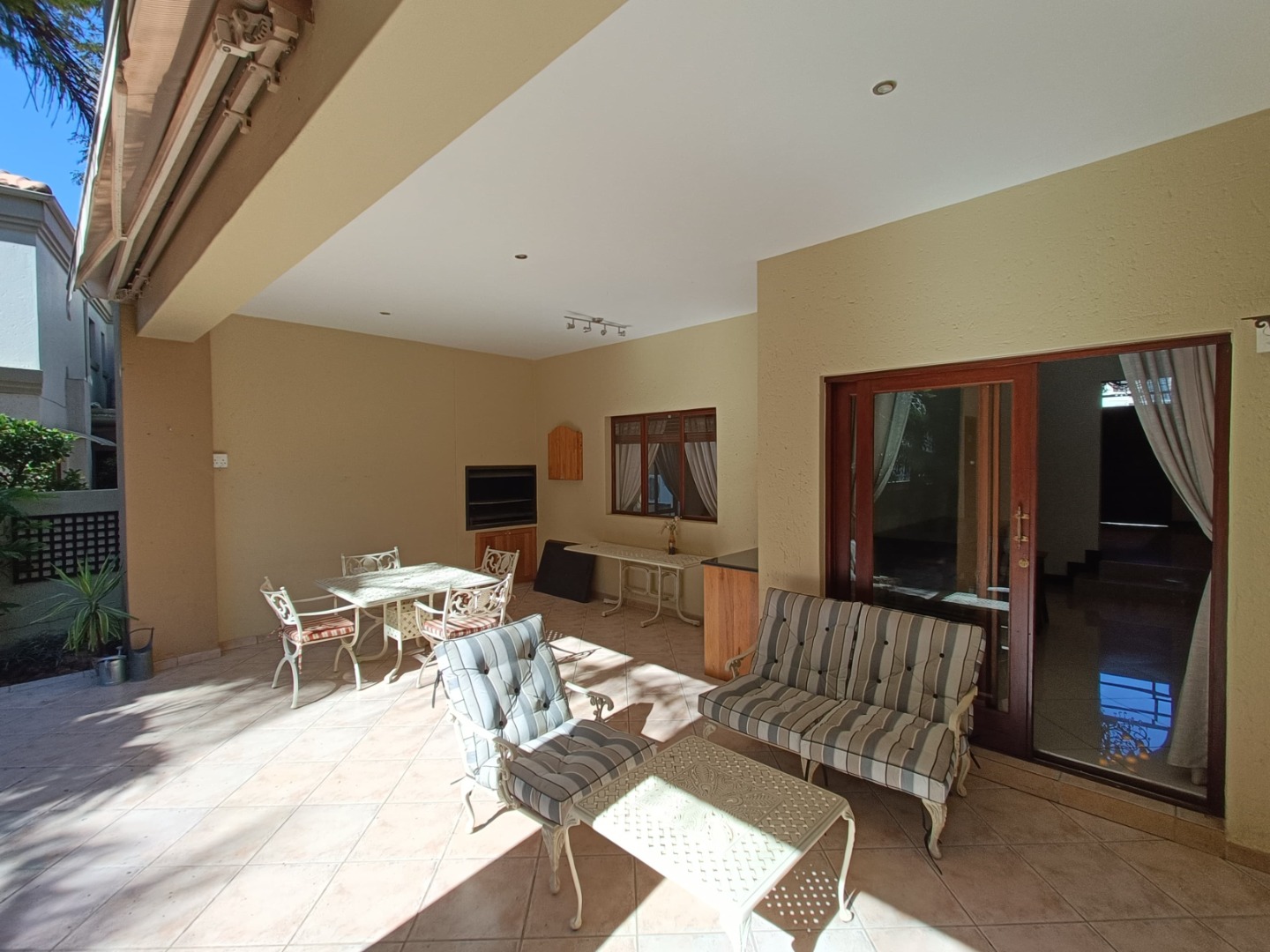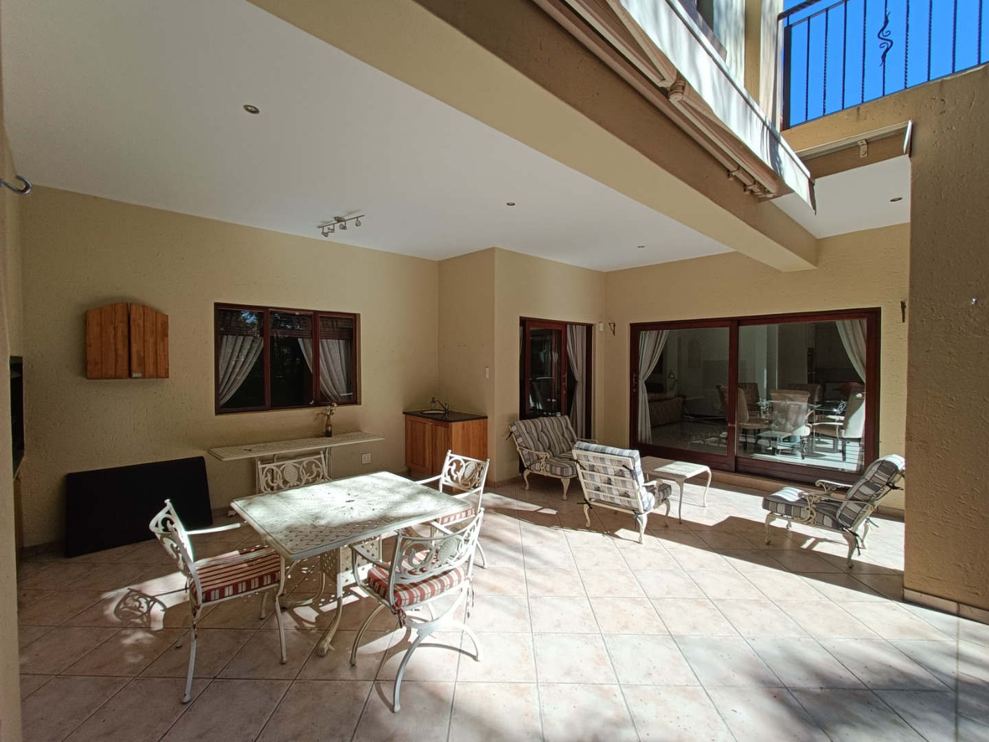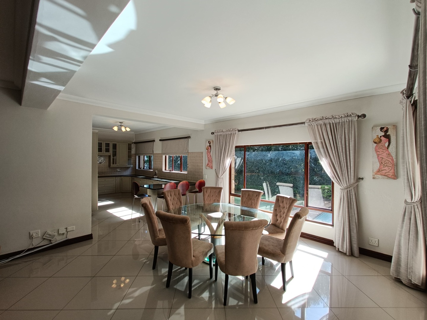 Situated in the upmarket Woodhill Golf Estate, this beautifully furnished 4-bedroom, 3-bathroom home offers a perfect blend of luxury, space, and modern convenience. Designed with elegance in mind, the home features expansive open-plan living and dining areas that open onto a landscaped garden with a sparkling swimming pool. A private balcony overlooking the pool creates a peaceful retreat for relaxation or entertaining.