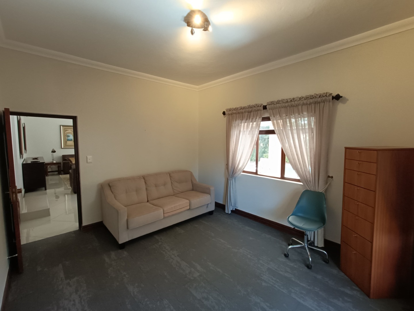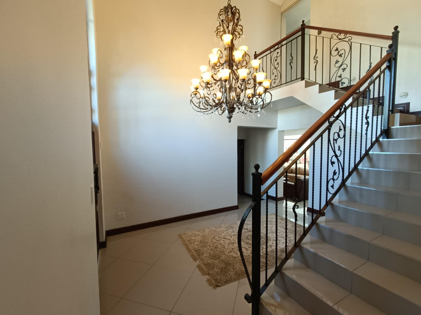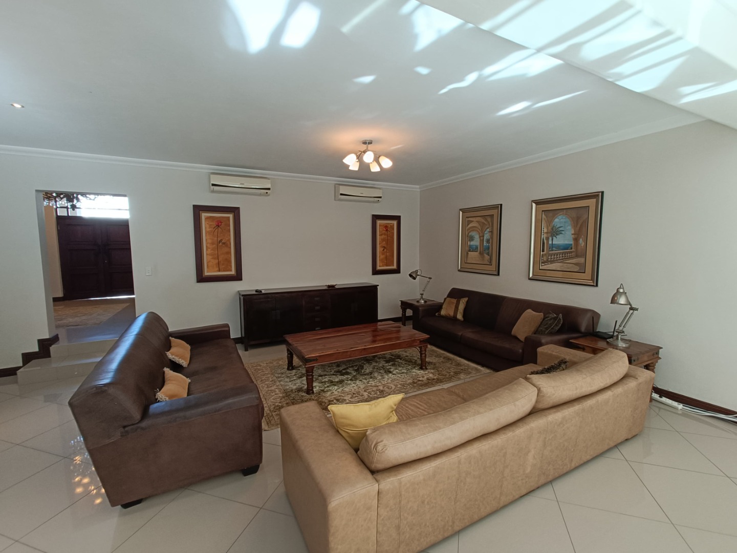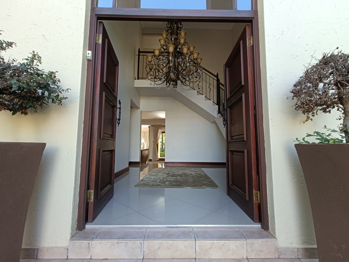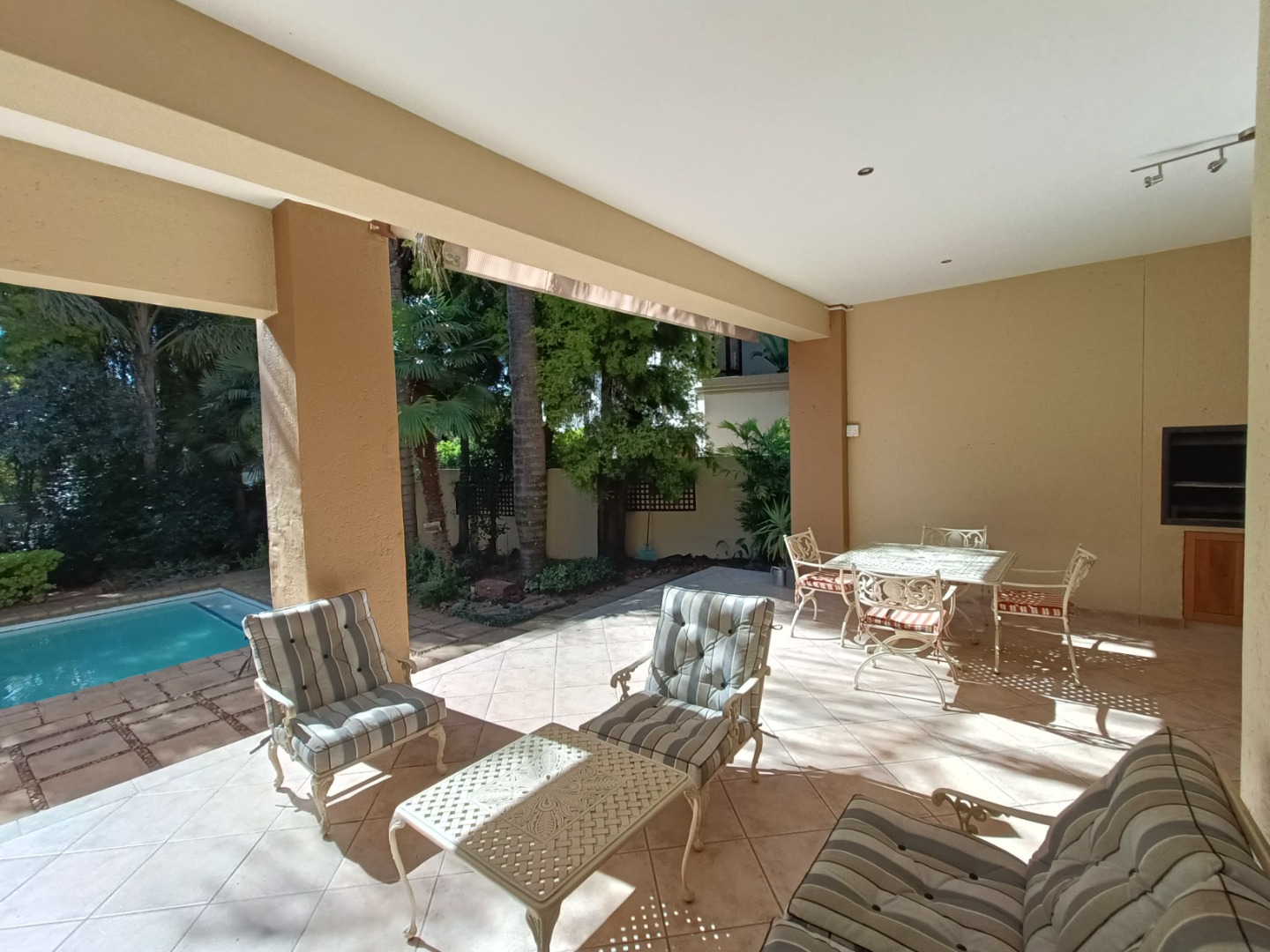 Situated in the upmarket Woodhill Golf Estate, this beautifully furnished 4-bedroom, 3-bathroom home offers a perfect blend of luxury, space, and modern convenience. Designed with elegance in mind, the home features expansive open-plan living and dining areas that open onto a landscaped garden with a sparkling swimming pool. A private balcony overlooking the pool creates a peaceful retreat for relaxation or entertaining.