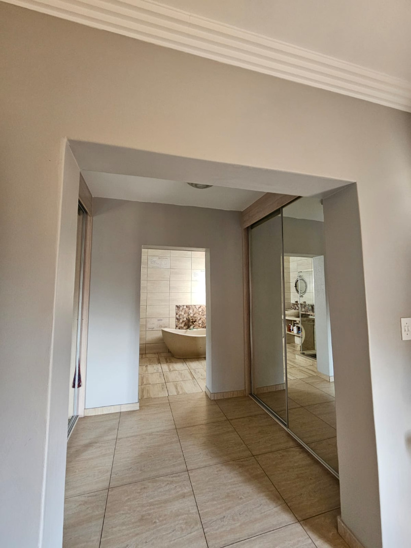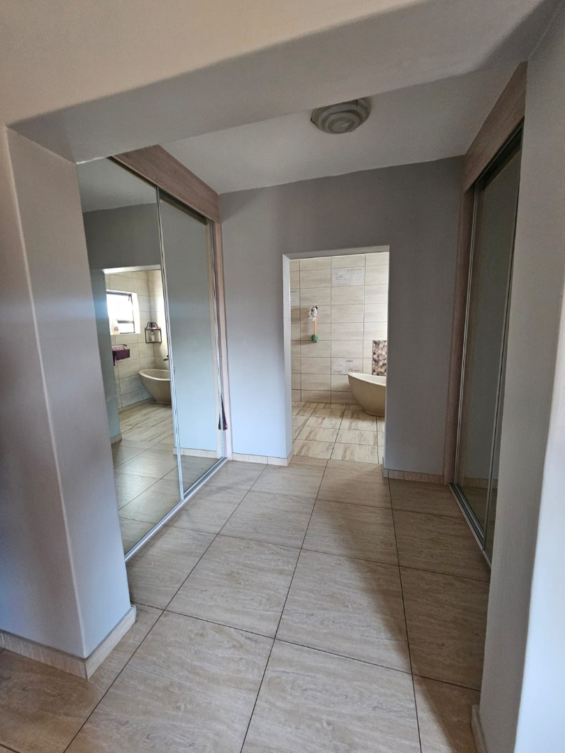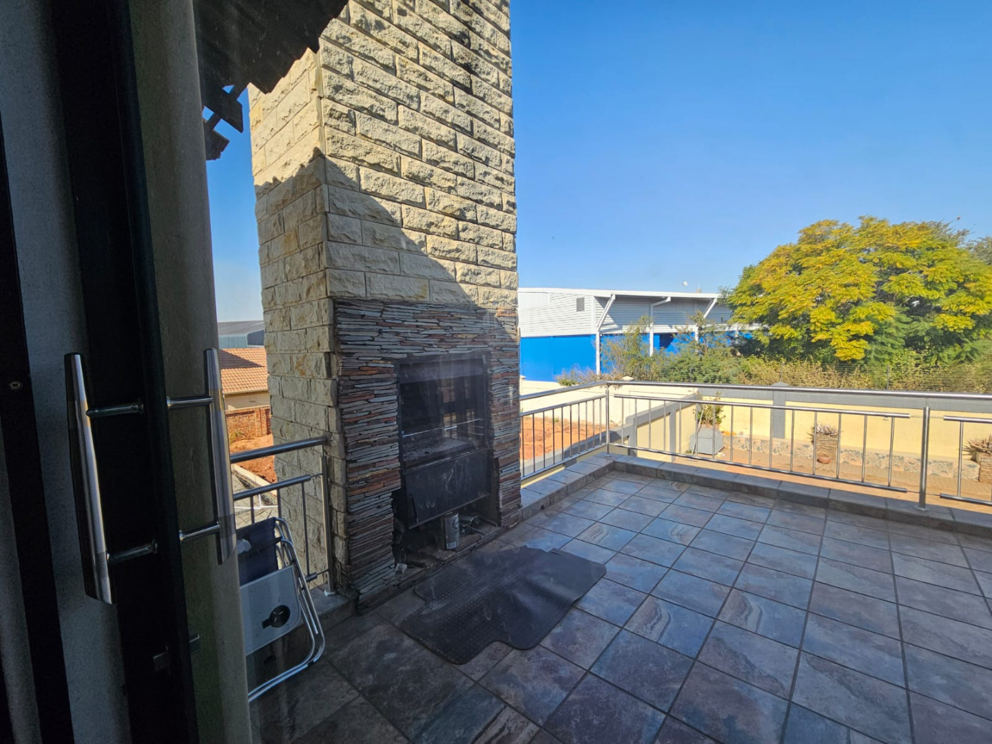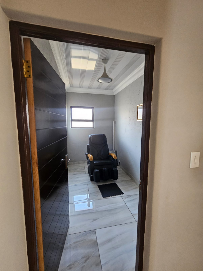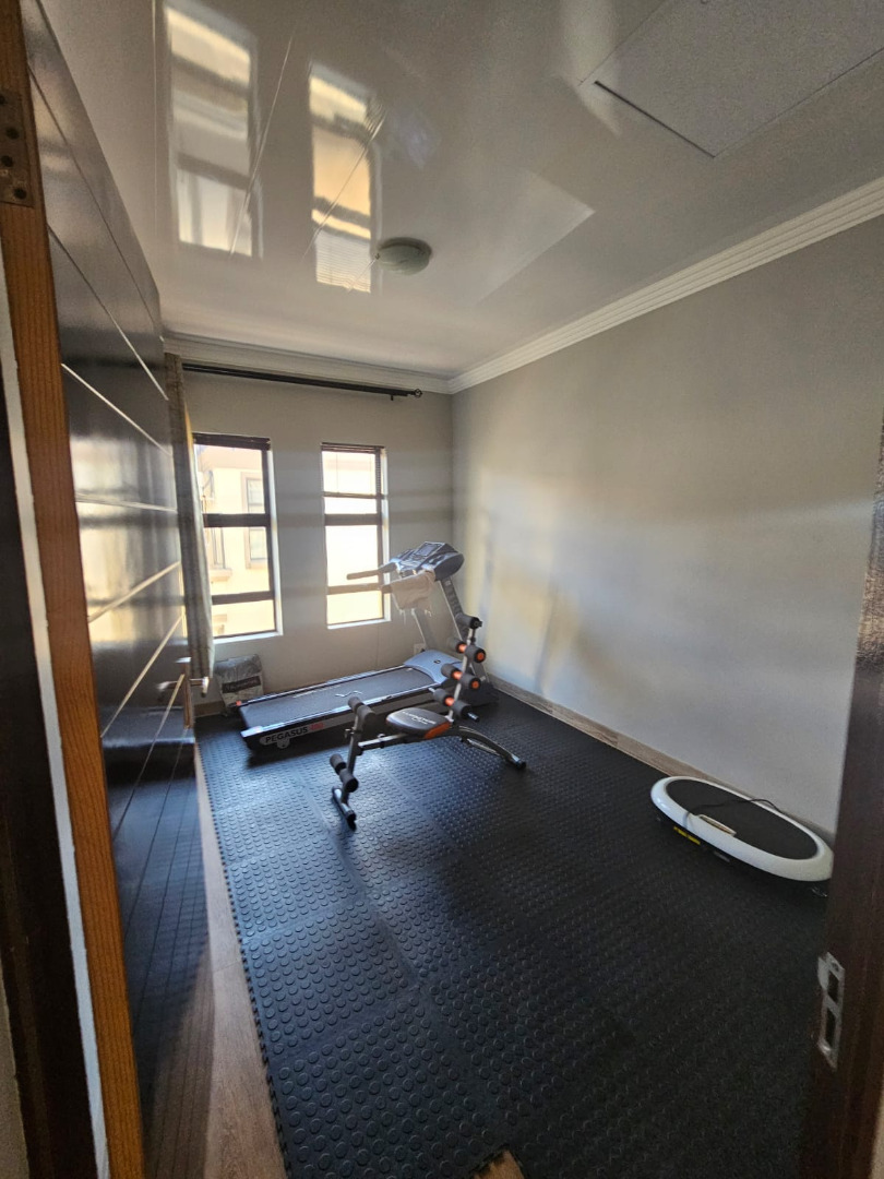 Upstairs, you’ll find a versatile study nook and a relaxed pajama lounge that opens onto a balcony with a built-in braai — the perfect spot for casual evenings. The upper level includes a bedroom with a full en-suite bathroom (without built-in cupboards), a smaller additional room that can be used as a nursery or storage space, and a second bedroom currently utilized as a gym. The main bedroom enjoys its own private balcony and a full en-suite bathroom, offering a peaceful retreat, with the flexibility to install cupboards to suit your personal style.