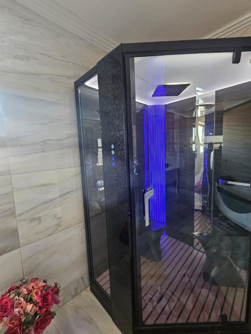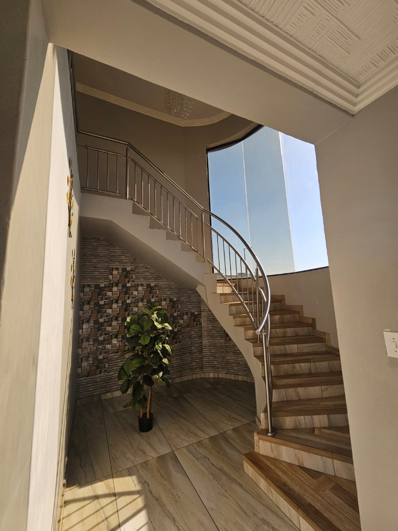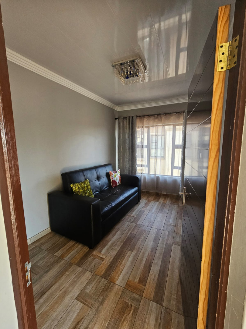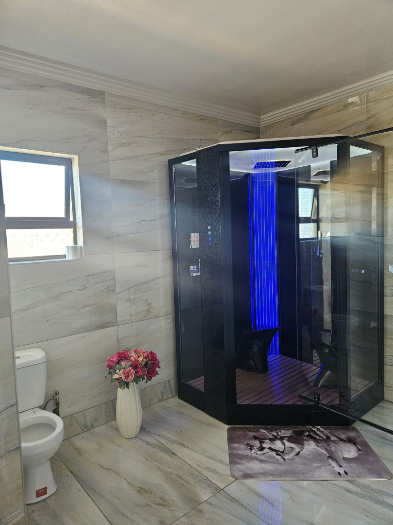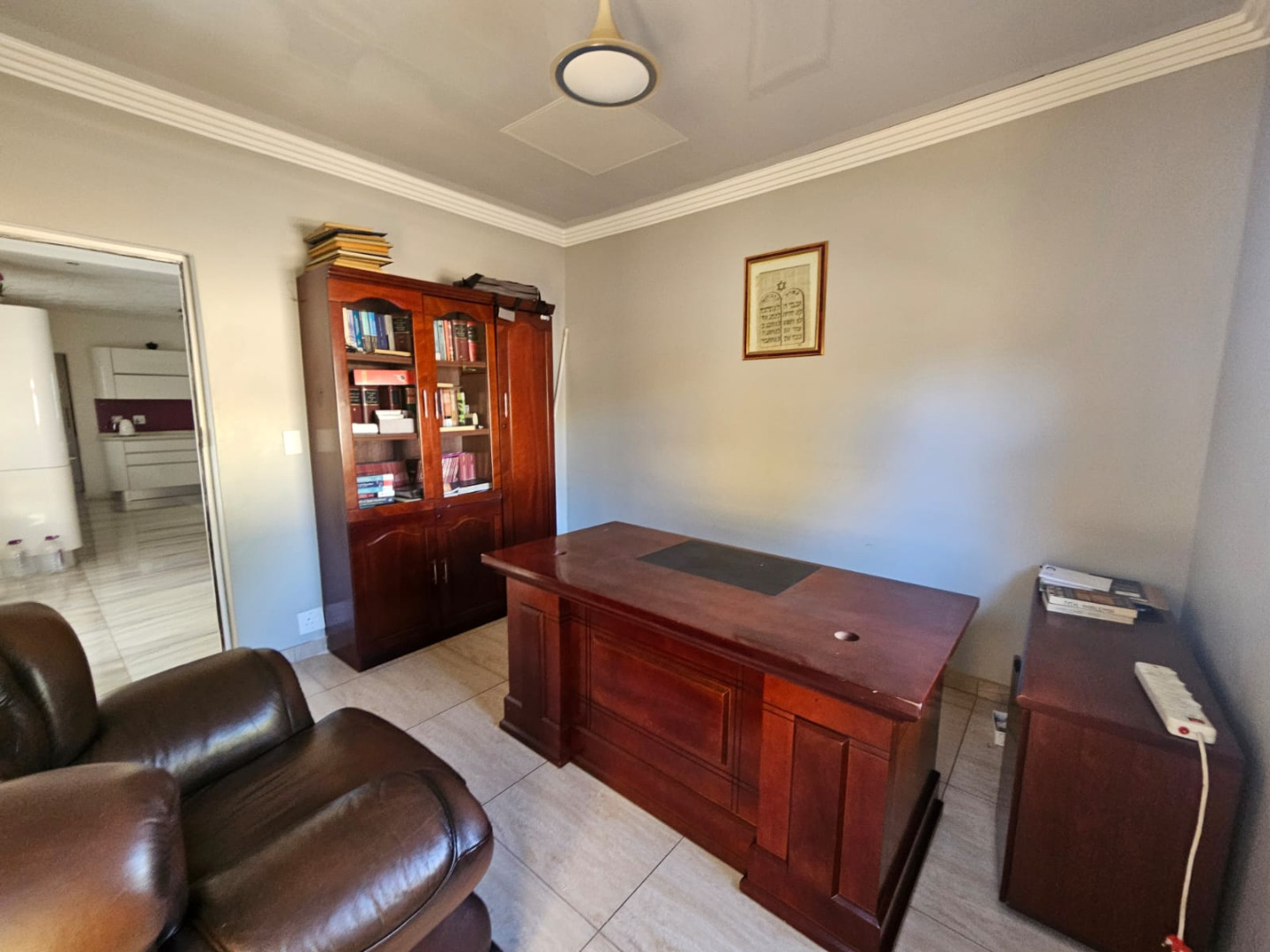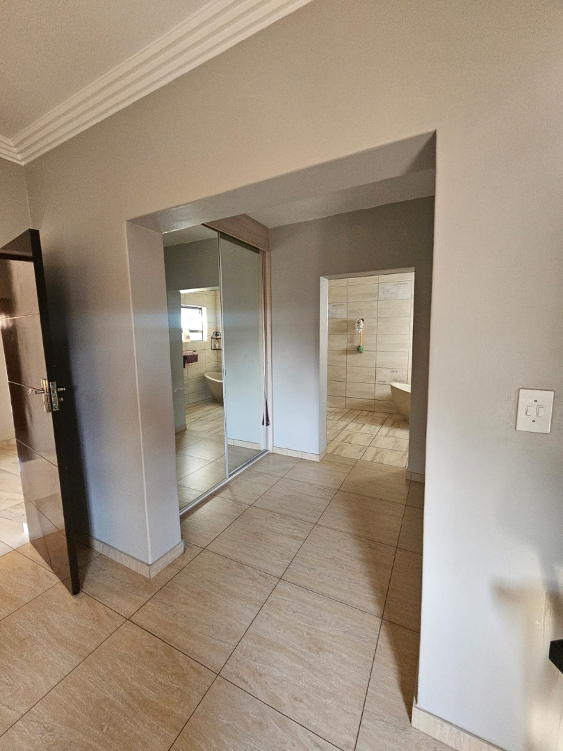 Upstairs, you’ll find a versatile study nook and a relaxed pajama lounge that opens onto a balcony with a built-in braai — the perfect spot for casual evenings. The upper level includes a bedroom with a full en-suite bathroom (without built-in cupboards), a smaller additional room that can be used as a nursery or storage space, and a second bedroom currently utilized as a gym. The main bedroom enjoys its own private balcony and a full en-suite bathroom, offering a peaceful retreat, with the flexibility to install cupboards to suit your personal style.