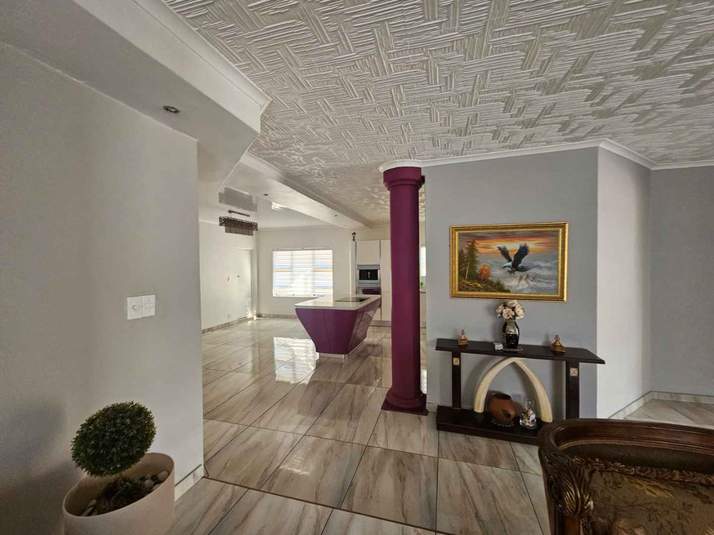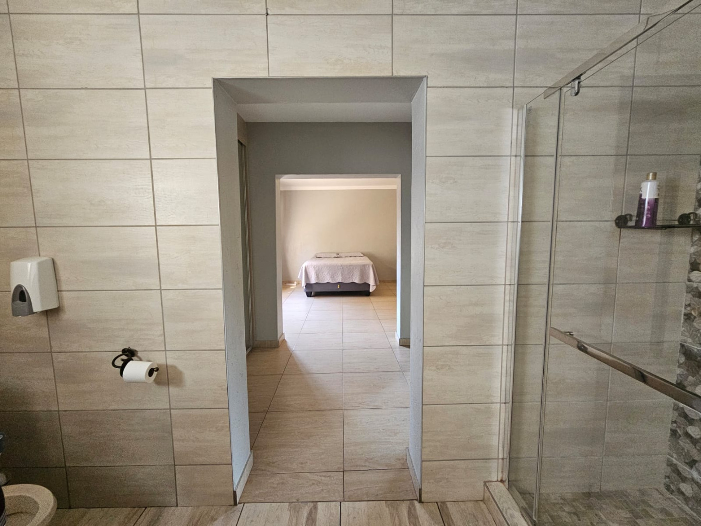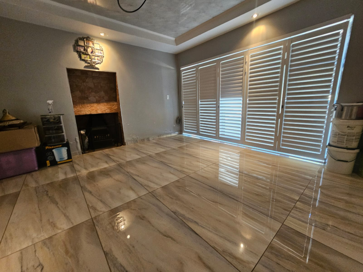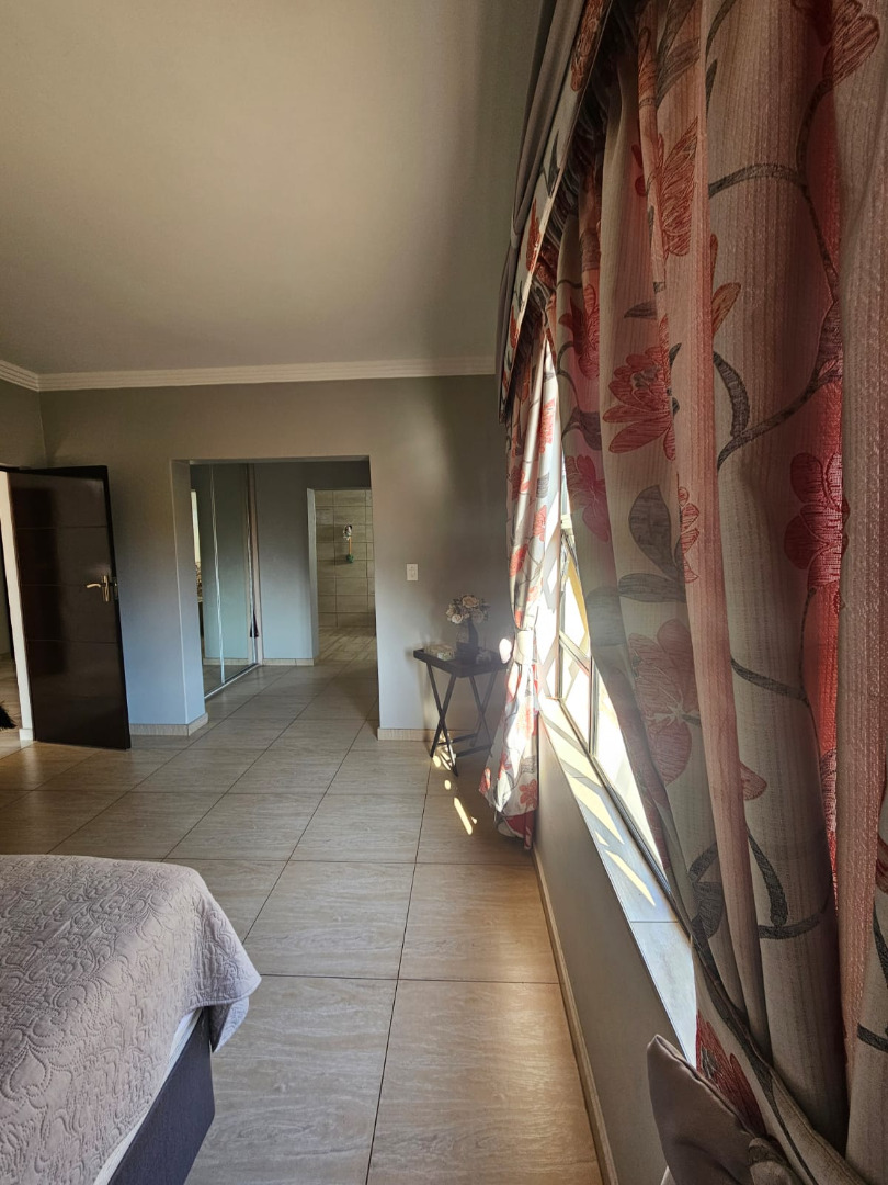 This spacious home offers a beautifully designed open-plan living area that flows effortlessly into the entertainment space, complete with a cozy fireplace and sliding doors fitted with shutters — perfect for year-round entertaining. The kitchen includes a separate scullery with ample space for a double-door fridge, keeping the main living areas neat and functional. Downstairs also features a guest toilet, a comfortable first bedroom, and direct access to a double automated garage.