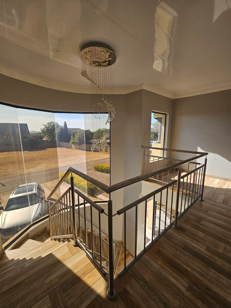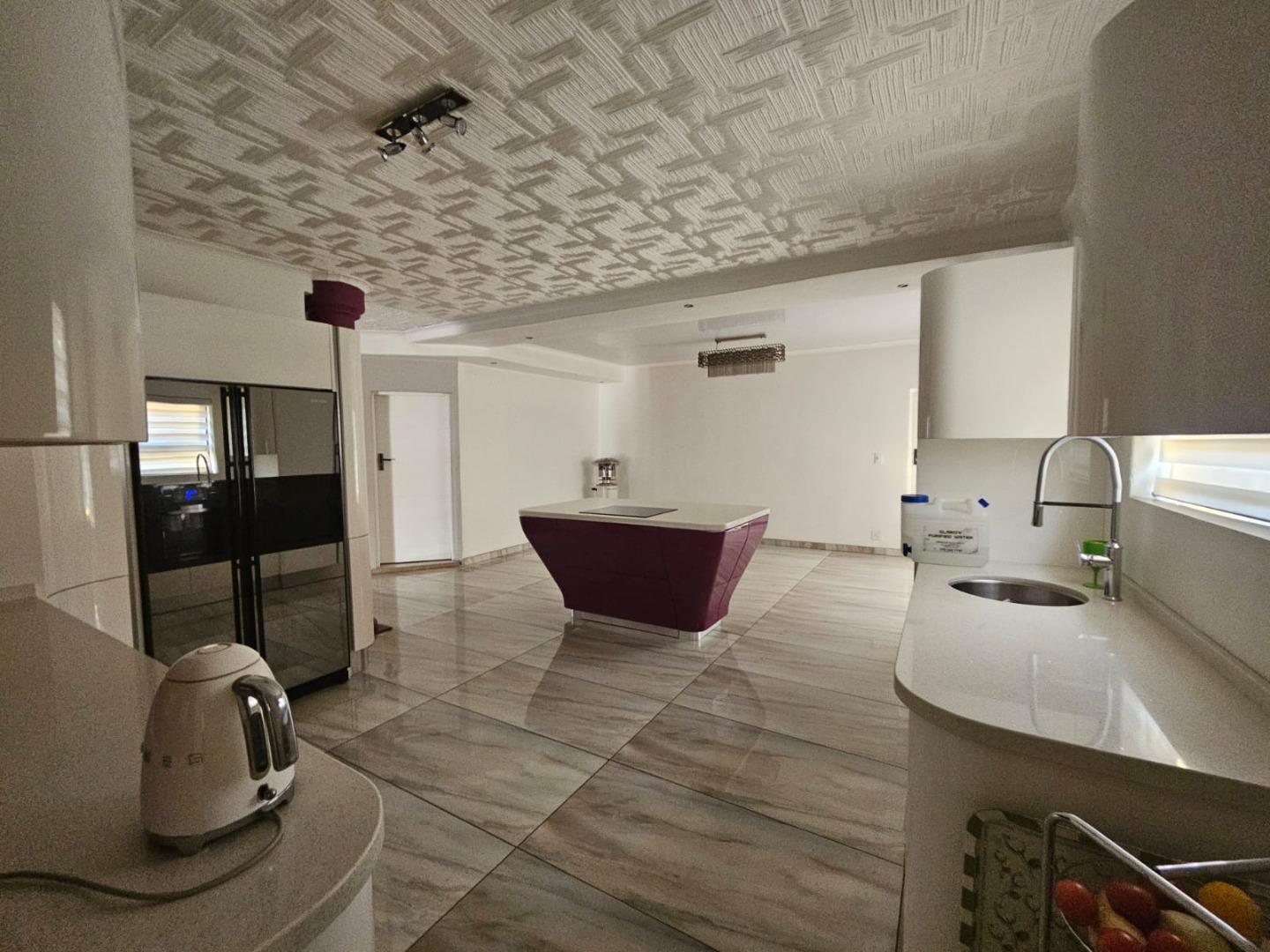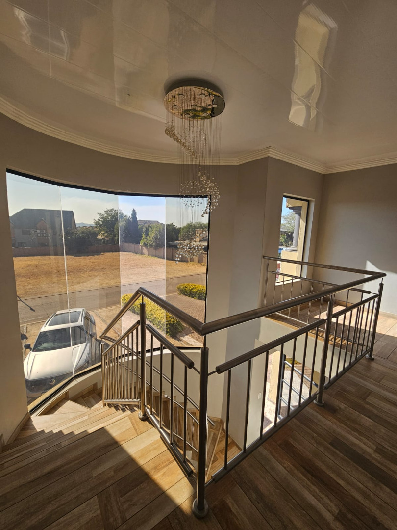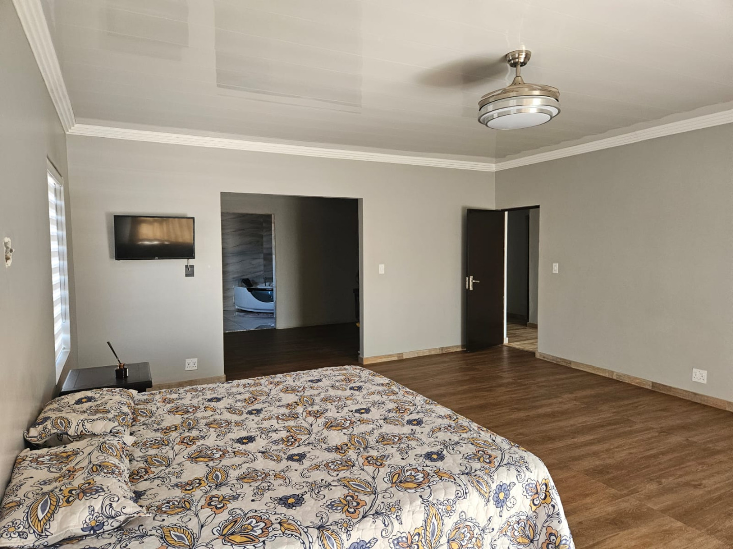 This spacious home offers a beautifully designed open-plan living area that flows effortlessly into the entertainment space, complete with a cozy fireplace and sliding doors fitted with shutters — perfect for year-round entertaining. The kitchen includes a separate scullery with ample space for a double-door fridge, keeping the main living areas neat and functional. Downstairs also features a guest toilet, a comfortable first bedroom, and direct access to a double automated garage.