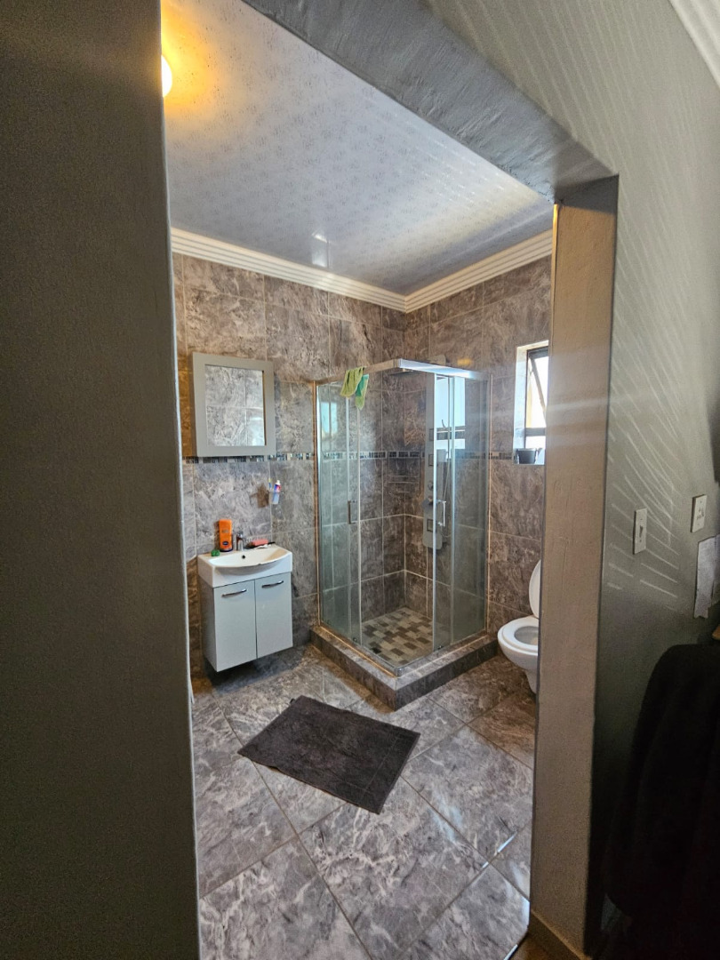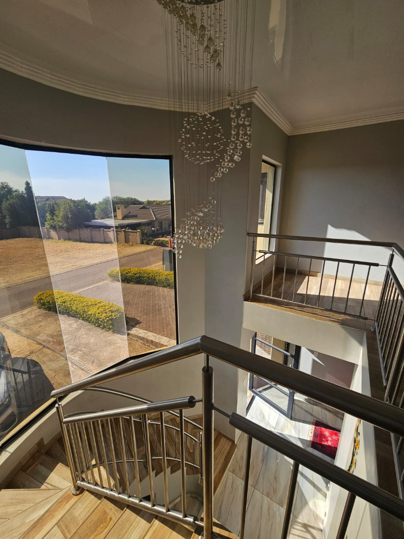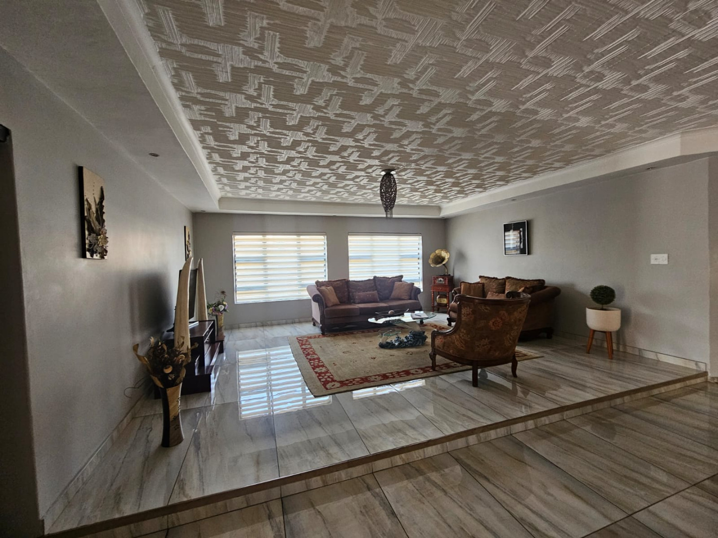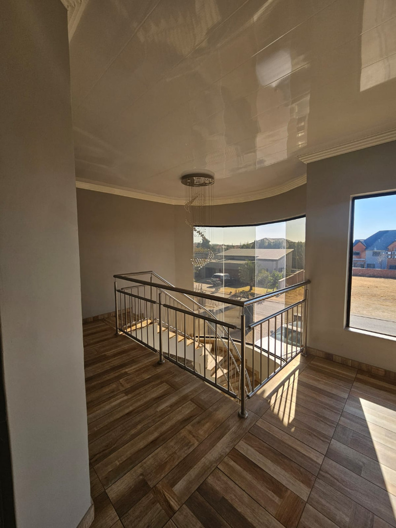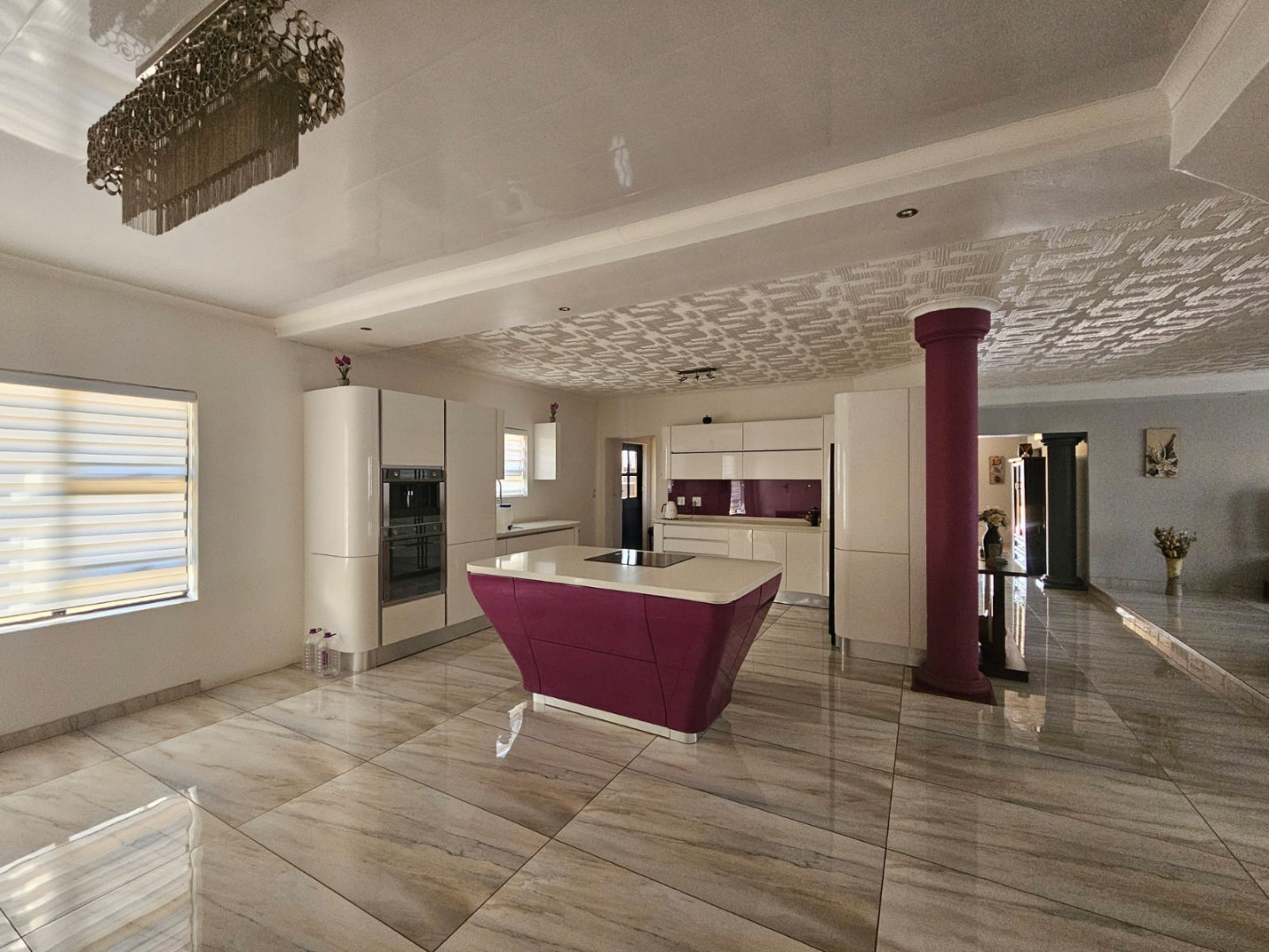 This spacious home offers a beautifully designed open-plan living area that flows effortlessly into the entertainment space, complete with a cozy fireplace and sliding doors fitted with shutters — perfect for year-round entertaining. The kitchen includes a separate scullery with ample space for a double-door fridge, keeping the main living areas neat and functional. Downstairs also features a guest toilet, a comfortable first bedroom, and direct access to a double automated garage.