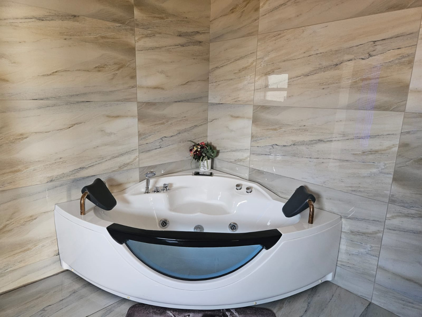 The second downstairs bedroom is generously sized and boasts a full en-suite bathroom along with a walk-in closet, offering both privacy and convenience. The home’s layout is ideal for families who appreciate both open spaces and well-defined private areas.