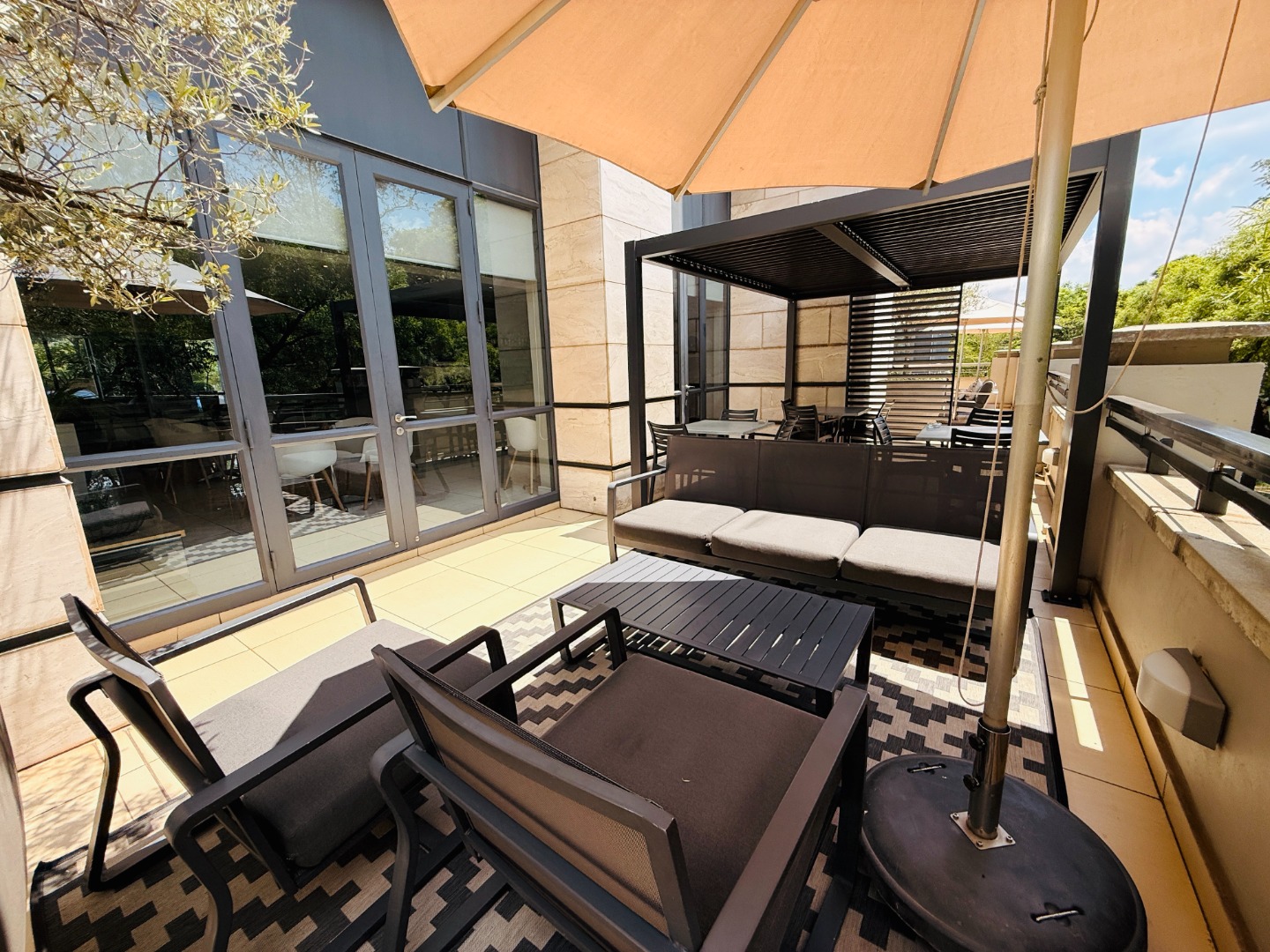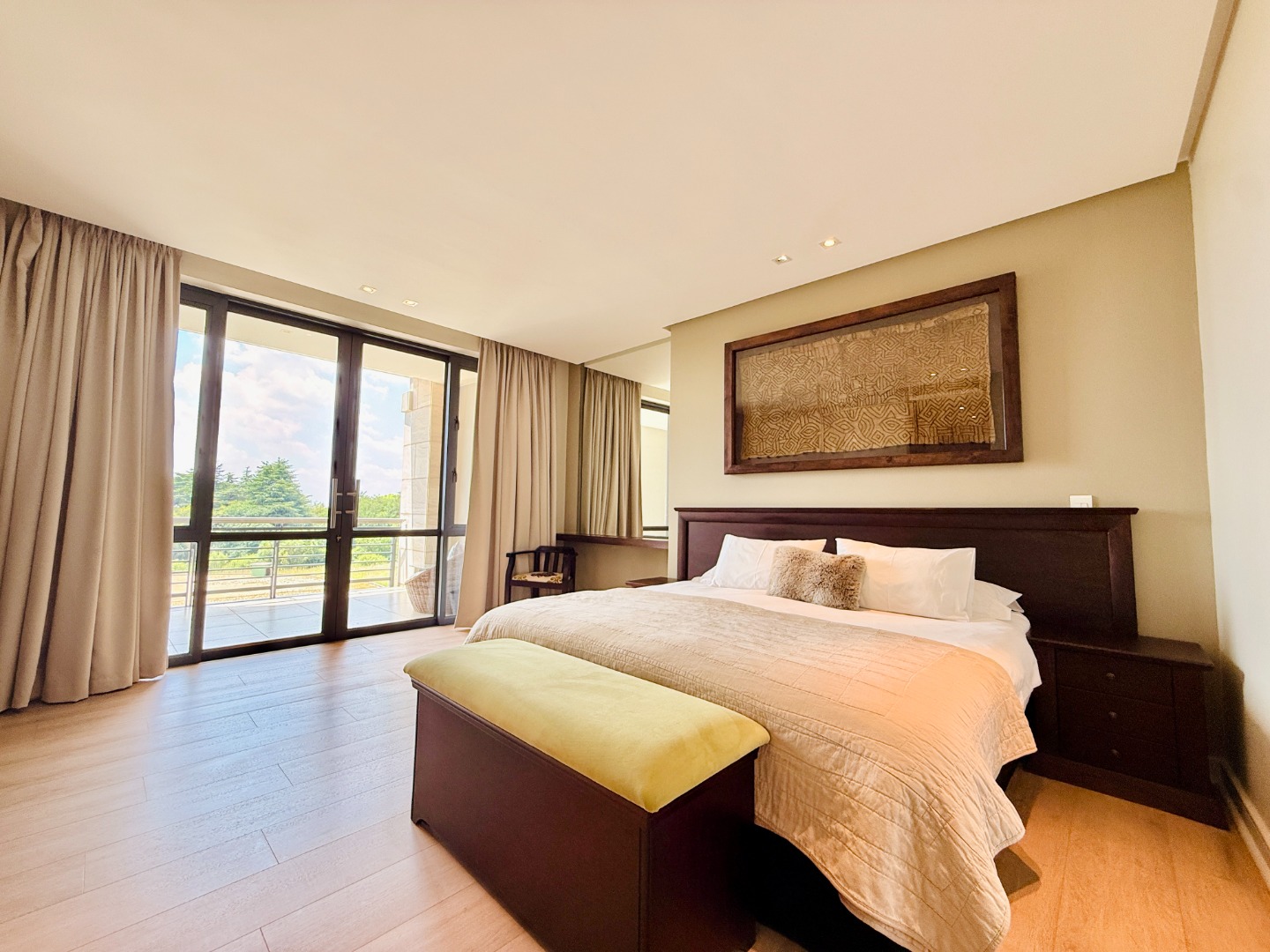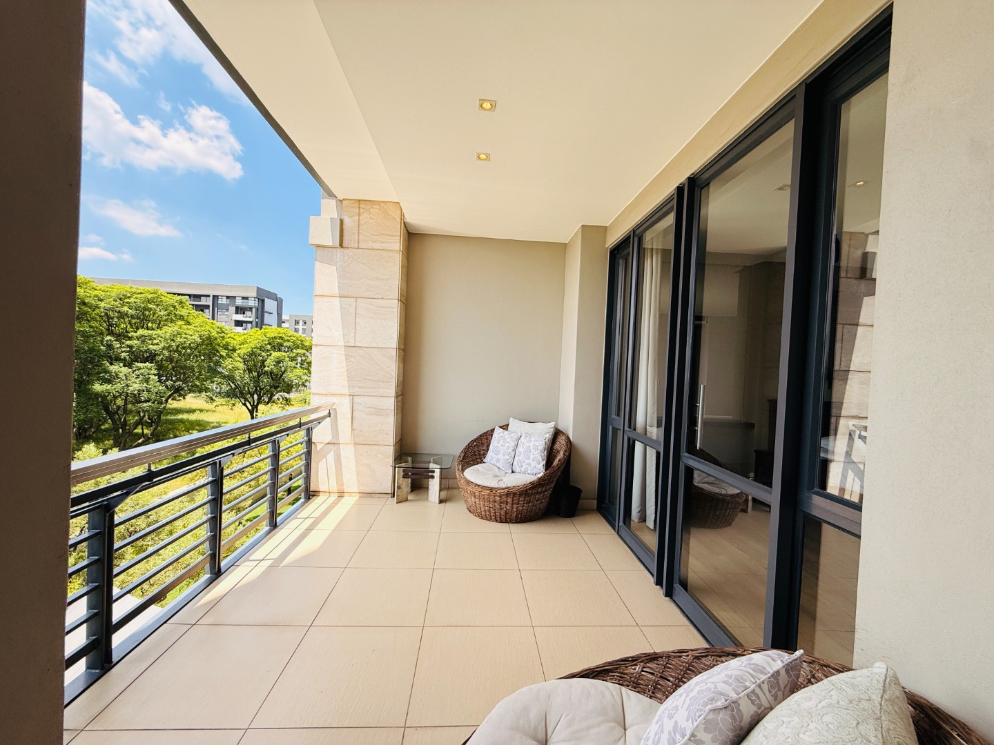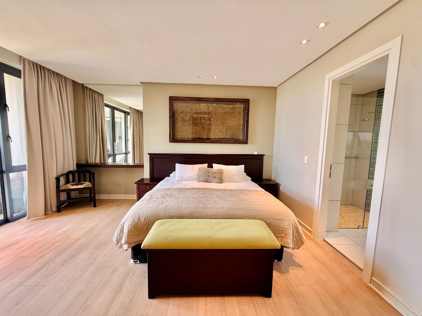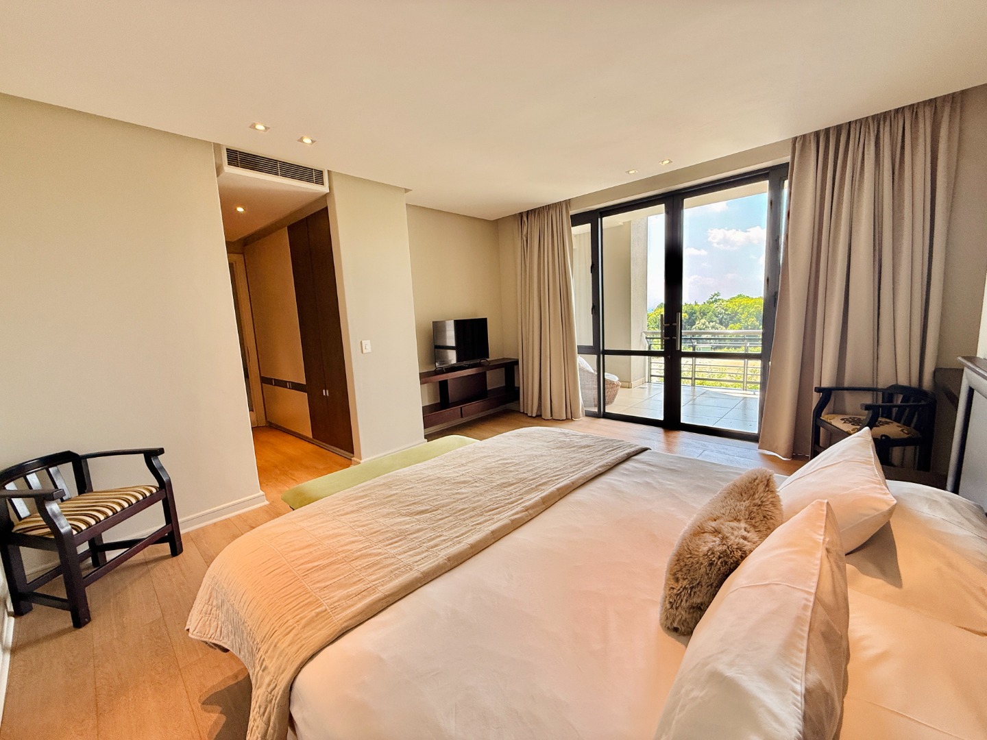 These living spaces extend onto a private balcony, where breathtaking views provide the perfect backdrop for both relaxation and sophisticated entertaining.