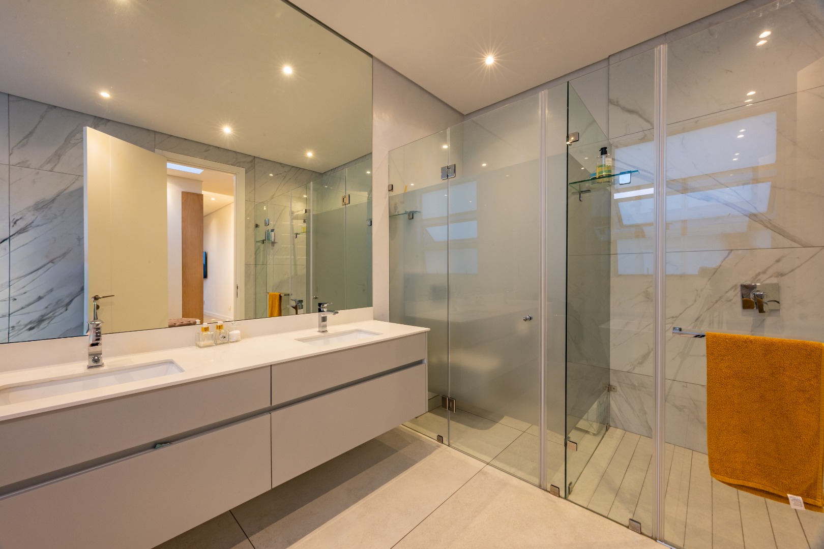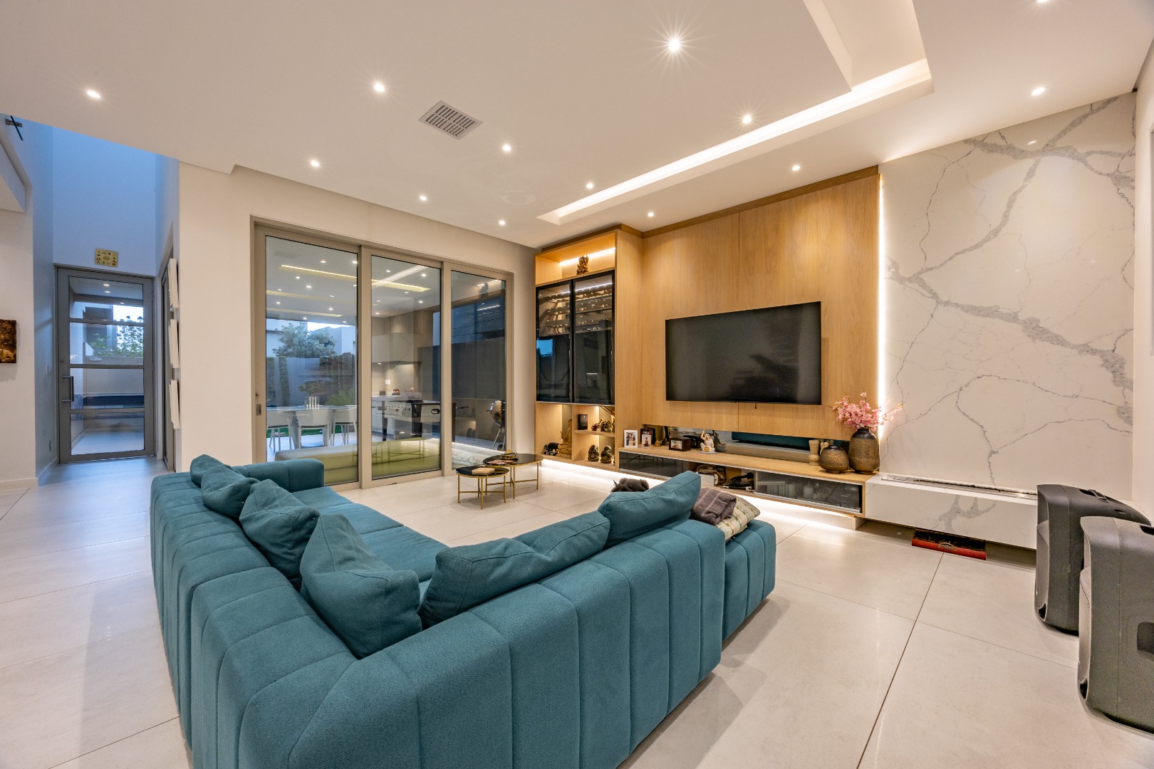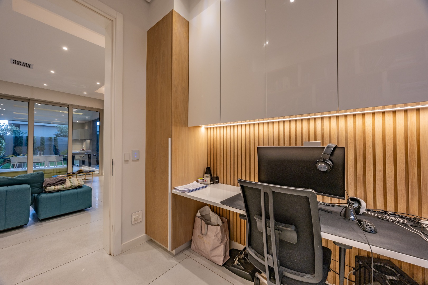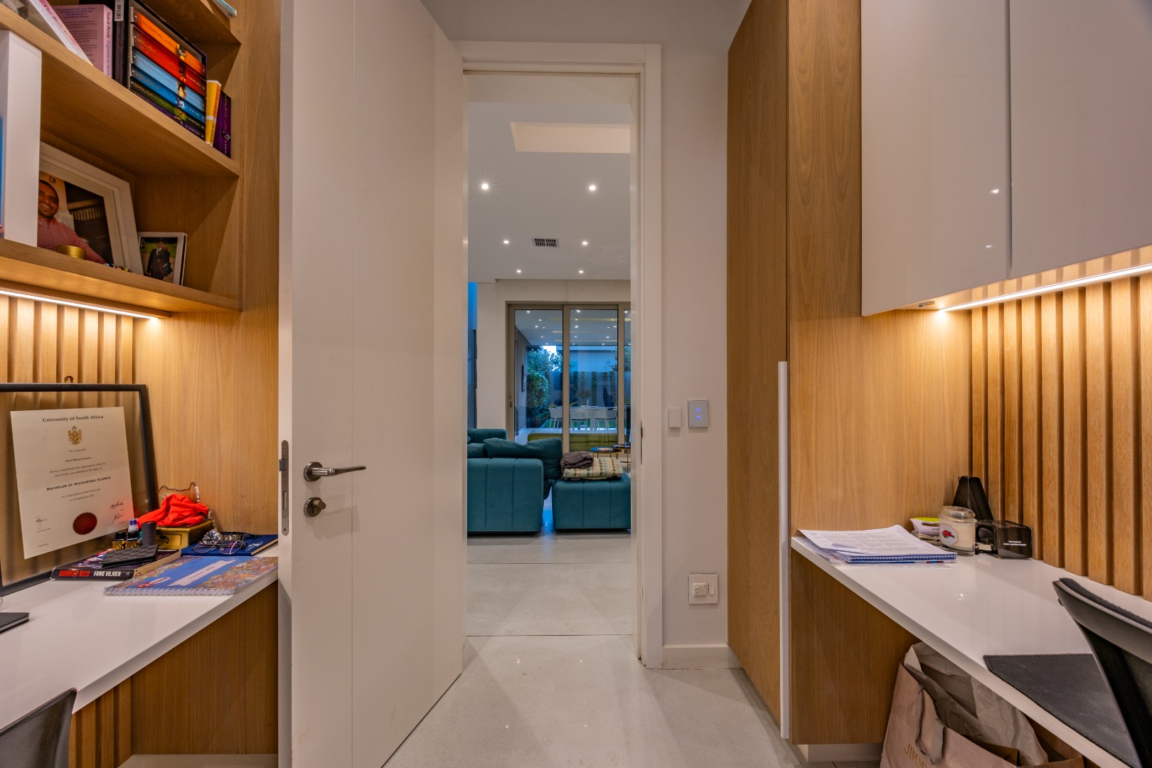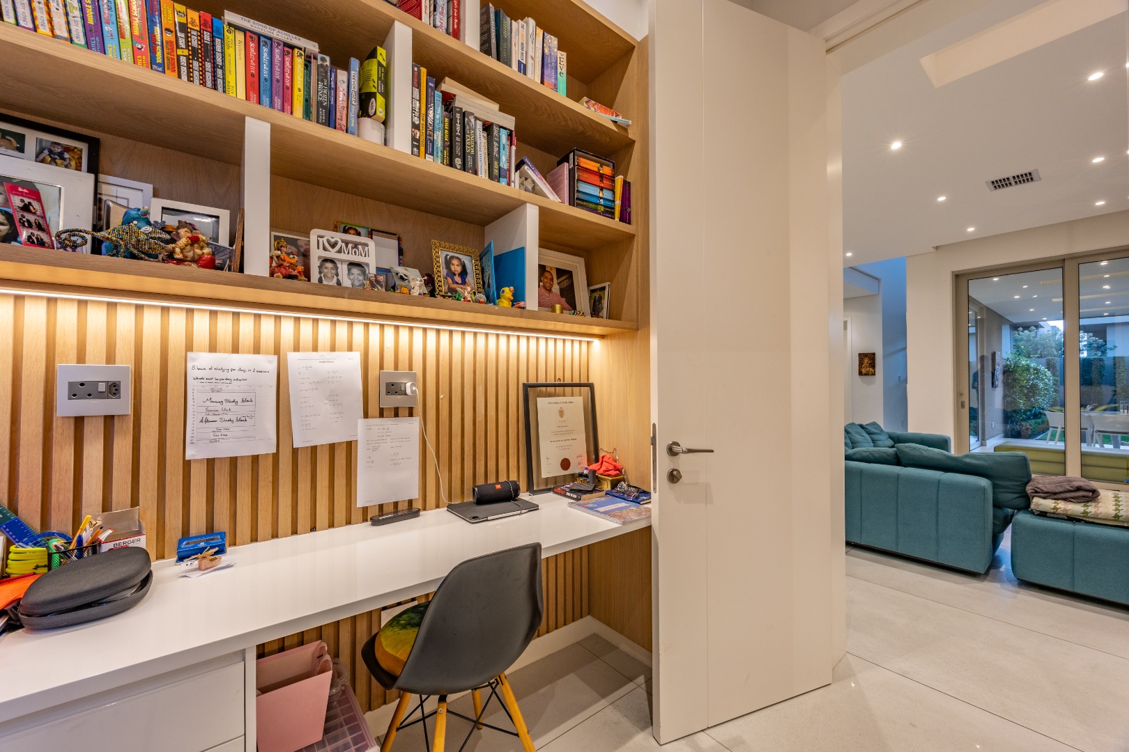 The ground floor also features a private study fitted with custom-built cabinetry — ideal for a modern work-from-home setup — along with a guest cloakroom, double automated garage, and an oversized storeroom that reflect the home’s thoughtful practicality.