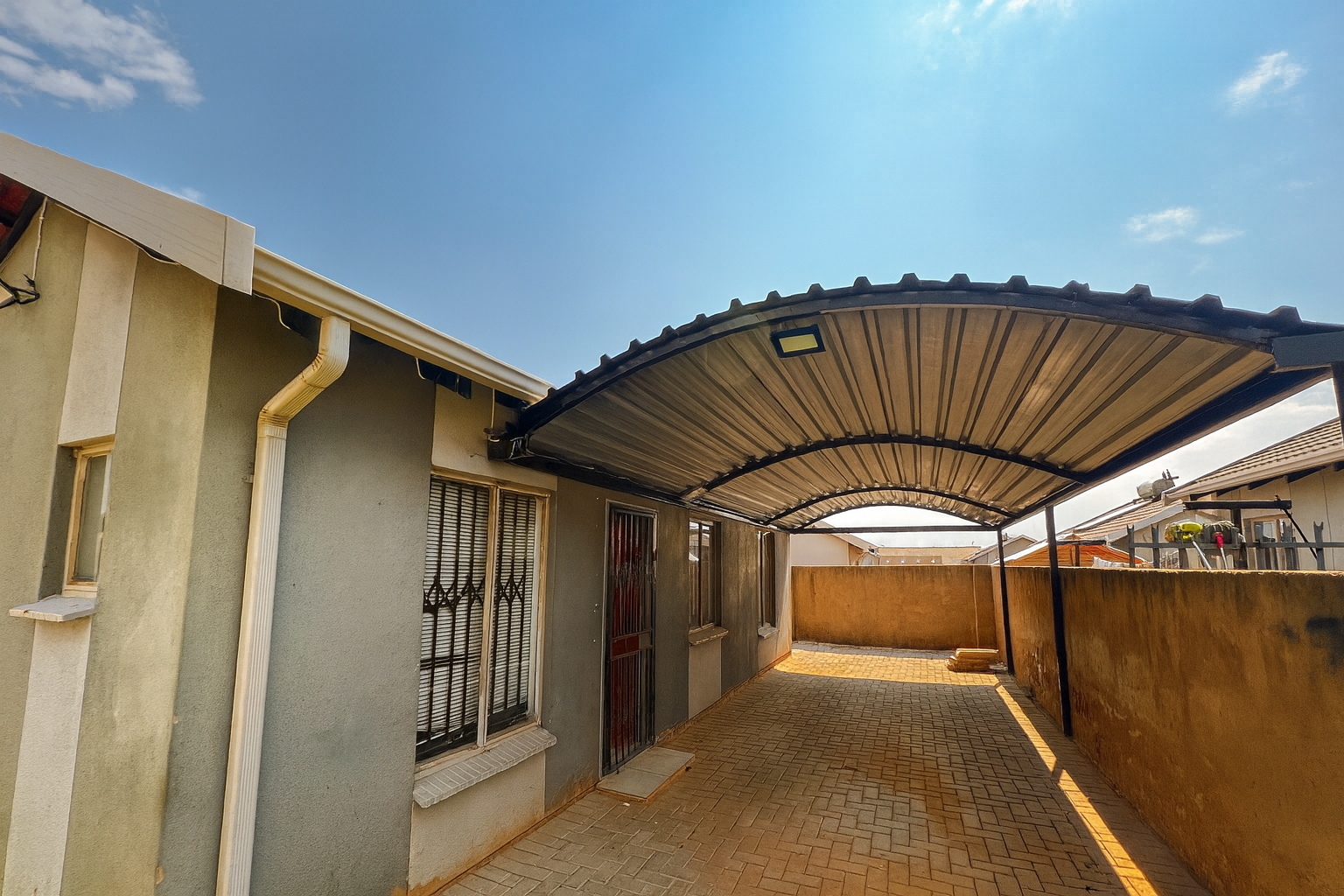 The property includes a neat bathroom, along with a dedicated washing line outside for added convenience. With covered parking, your vehicles are kept safe from the elements, while the paved surroundings provide a low-maintenance lifestyle.