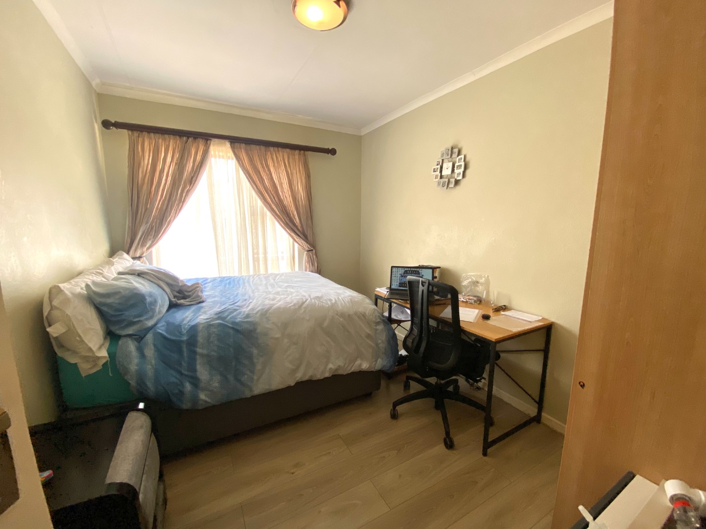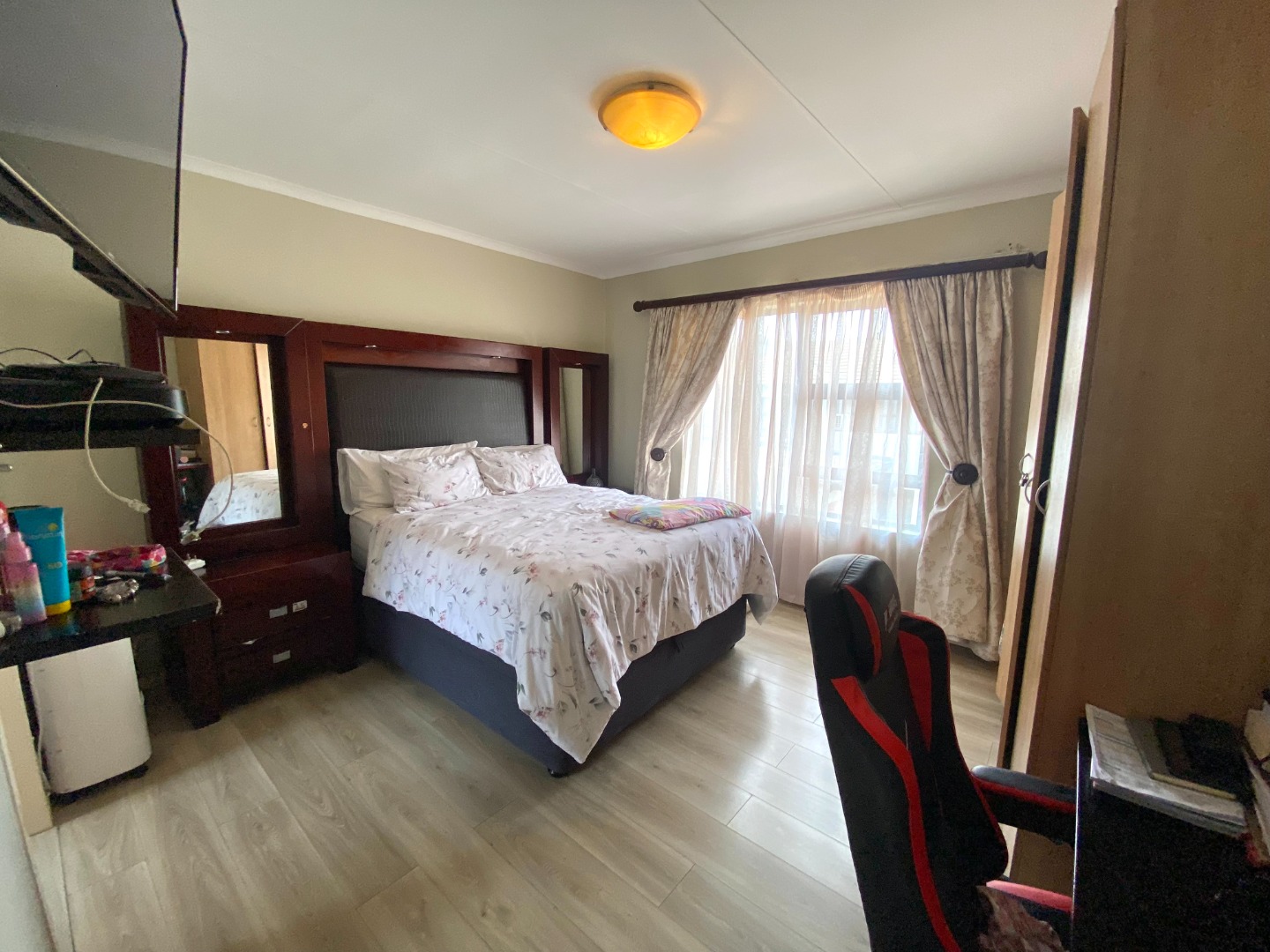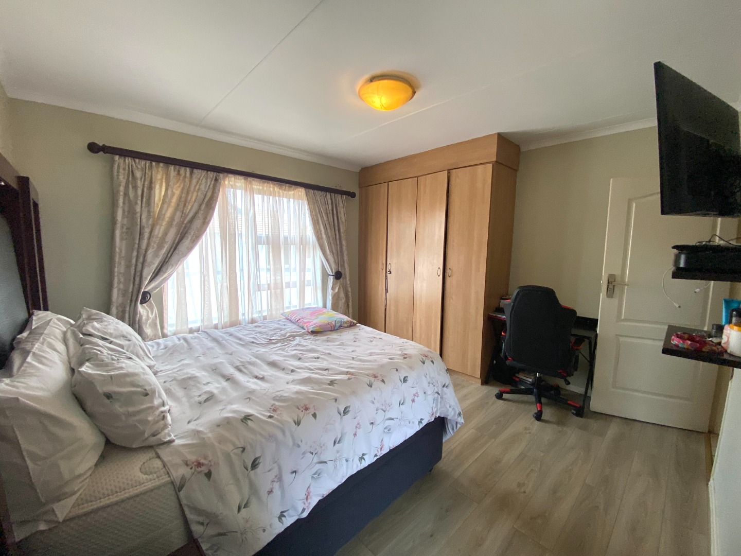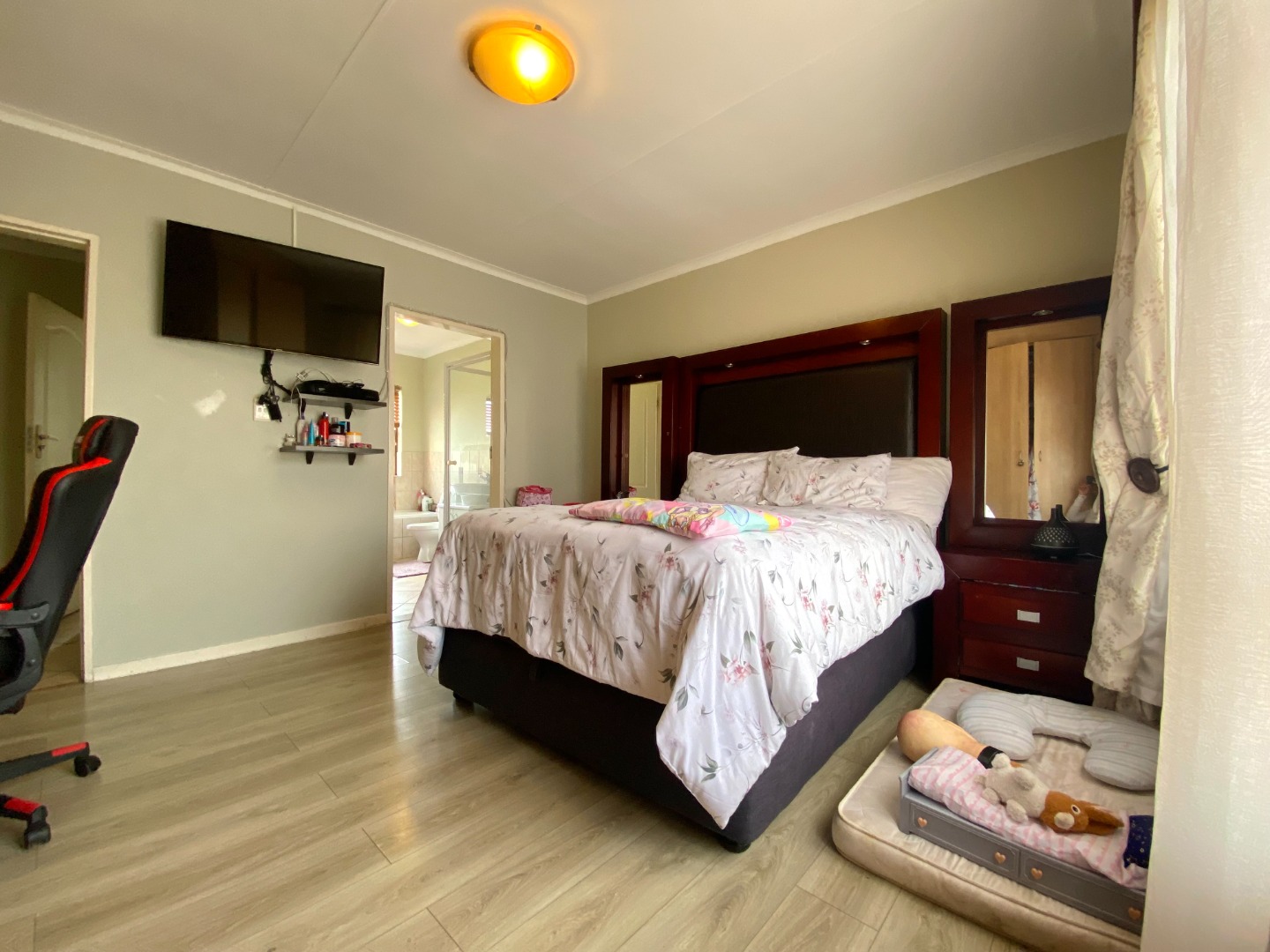 The master bedroom is a true retreat — spacious and well-appointed, with enough room for a king-sized bed and additional furniture. It also includes ample built-in cupboard space and an elegant en-suite bathroom fitted with a shower, basin, and toilet. It's the perfect escape at the end of a long day.