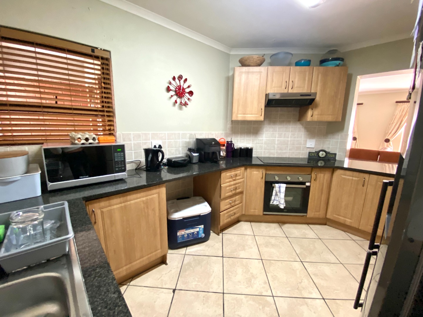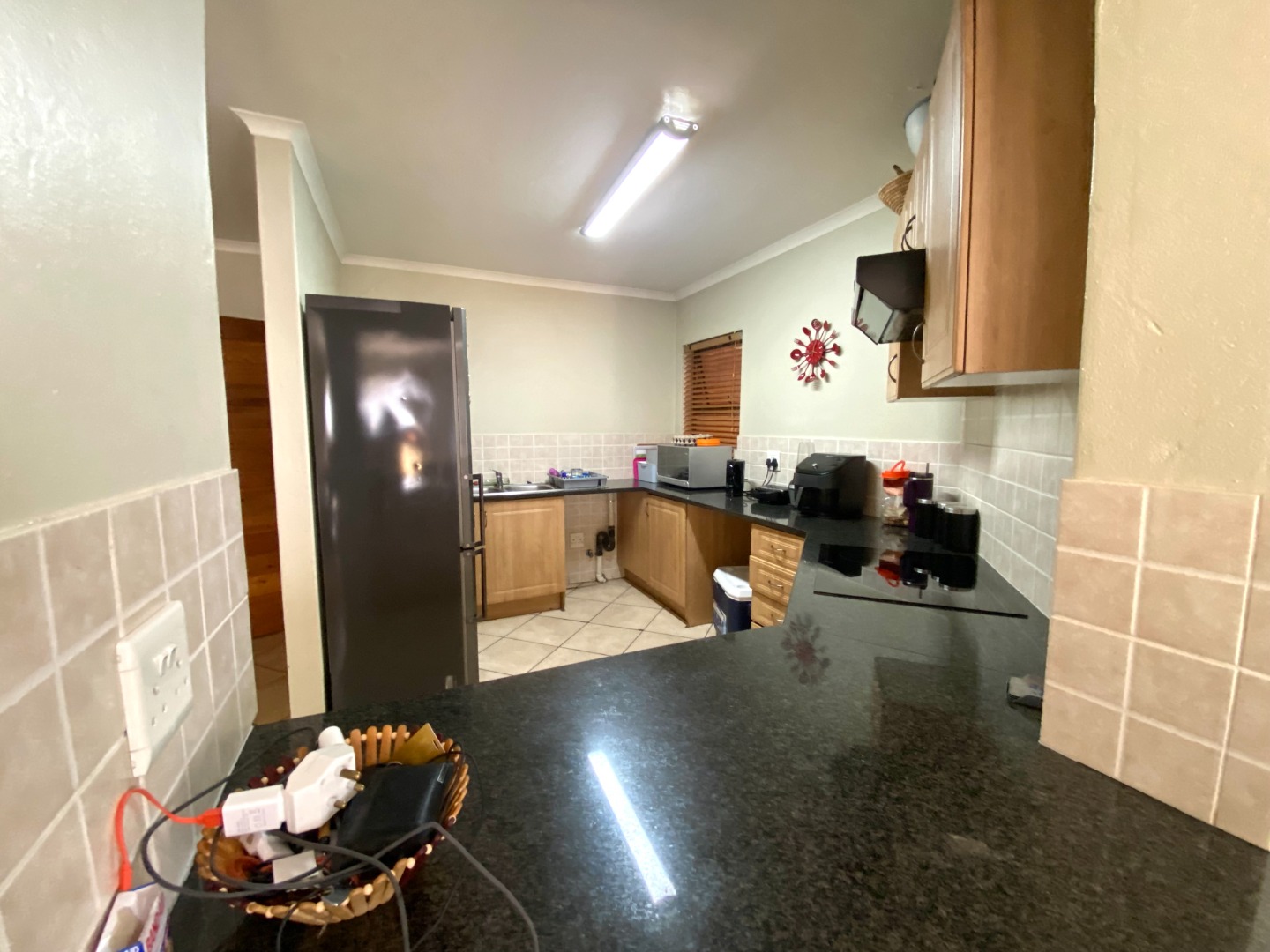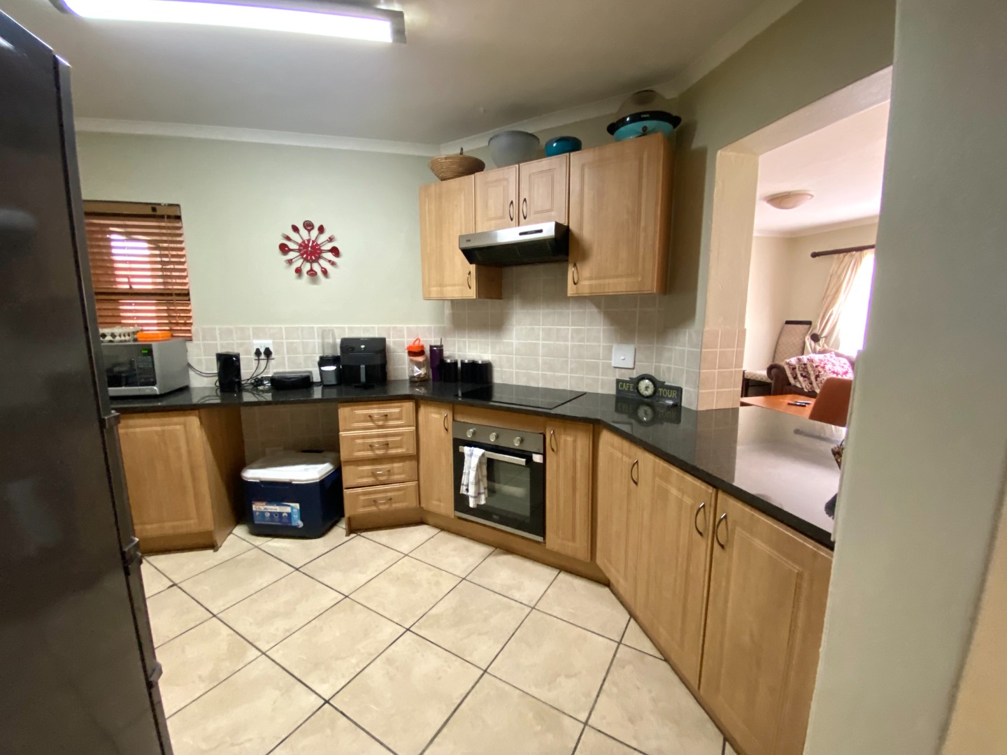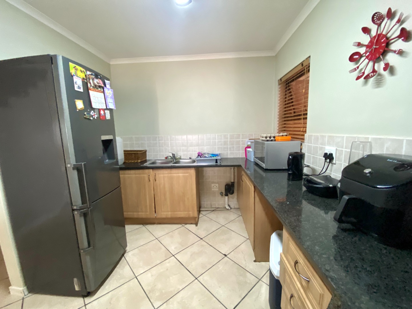 Adjacent to the living area, the kitchen is tastefully finished with granite countertops, ample cupboard space, and room for all your essential appliances. Whether you're cooking for the family or hosting friends, this well-thought-out kitchen design ensures practicality without sacrificing style.