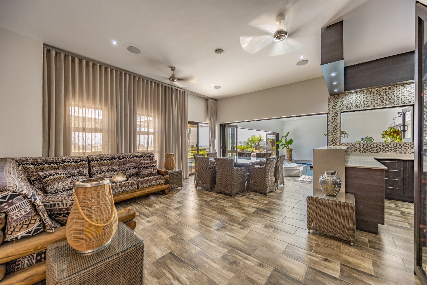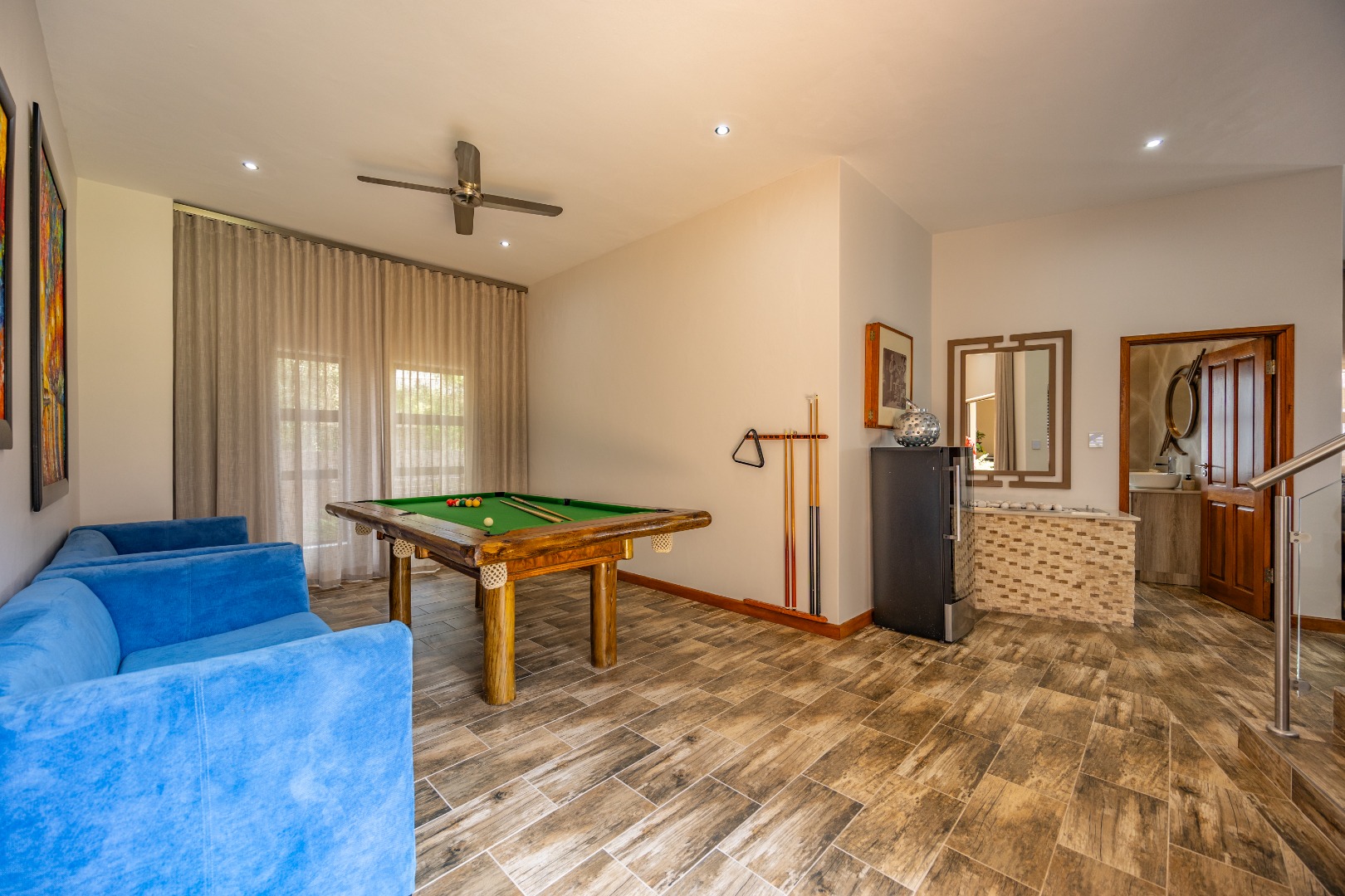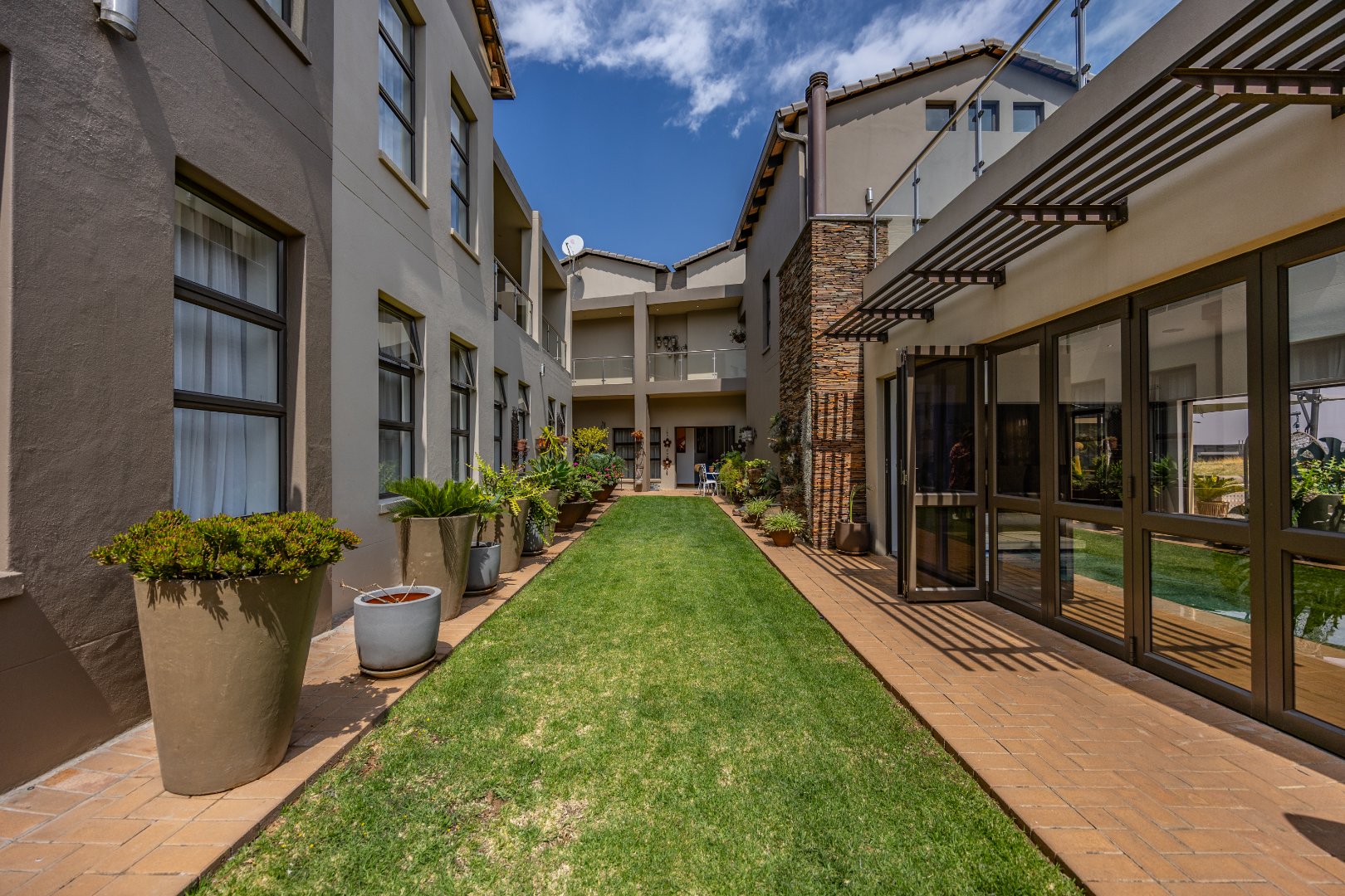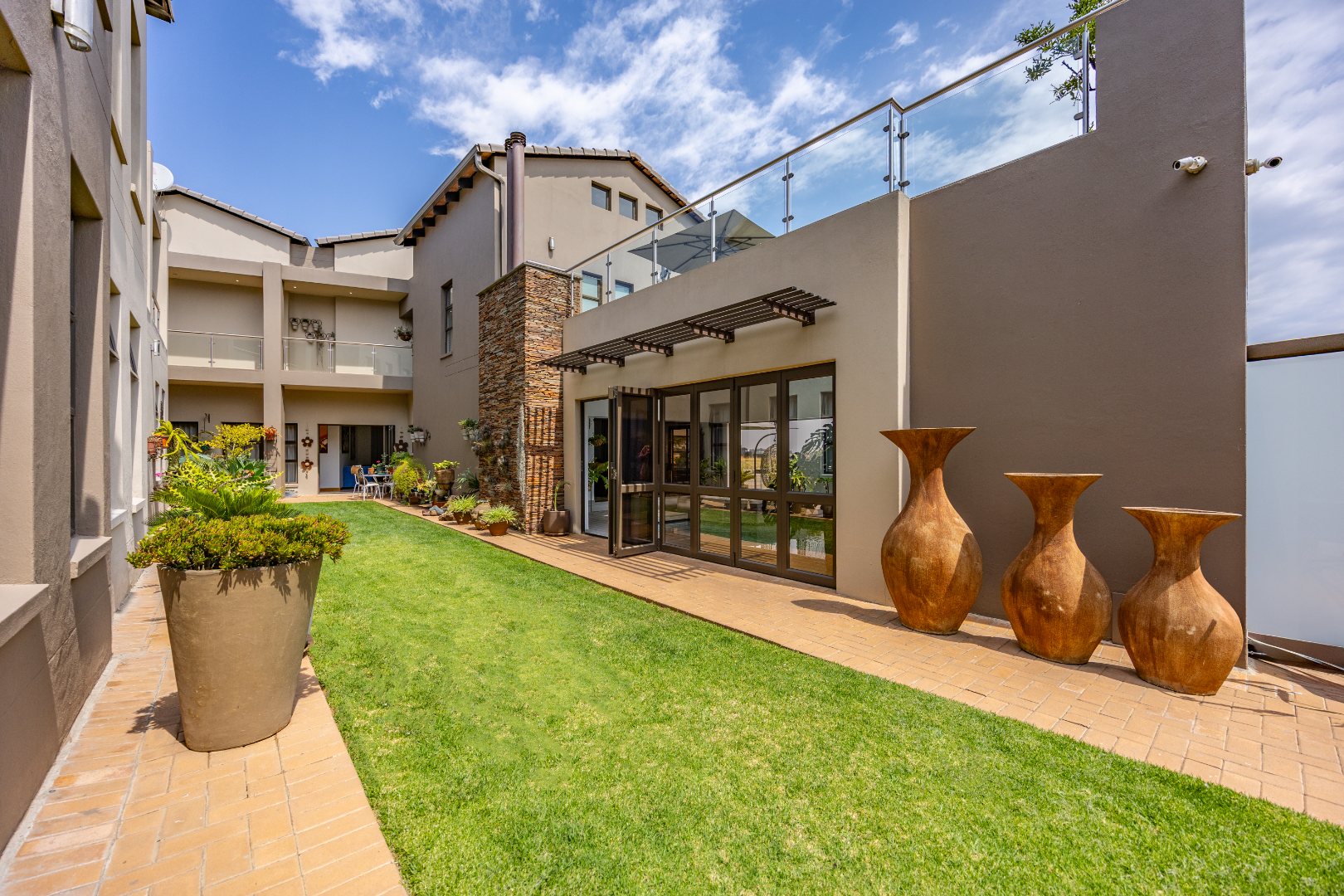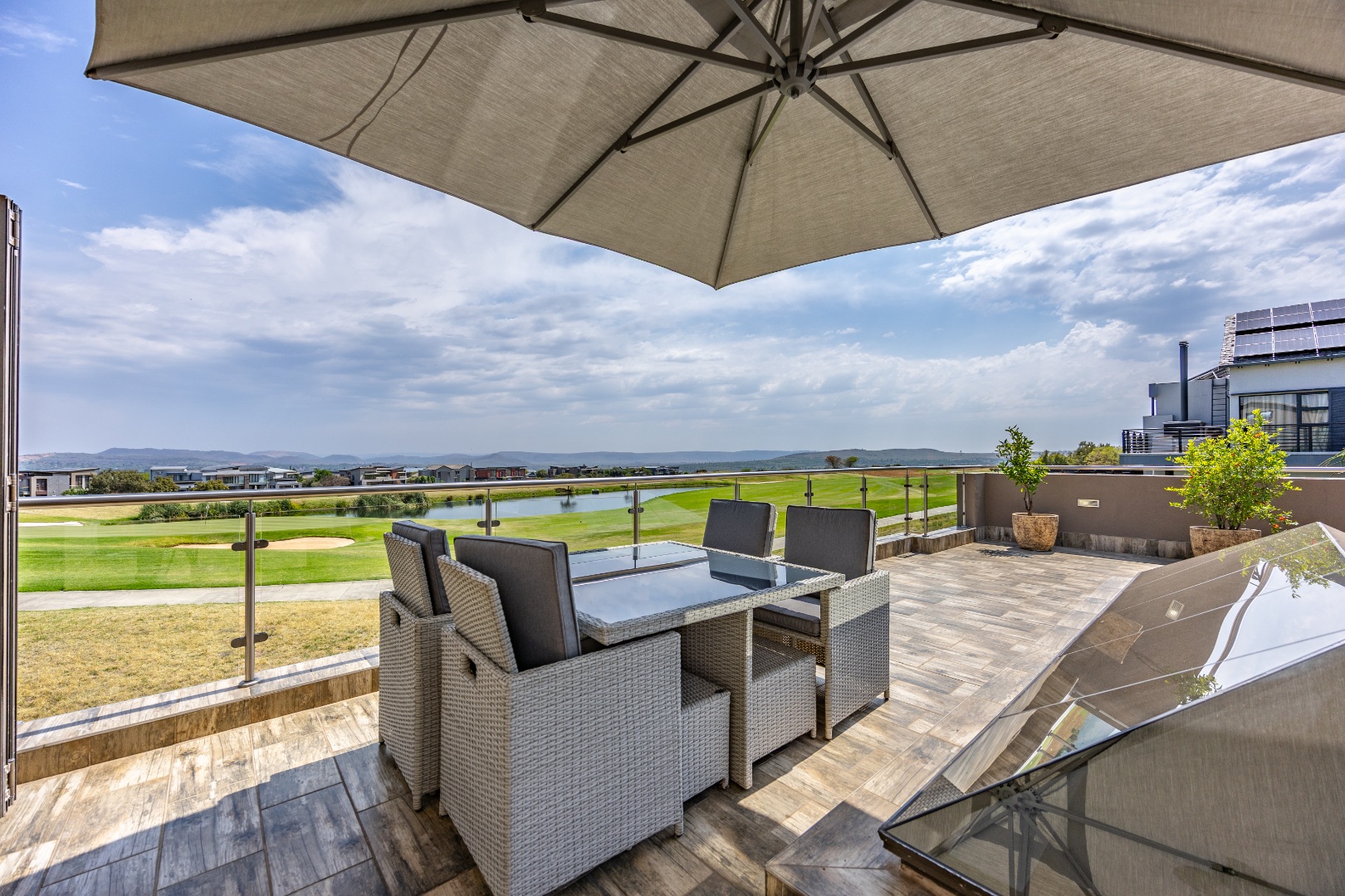 Experience unparalleled elegance in this remarkable 11-bedroom residence situated in the exclusive Copperleaf Golf & Country Estate. Overlooking the 12th and 13th holes of the Ernie Els-designed golf course and framed by the majestic Magaliesberg mountain range, this 1,200m² masterpiece redefines luxury living. Designed for multi-generational families, boutique guest accommodation, or discerning entertainers, the property spans four distinct homes that combine comfort, sophistication, and practicality. The main house boasts four expansive en-suite bedrooms with walk-in closets, including a grand master suite with air-conditioning and a double spa bath. The open-plan kitchen, complete with a scullery, pantry, and gas appliances, flows effortlessly into the lounge and dining areas, enhanced by a built-in gas heater and large stacking doors that frame breathtaking sunset views across the fairways.