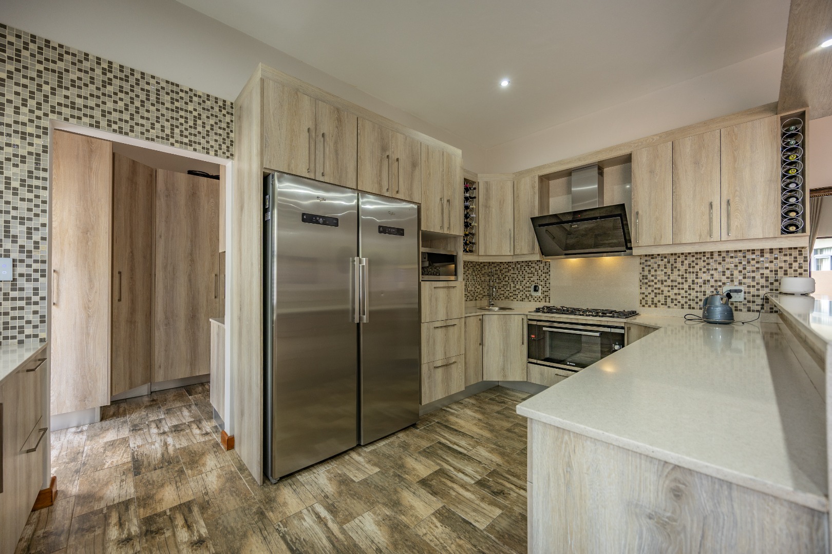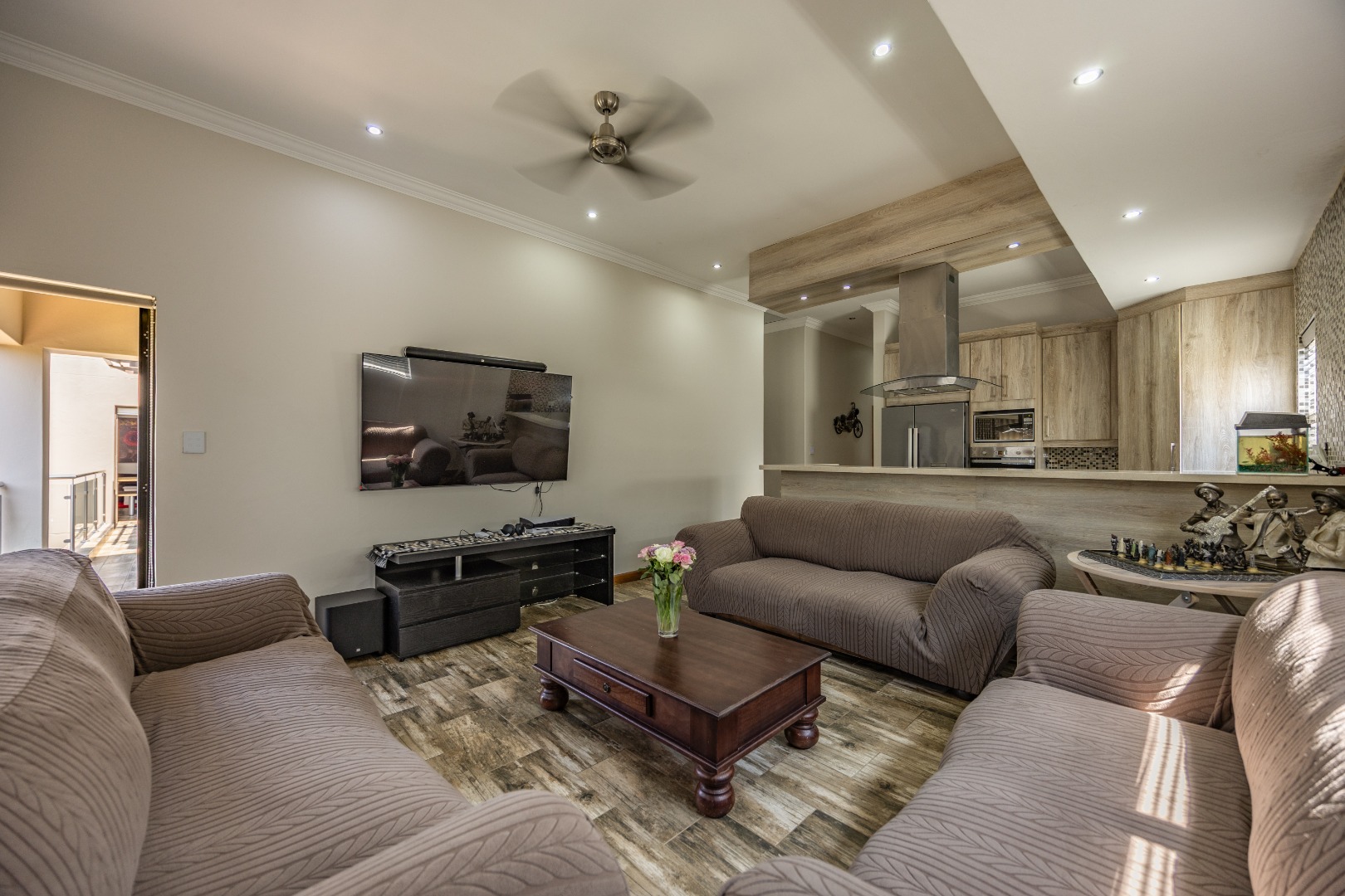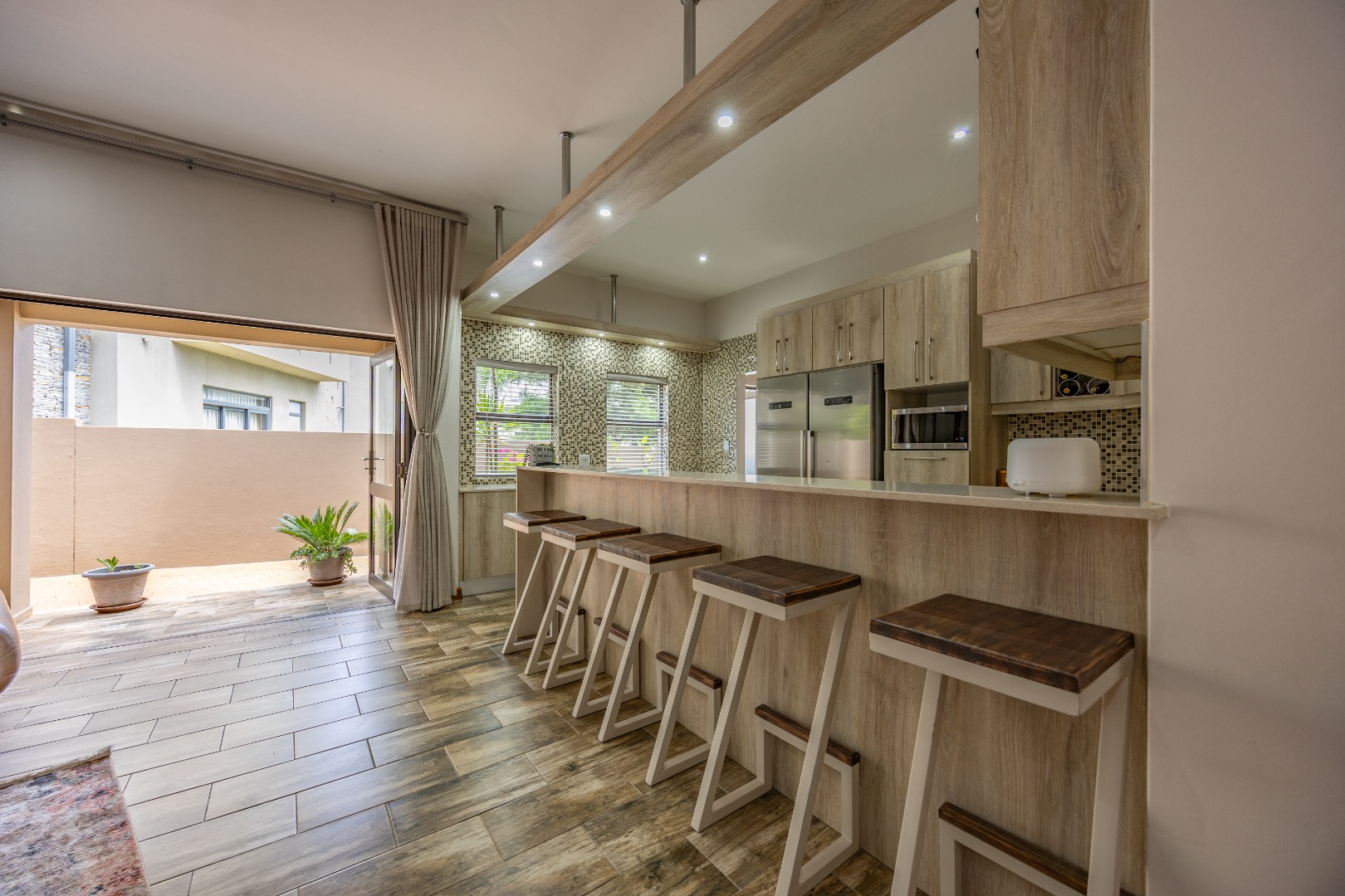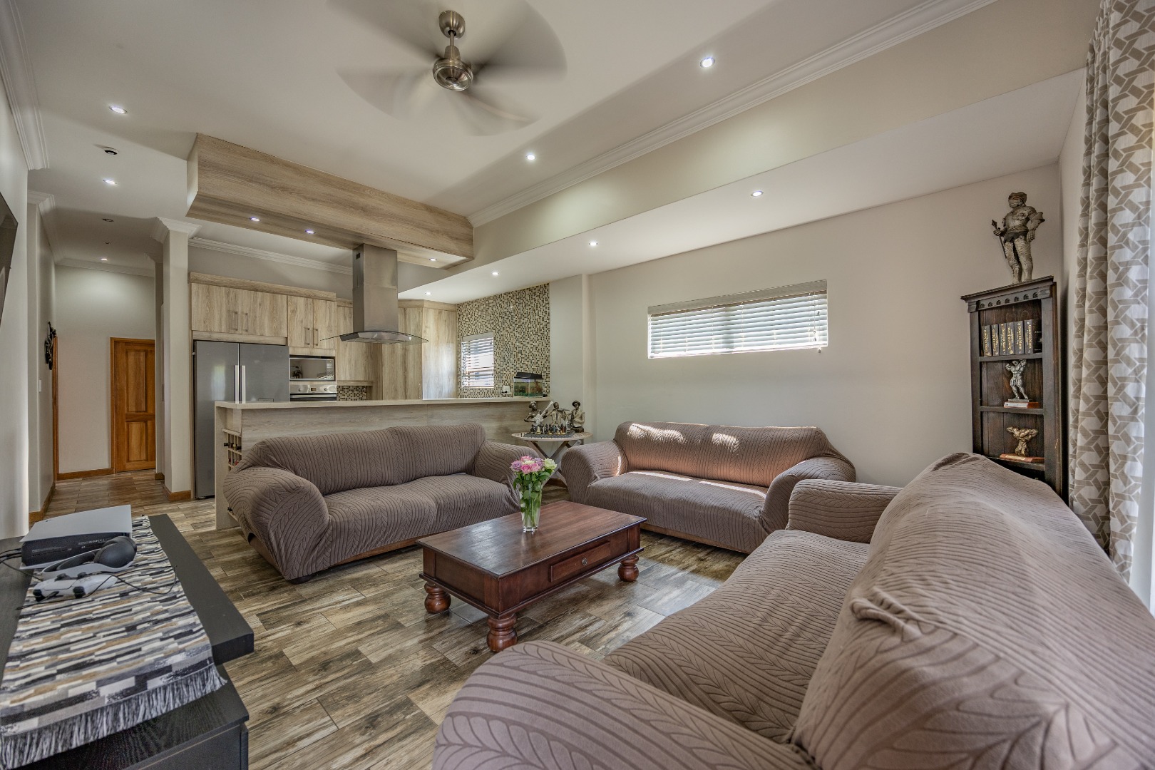Experience unparalleled elegance in this remarkable 11-bedroom residence situated in the exclusive Copperleaf Golf & Country Estate. Overlooking the 12th and 13th holes of the Ernie Els-designed golf course and framed by the majestic Magaliesberg mountain range, this 1,200m² masterpiece redefines luxury living. Designed for multi-generational families, boutique guest accommodation, or discerning entertainers, the property spans four distinct homes that combine comfort, sophistication, and practicality. The main house boasts four expansive en-suite bedrooms with walk-in closets, including a grand master suite with air-conditioning and a double spa bath. The open-plan kitchen, complete with a scullery, pantry, and gas appliances, flows effortlessly into the lounge and dining areas, enhanced by a built-in gas heater and large stacking doors that frame breathtaking sunset views across the fairways.
