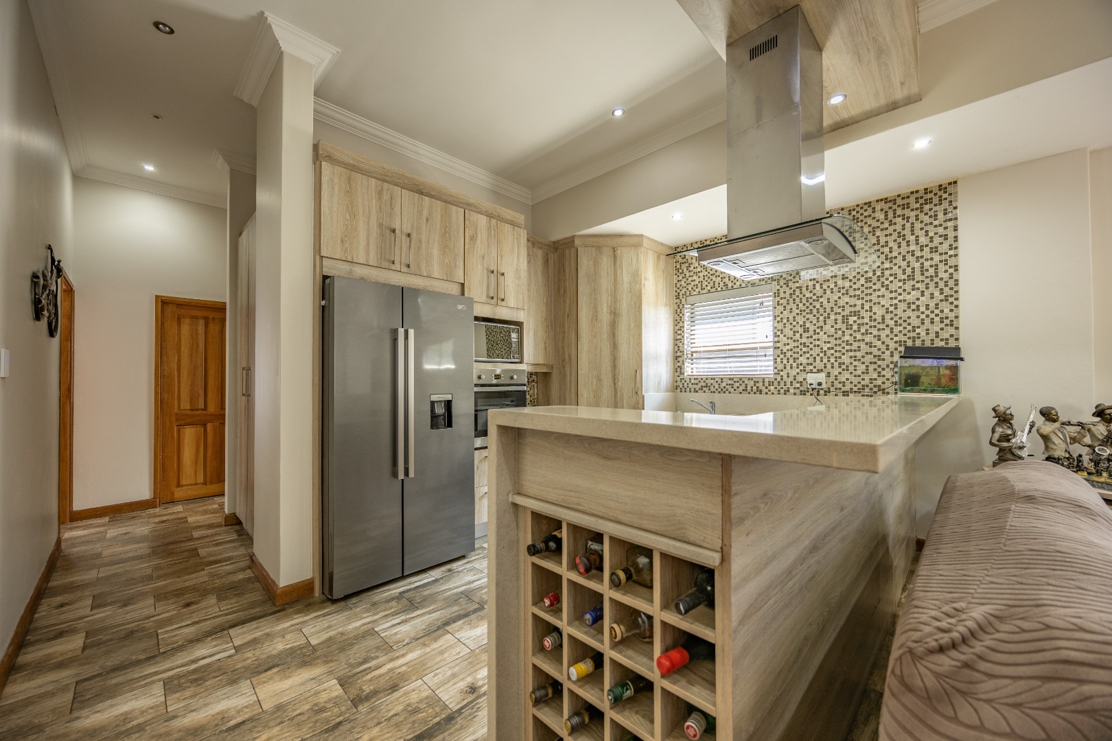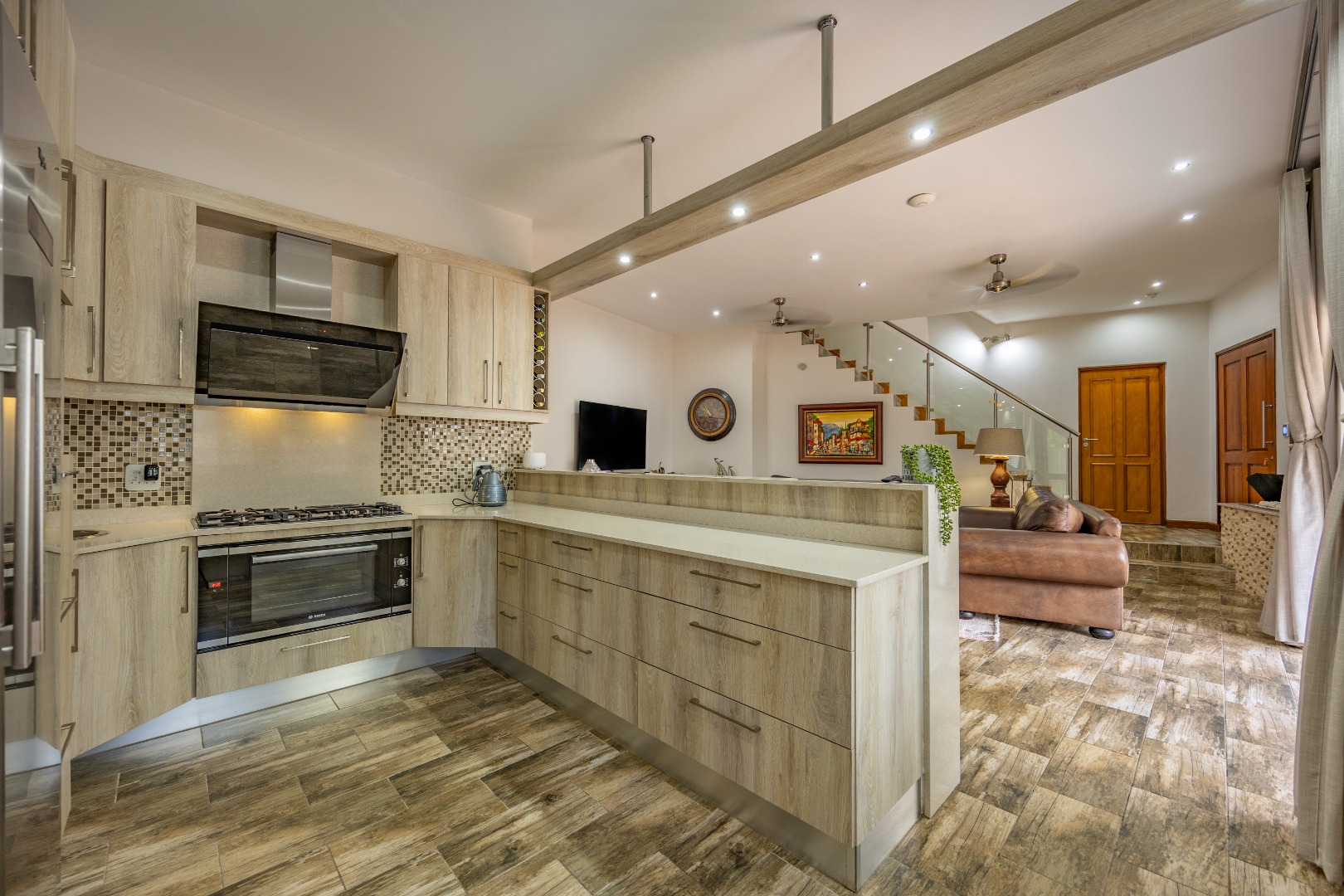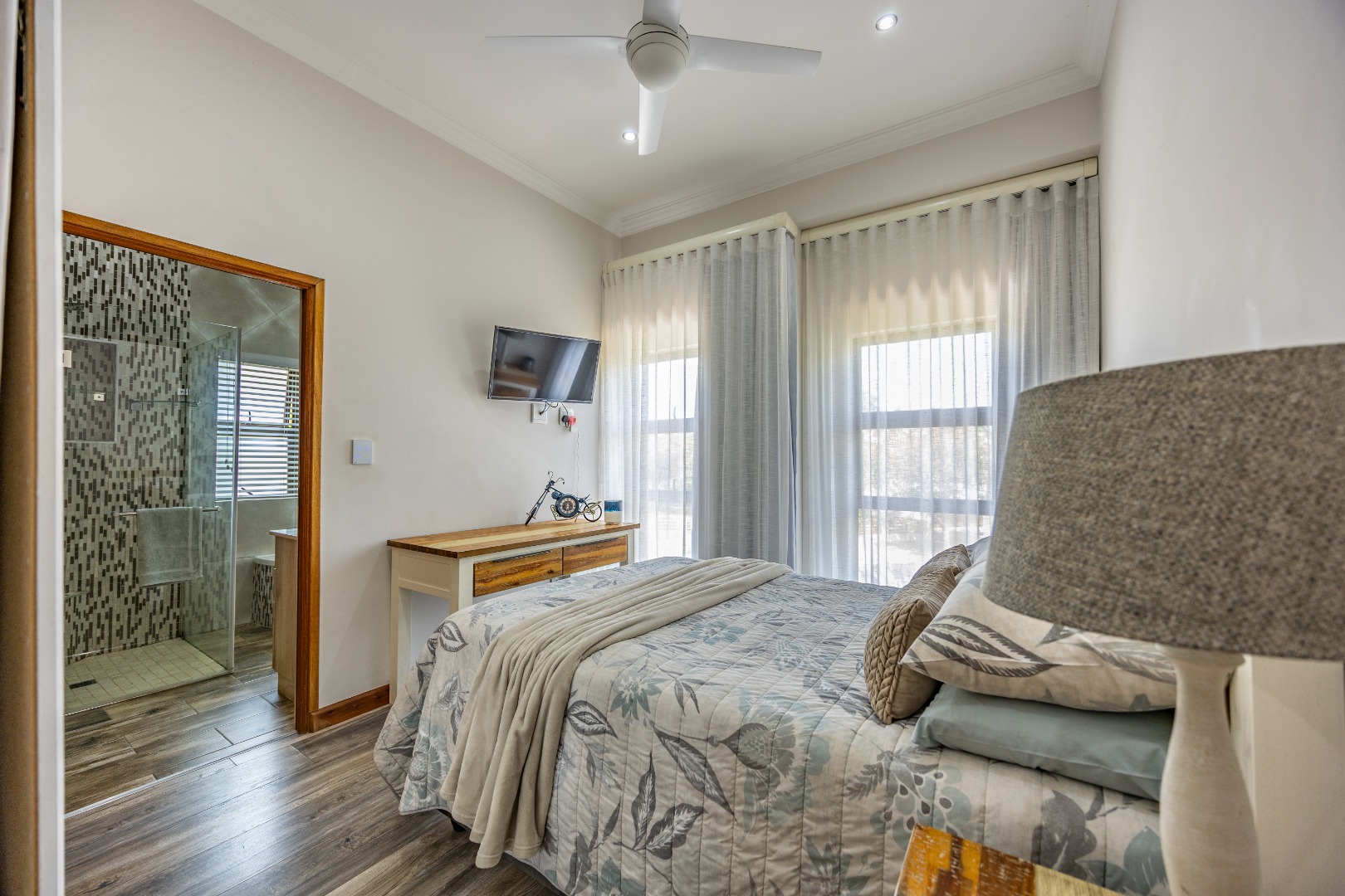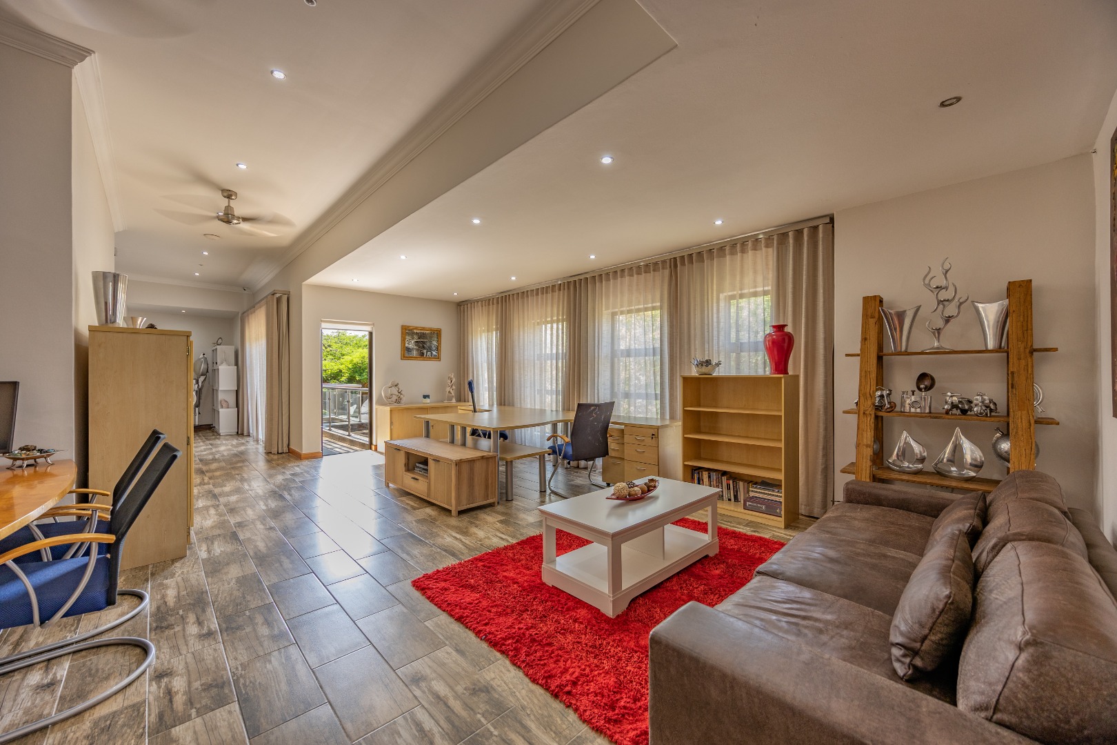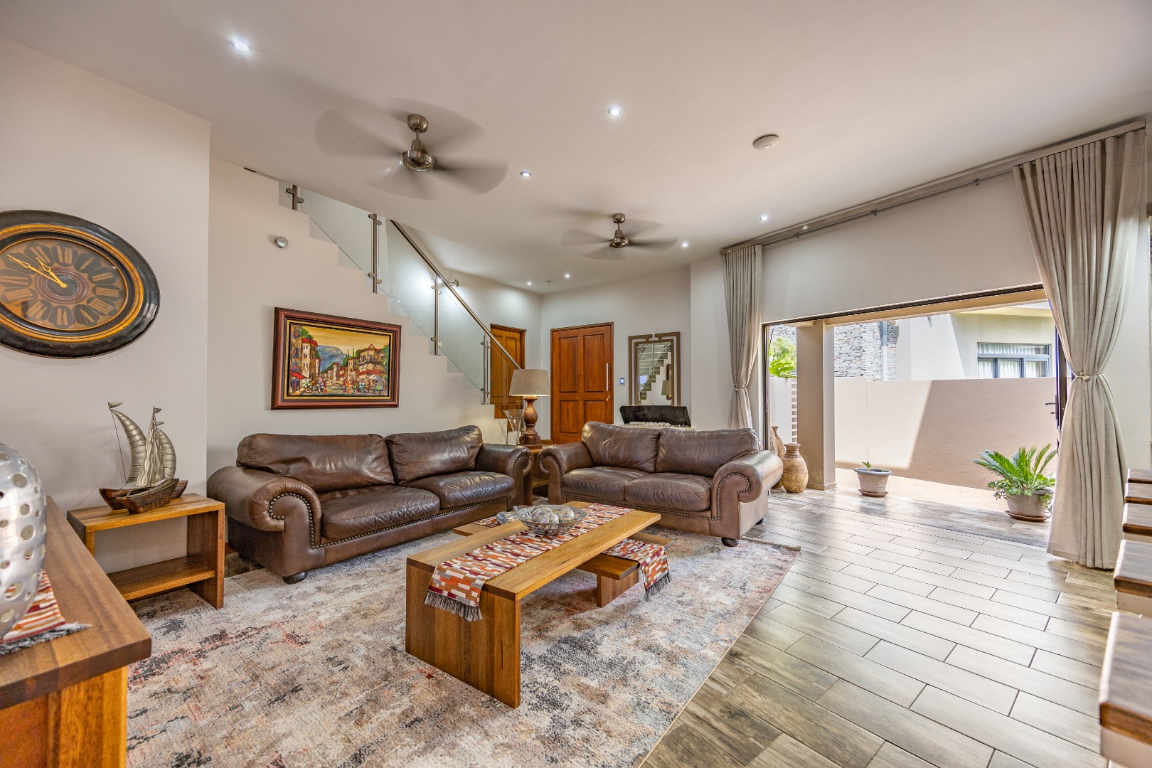Experience unparalleled elegance in this remarkable 11-bedroom residence situated in the exclusive Copperleaf Golf & Country Estate. Overlooking the 12th and 13th holes of the Ernie Els-designed golf course and framed by the majestic Magaliesberg mountain range, this 1,200m² masterpiece redefines luxury living. Designed for multi-generational families, boutique guest accommodation, or discerning entertainers, the property spans four distinct homes that combine comfort, sophistication, and practicality. The main house boasts four expansive en-suite bedrooms with walk-in closets, including a grand master suite with air-conditioning and a double spa bath. The open-plan kitchen, complete with a scullery, pantry, and gas appliances, flows effortlessly into the lounge and dining areas, enhanced by a built-in gas heater and large stacking doors that frame breathtaking sunset views across the fairways.